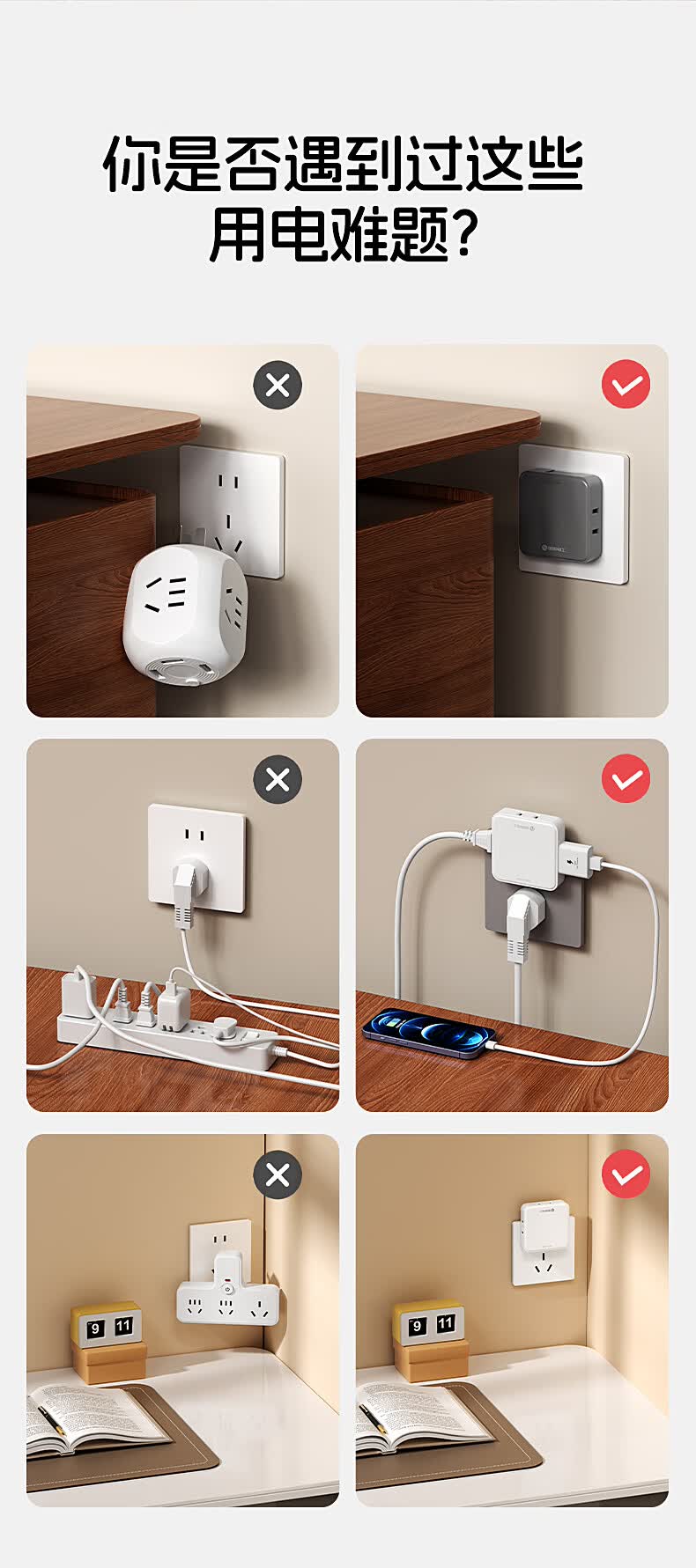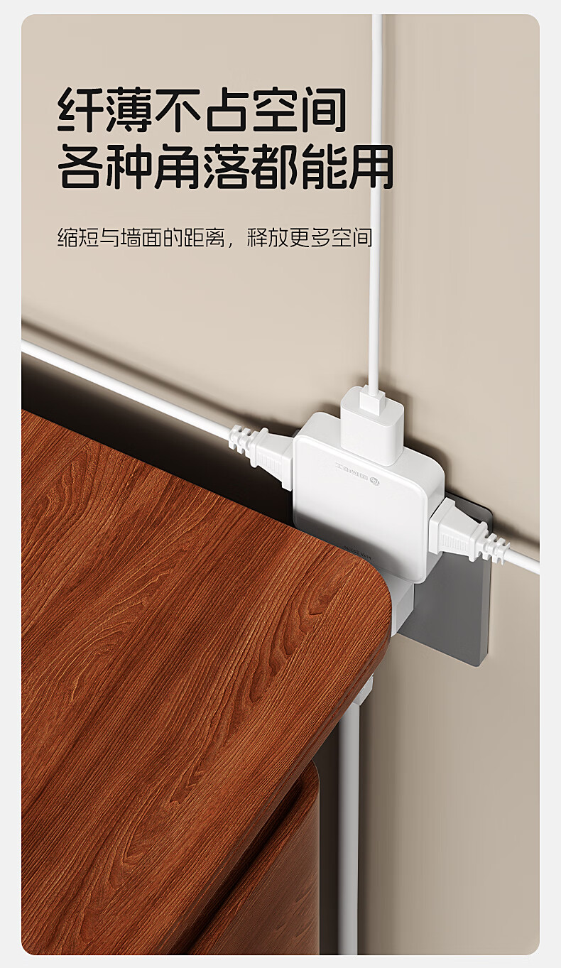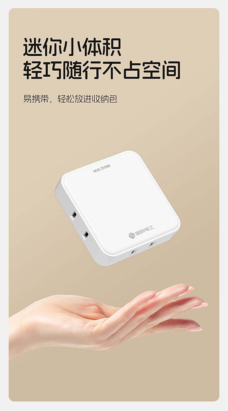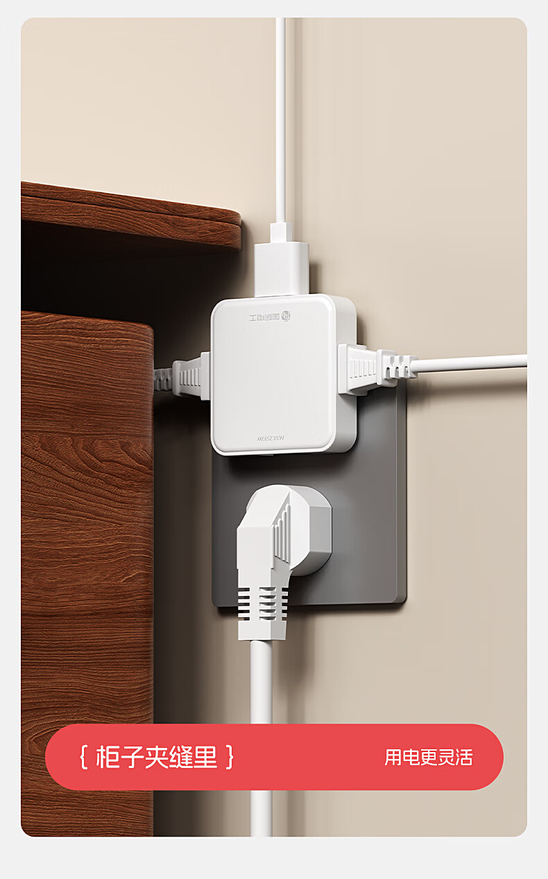 国际电工迷你插座转向头转换器迷你一转三多孔电源插头多功能插线板面板 迷你一转三插座【白色】