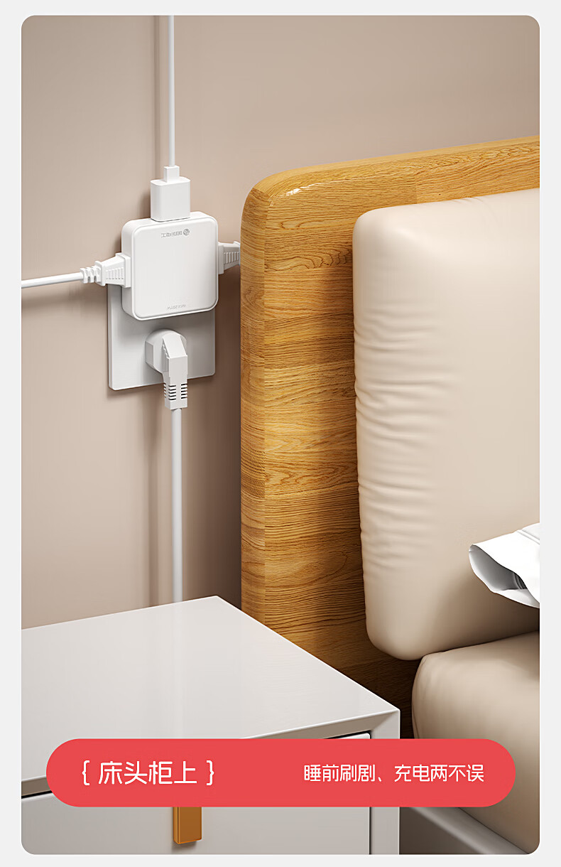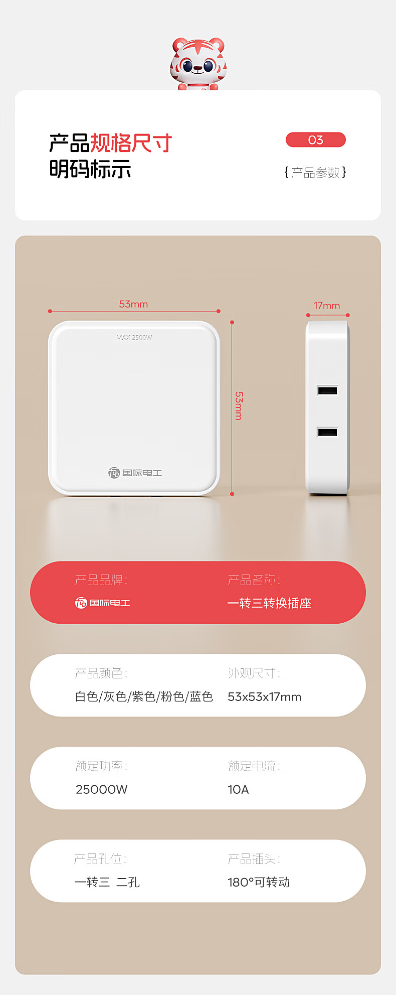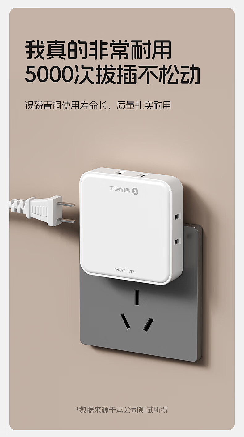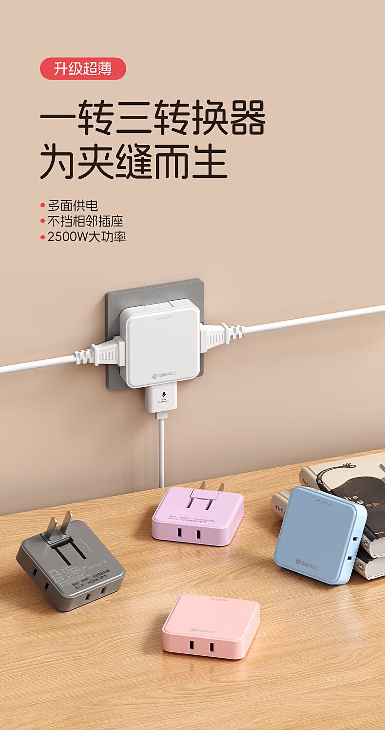国际电工迷你插座转向头转换器迷你一转三多孔电源插头多功能插线板面板 迷你一转三插座【白色】