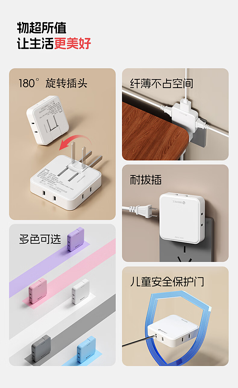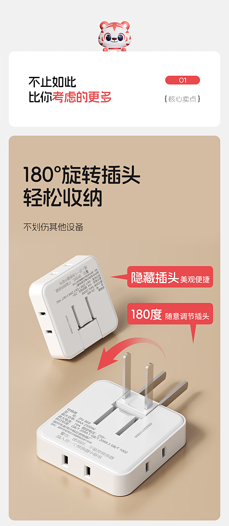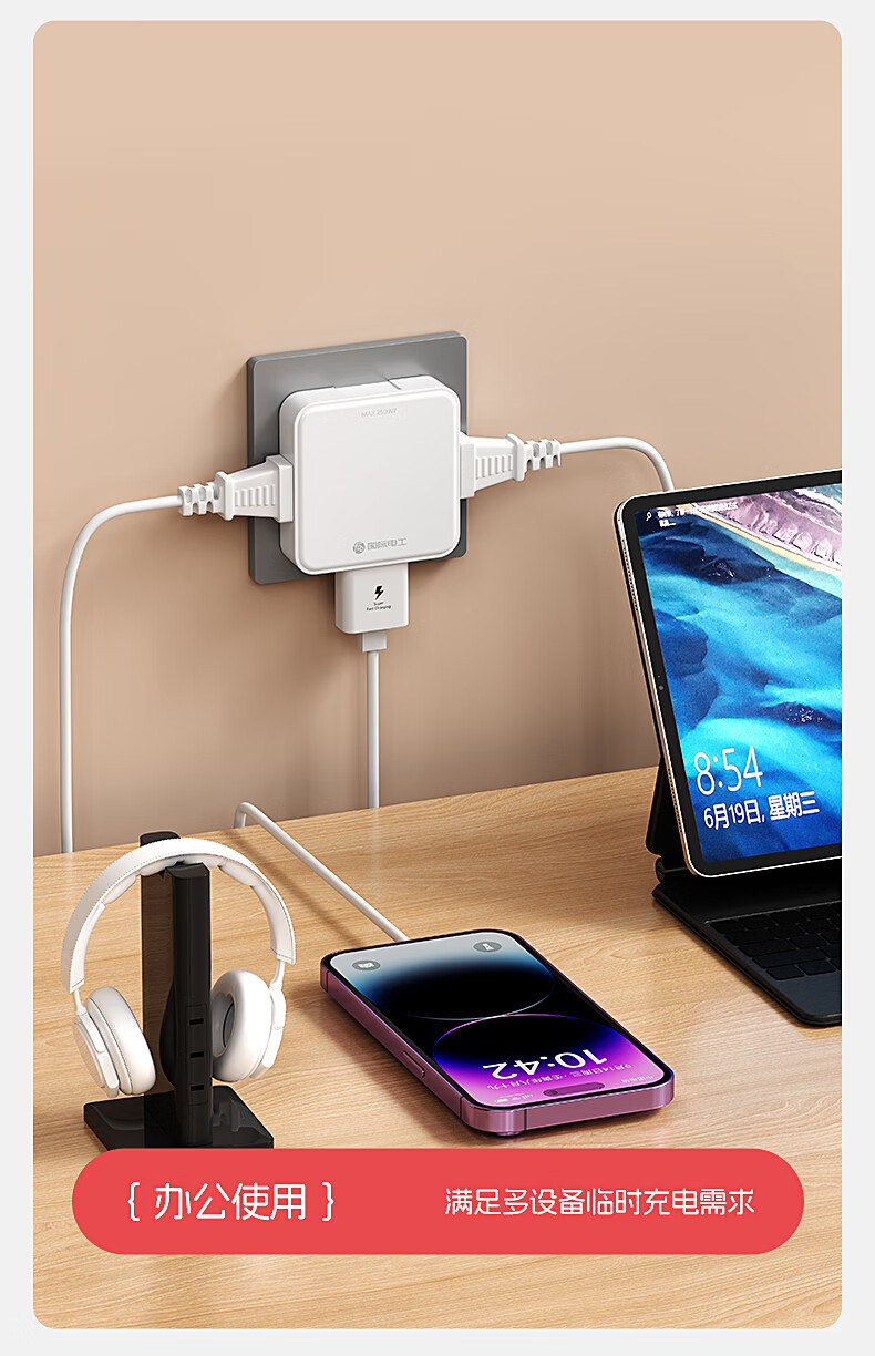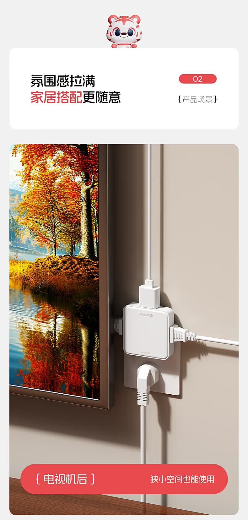 国际电工迷你插座转向头转换器迷你一转三多孔电源插头多功能插线板面板 迷你一转三插座【白色】