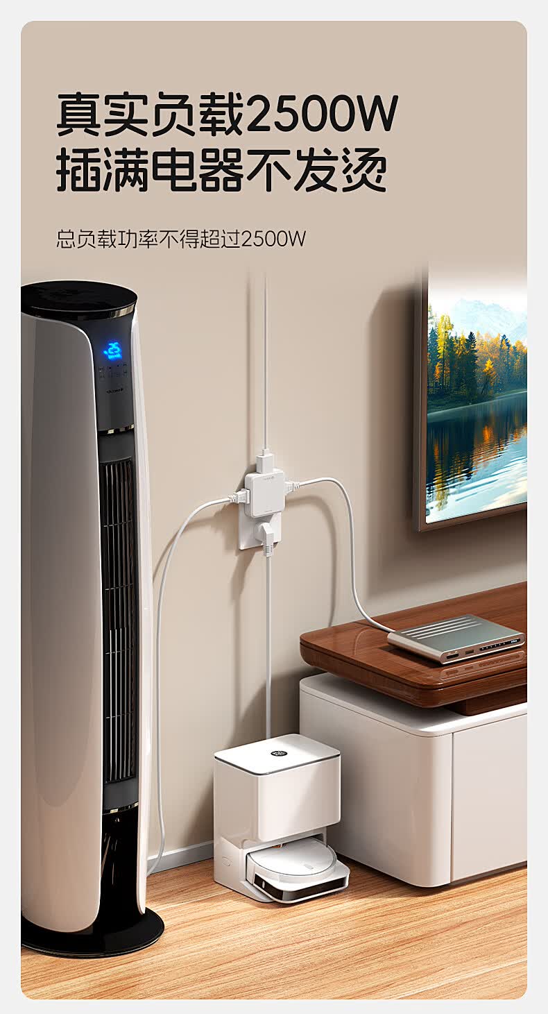 国际电工(FDD)原位扩展插座86型家用厨房分控带开关插排多功能USB快充拓展排插 白色带USB-三开21孔-向左扩展(2.1A)