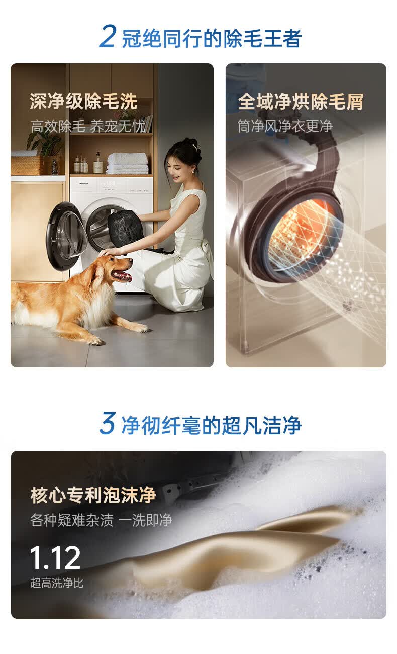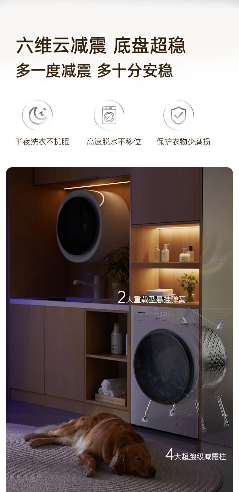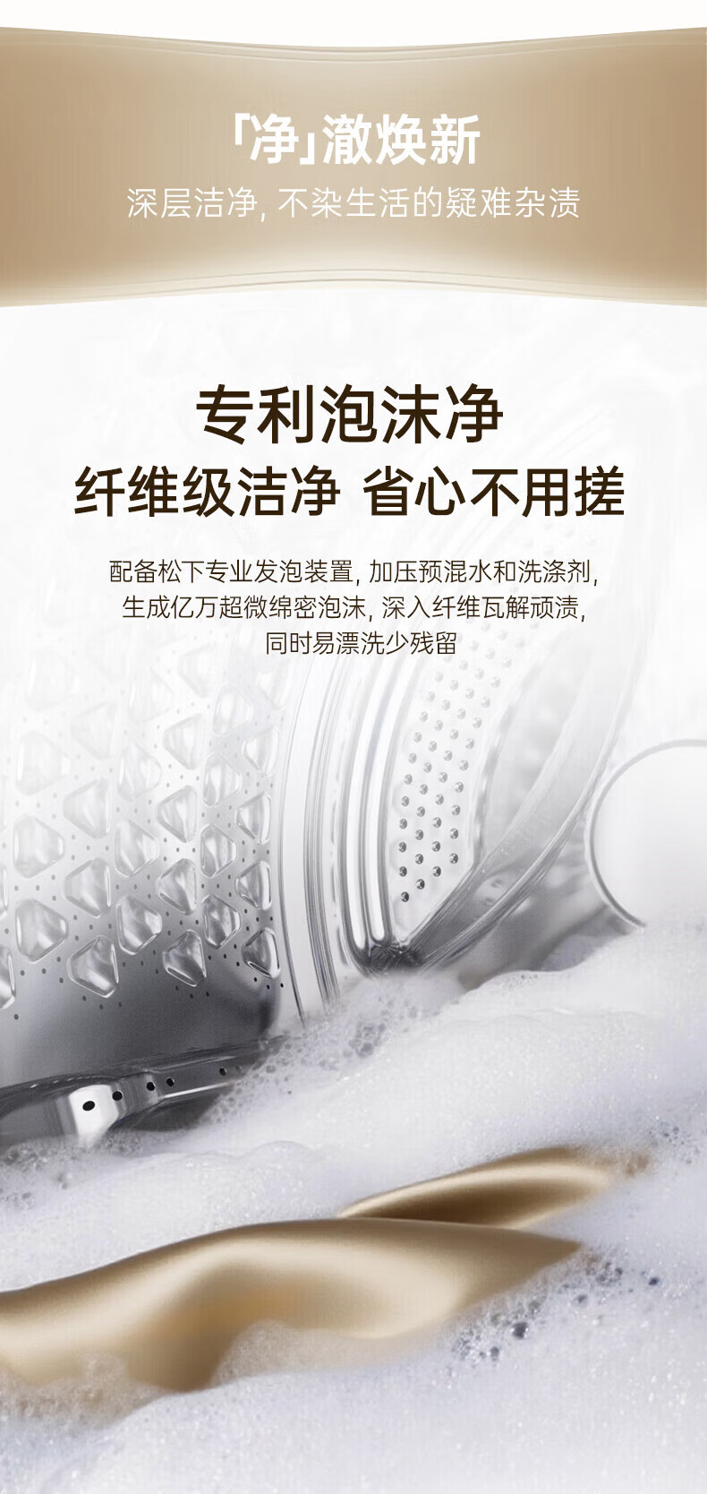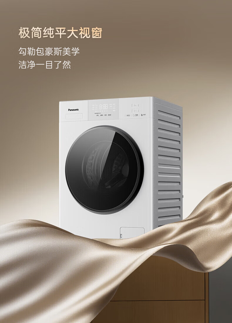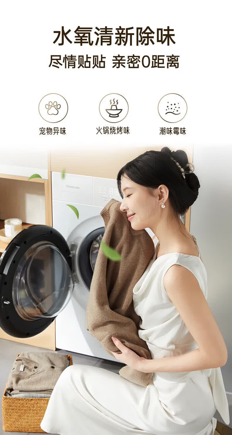 松下(Panasonic)白月光 5.0SE滚筒洗衣机10公斤大容量洗烘一体全自动超薄一级能效变频节能空气洗泡沫净高温除菌 XQG100-CD3AB 滚筒洗烘