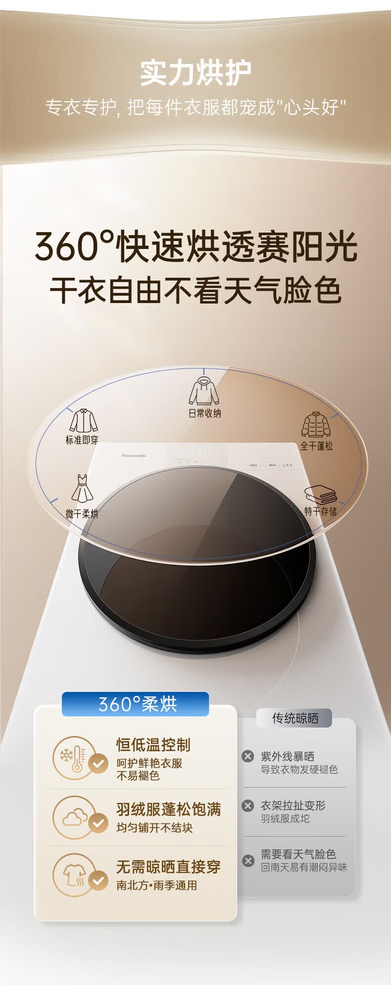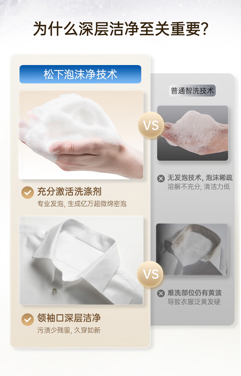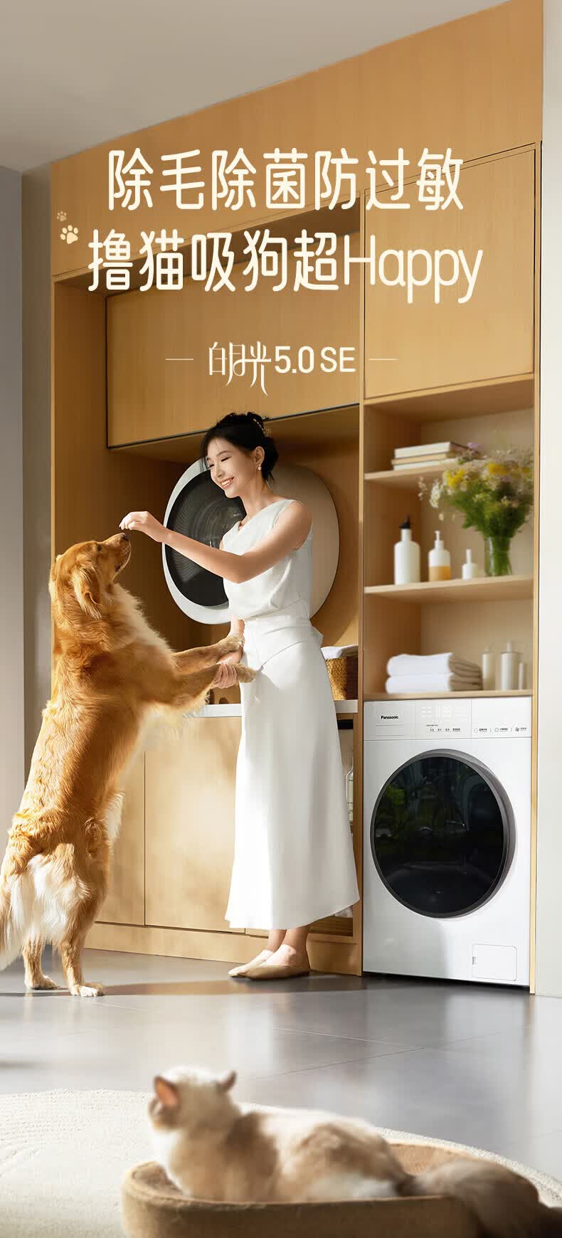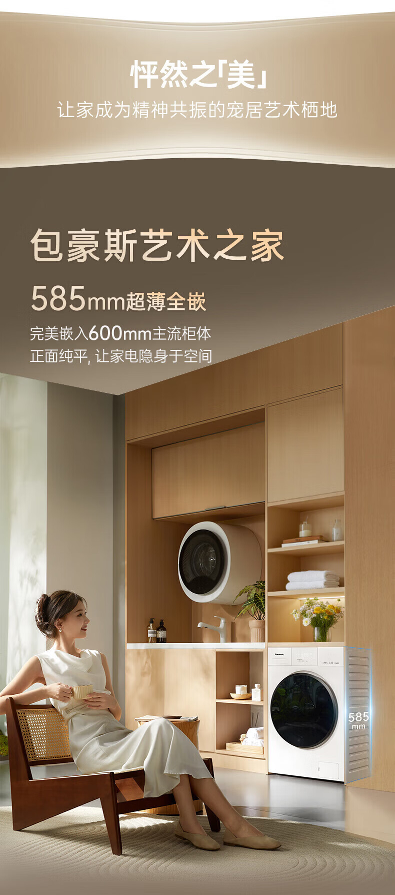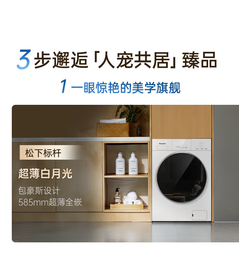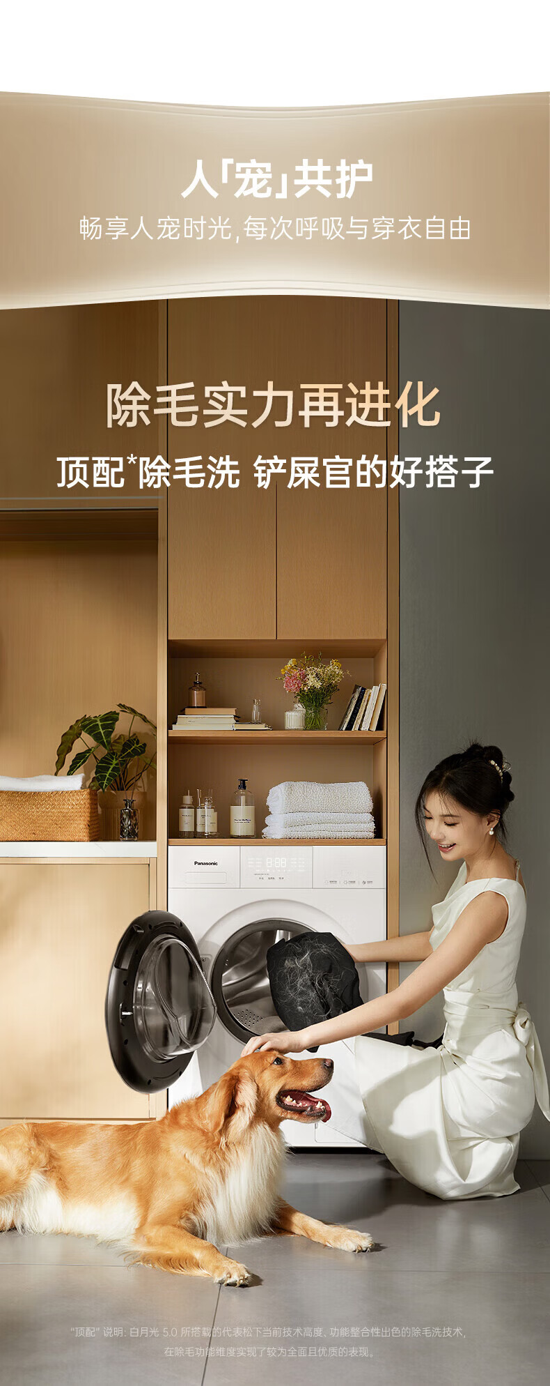 松下(Panasonic)白月光 5.0SE滚筒洗衣机10公斤大容量洗烘一体全自动超薄一级能效变频节能空气洗泡沫净高温除菌 XQG100-CD3AB 滚筒洗烘