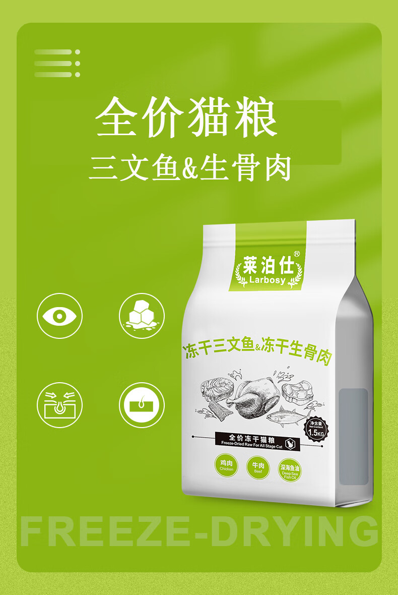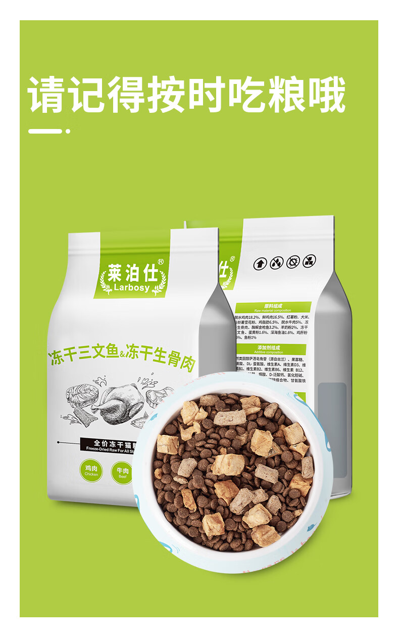 莱泊仕猫粮冻干双拼布偶蓝猫英短美毛成猫幼猫发腮鸡肉通用型3斤 尝鲜(1.5kg/袋)