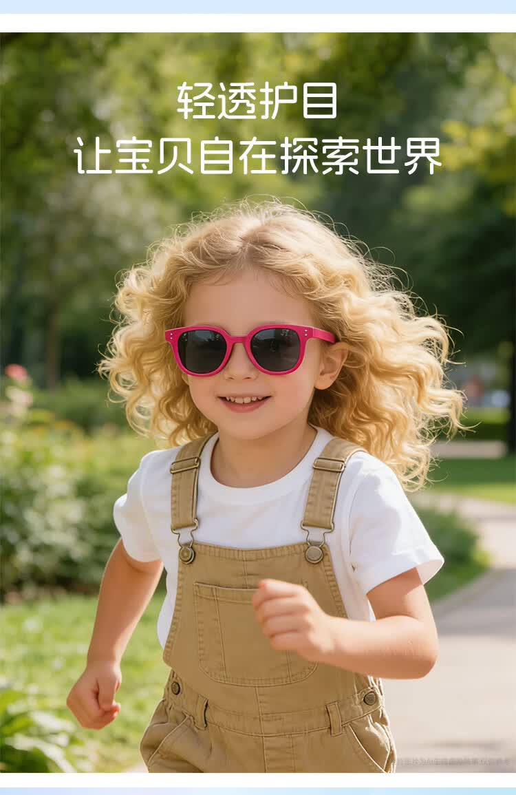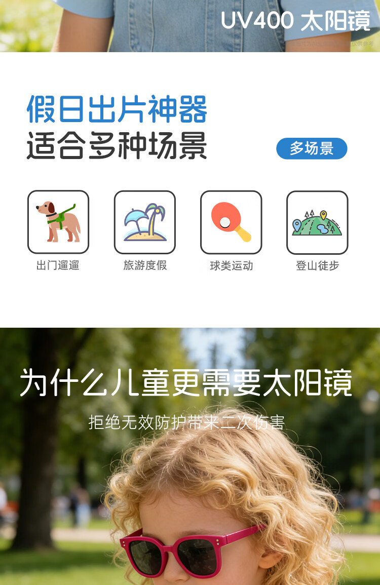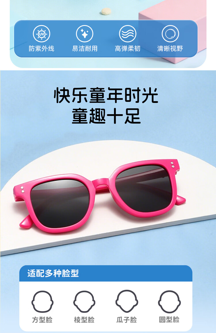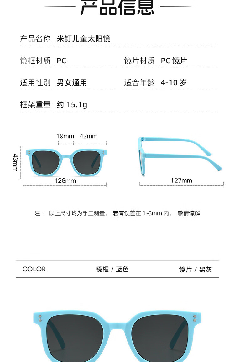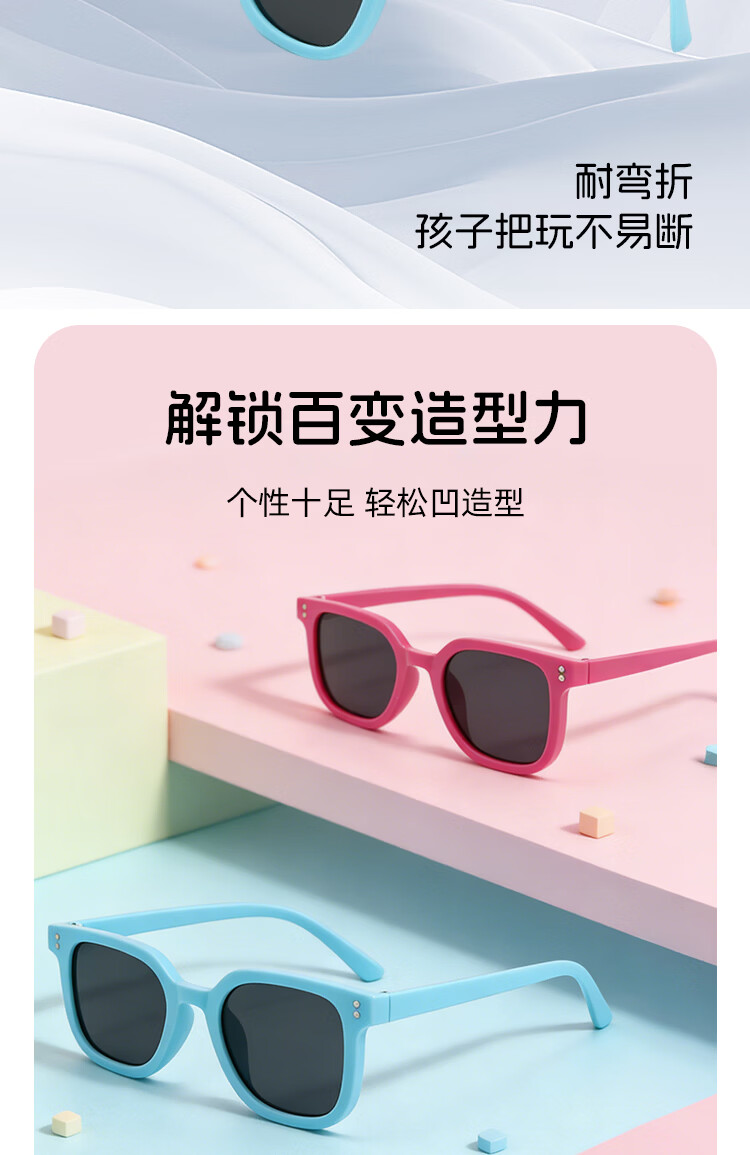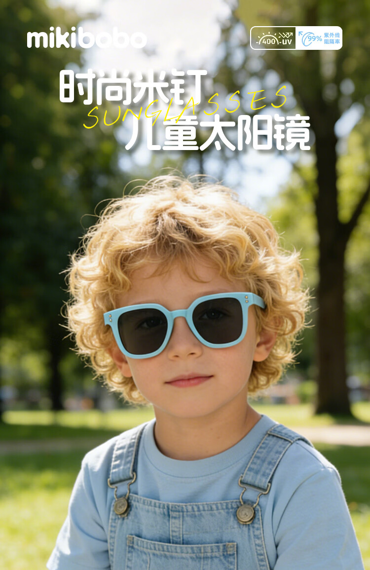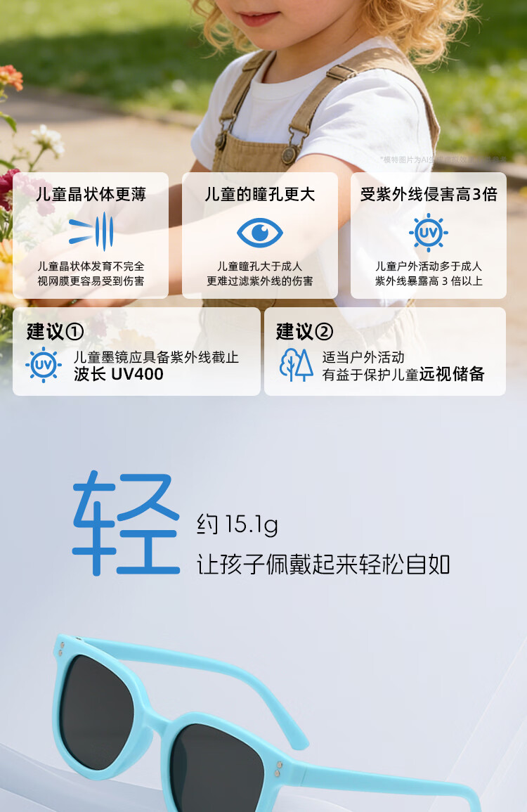 MIKIBOBO米钉儿童太阳镜 防晒UV400超轻百变造型 时尚宝宝适合4-10岁 墨镜 C40037黑框黑灰