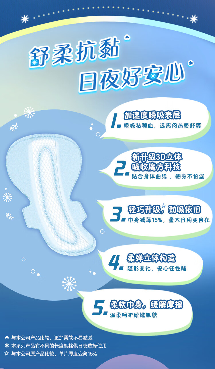 乐而雅卫生巾超瞬吸纤巧日夜护翼型 超瞬吸全周期日夜组合【5包 61片】