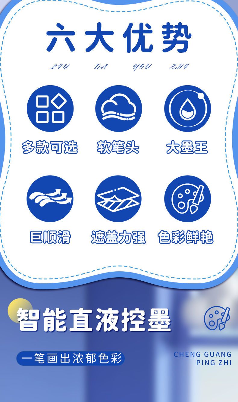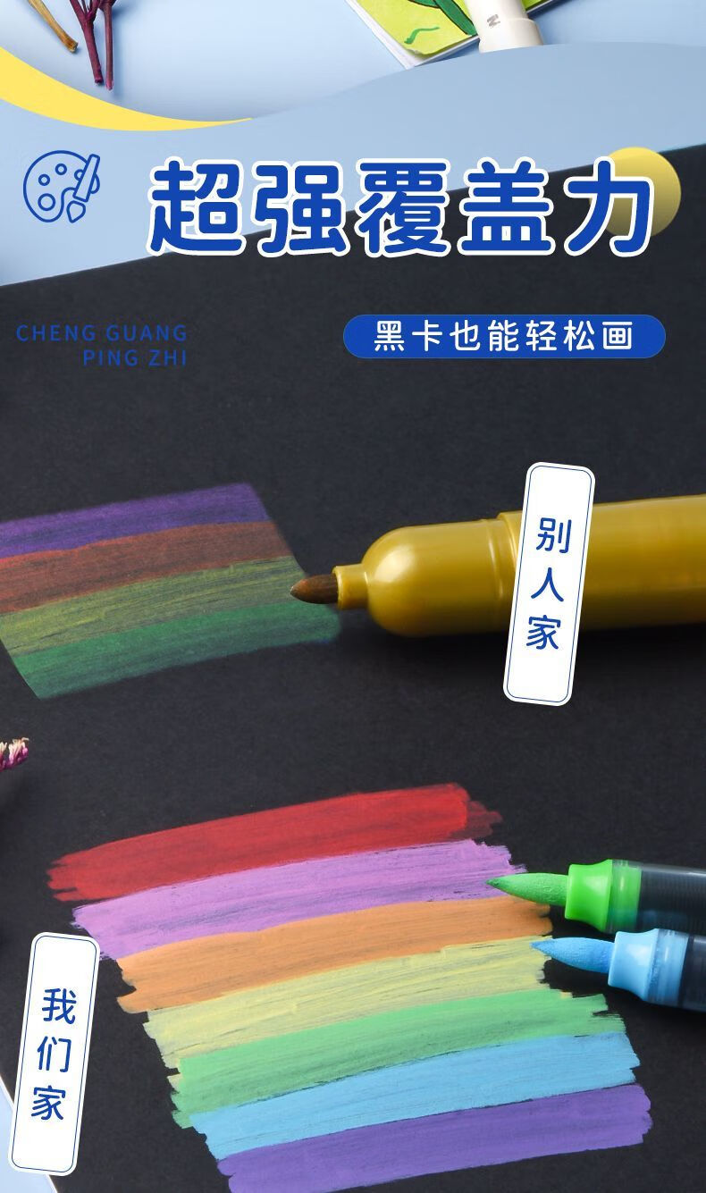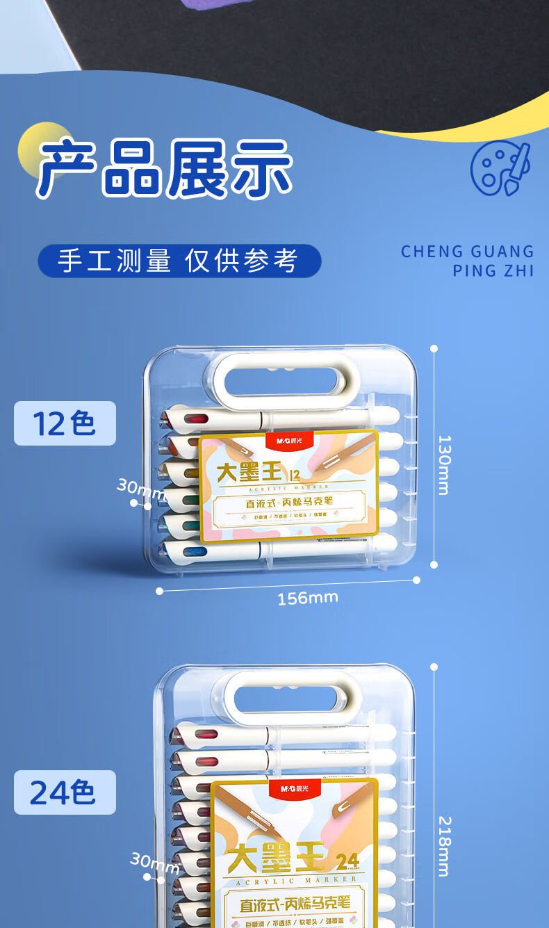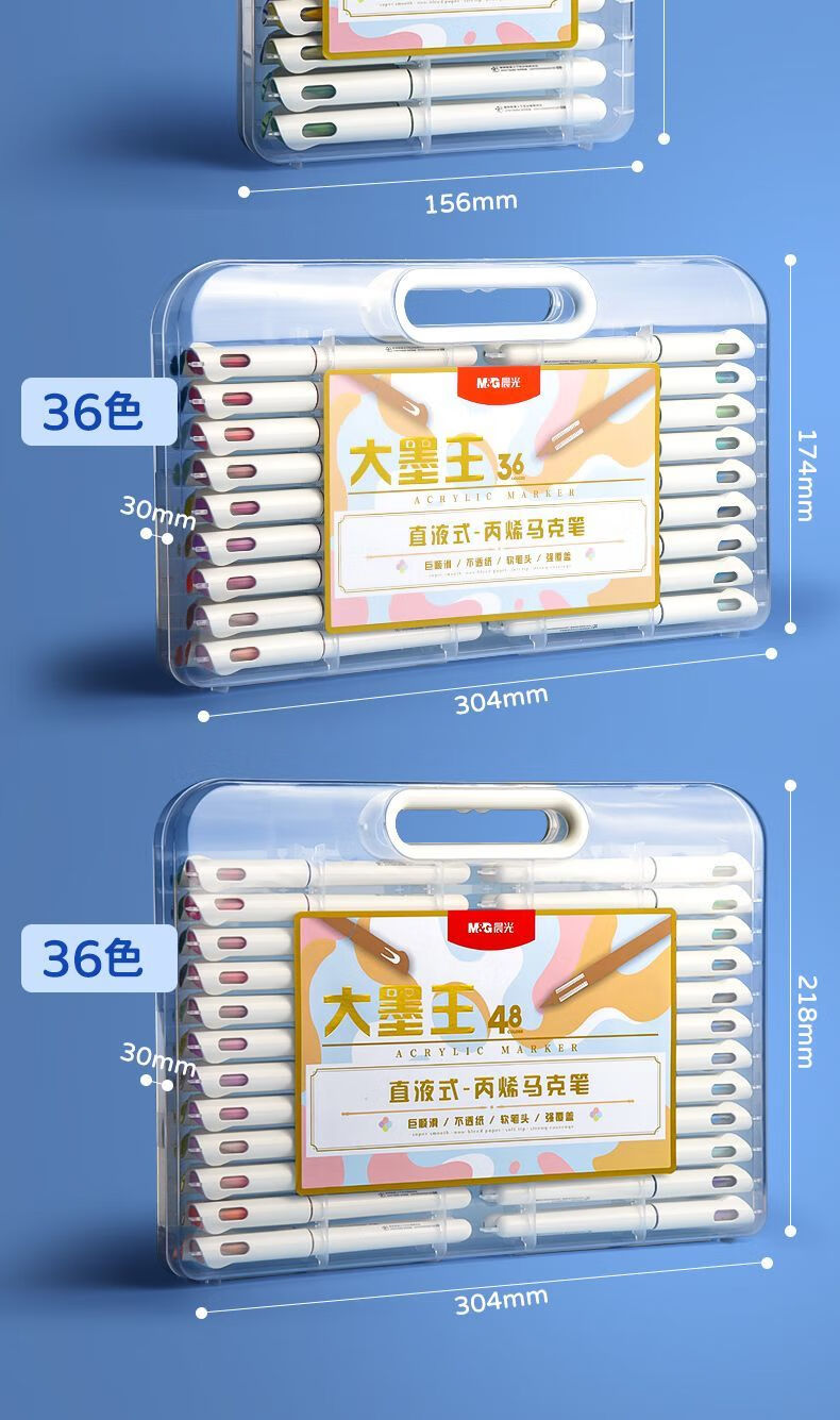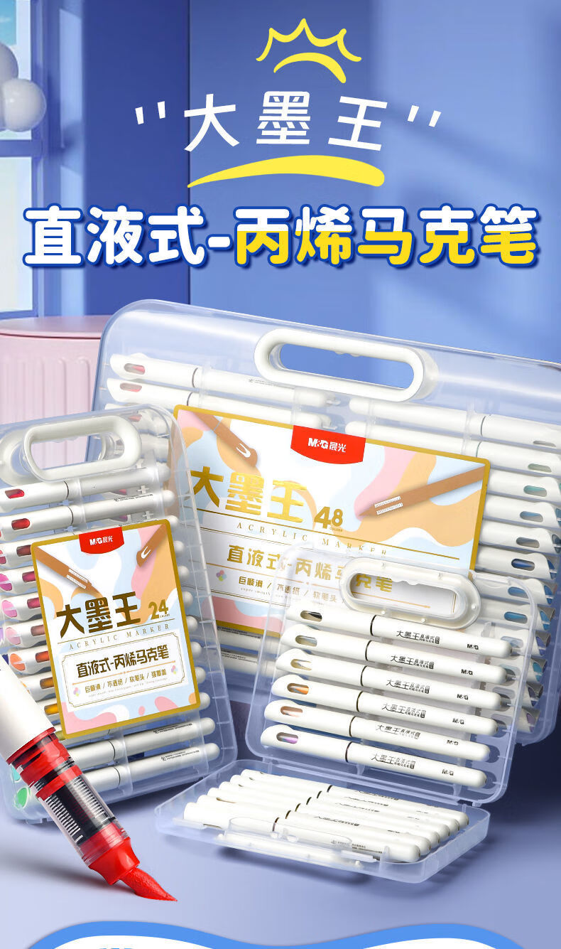 晨光晨光大墨王直液式丙烯马克笔盒装散装弹性软头单头圆杆可叠色透纸 【 大墨王】48色 | 软头 | 直液式