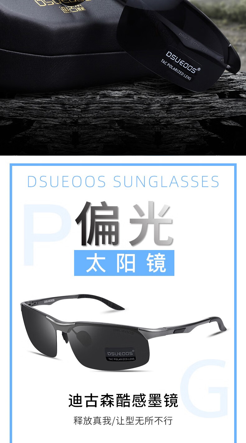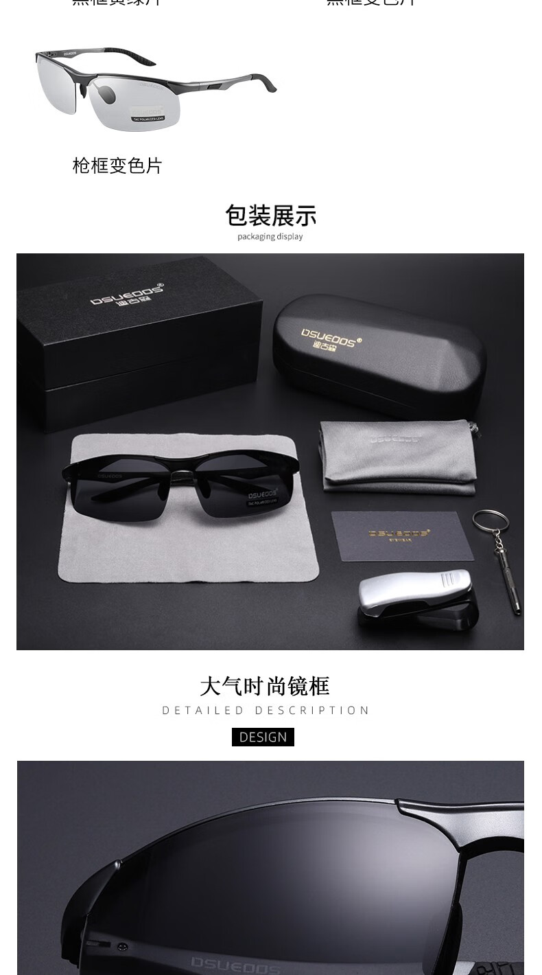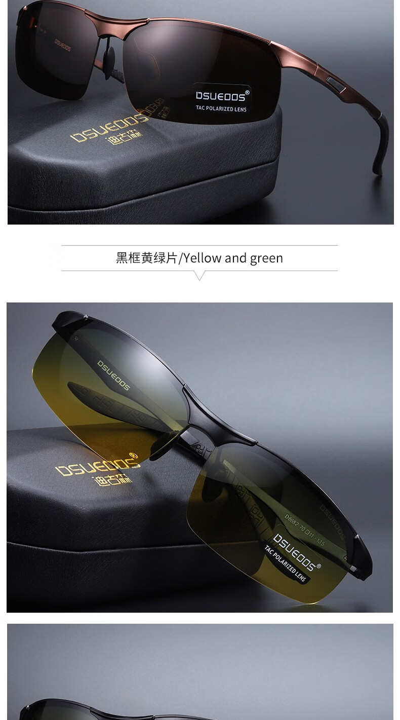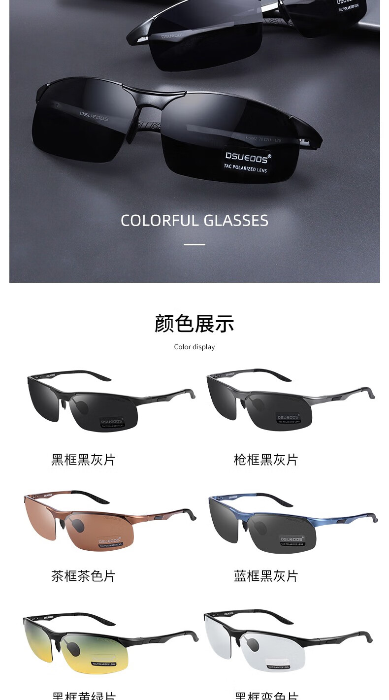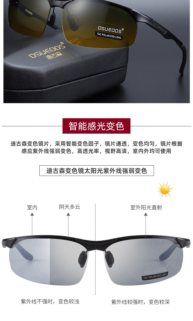 DSUEOOS DESIGN 偏光太阳镜男司机镜日夜两用变色开车钓鱼墨镜男士防远光灯眼镜 D8682茶框茶片