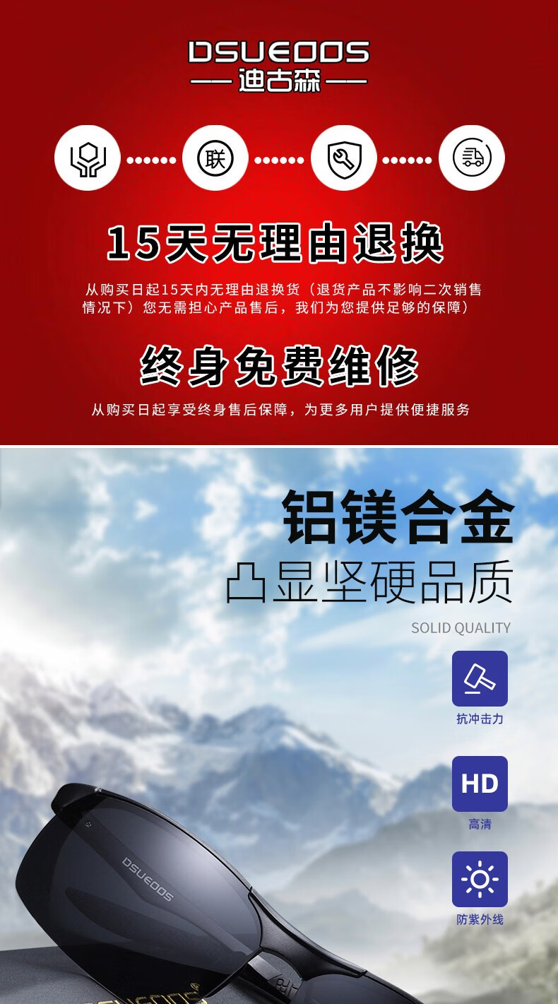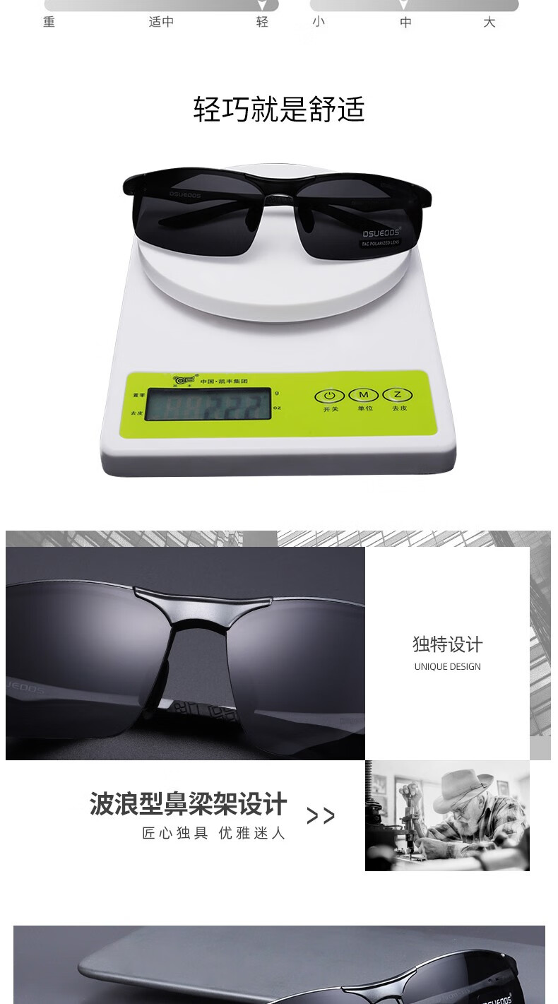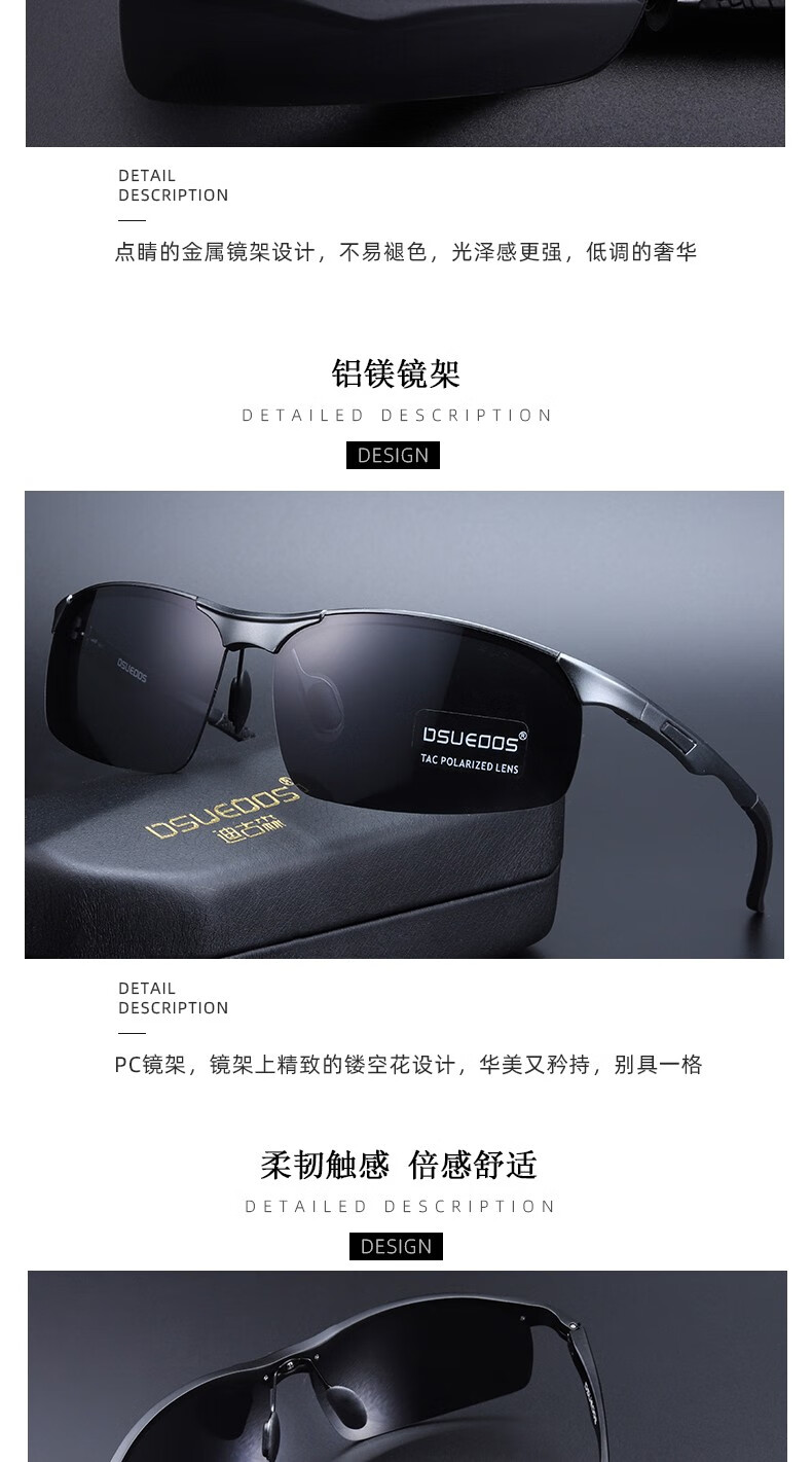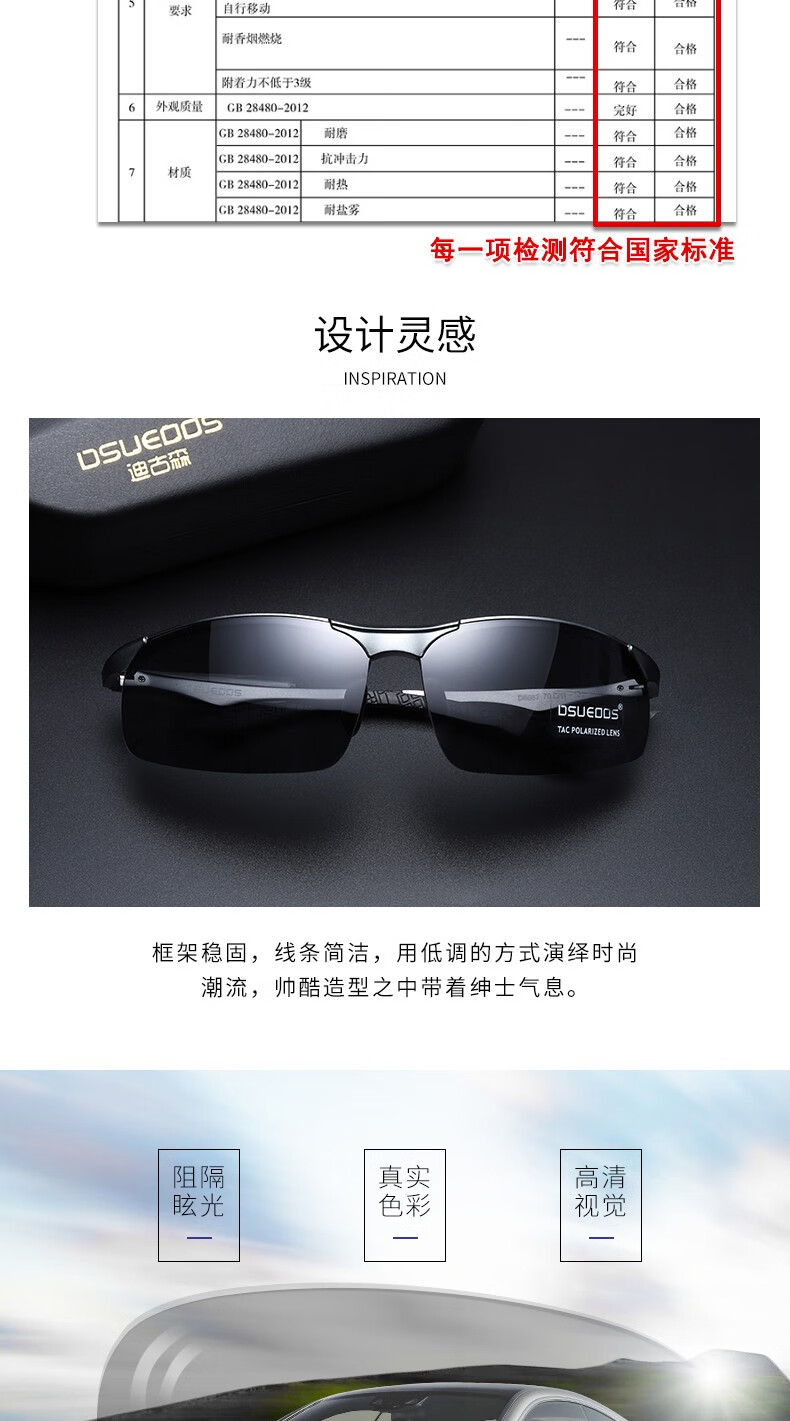 DSUEOOS DESIGN 偏光太阳镜男司机镜日夜两用变色开车钓鱼墨镜男士防远光灯眼镜 D8682茶框茶片