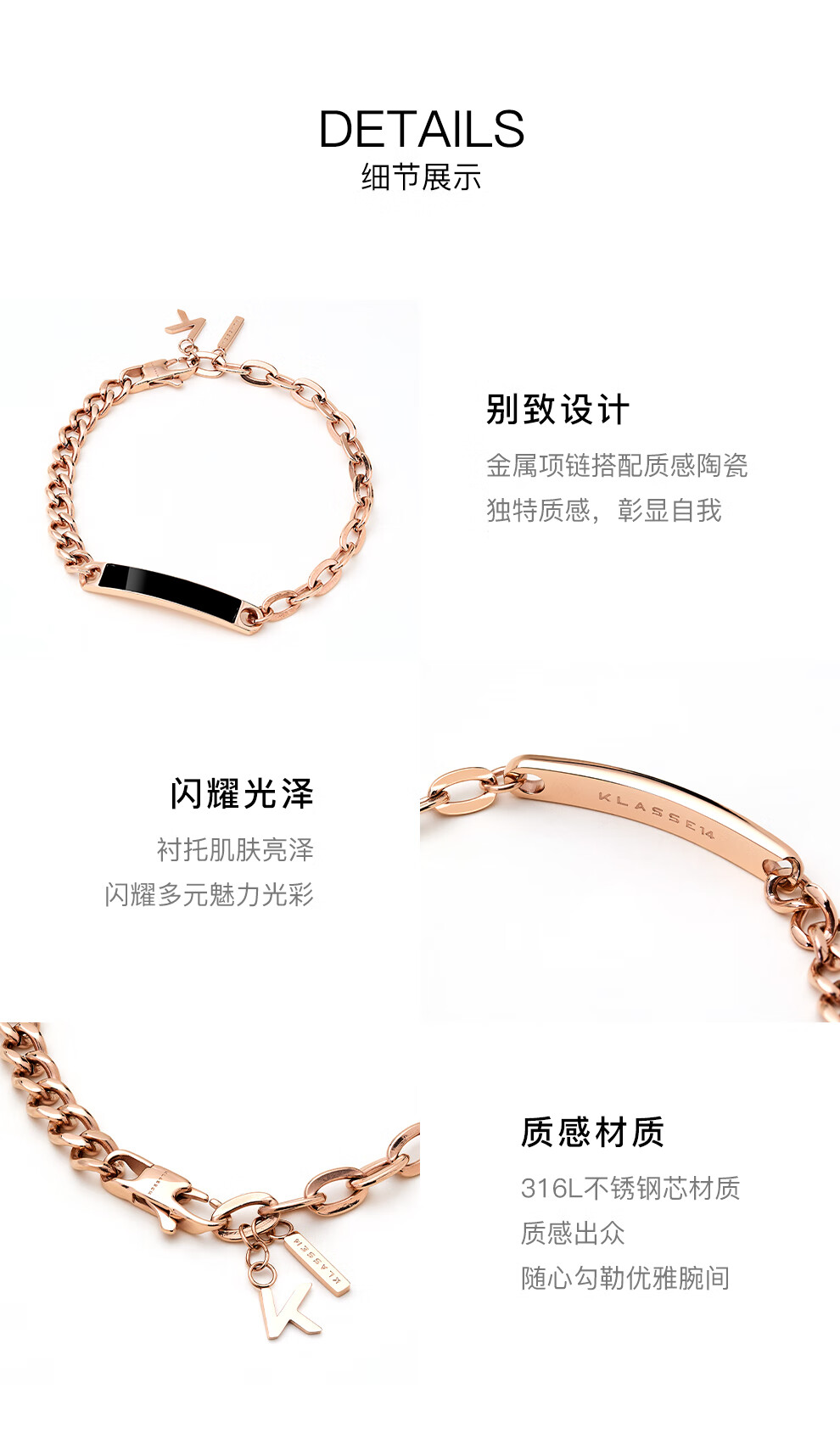 KLASSE 14意大利设计师品牌手链ins时尚饰品男女情侣款送女友生日礼物 JDB21RB001M