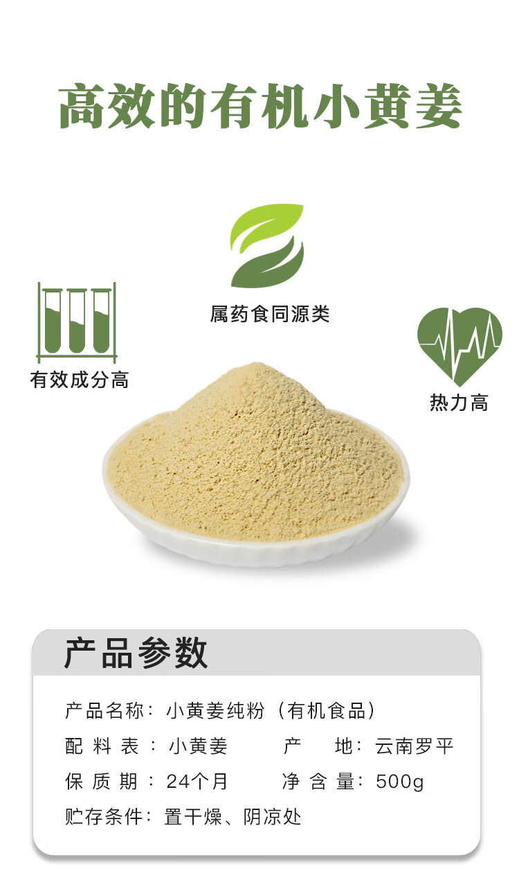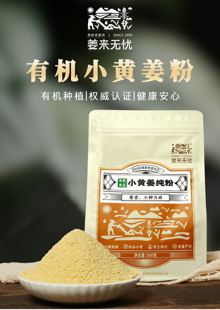 姜来无忧干姜粉食用有机纯生姜粉云南罗平小黄姜原始点热源老姜粉 500g一袋