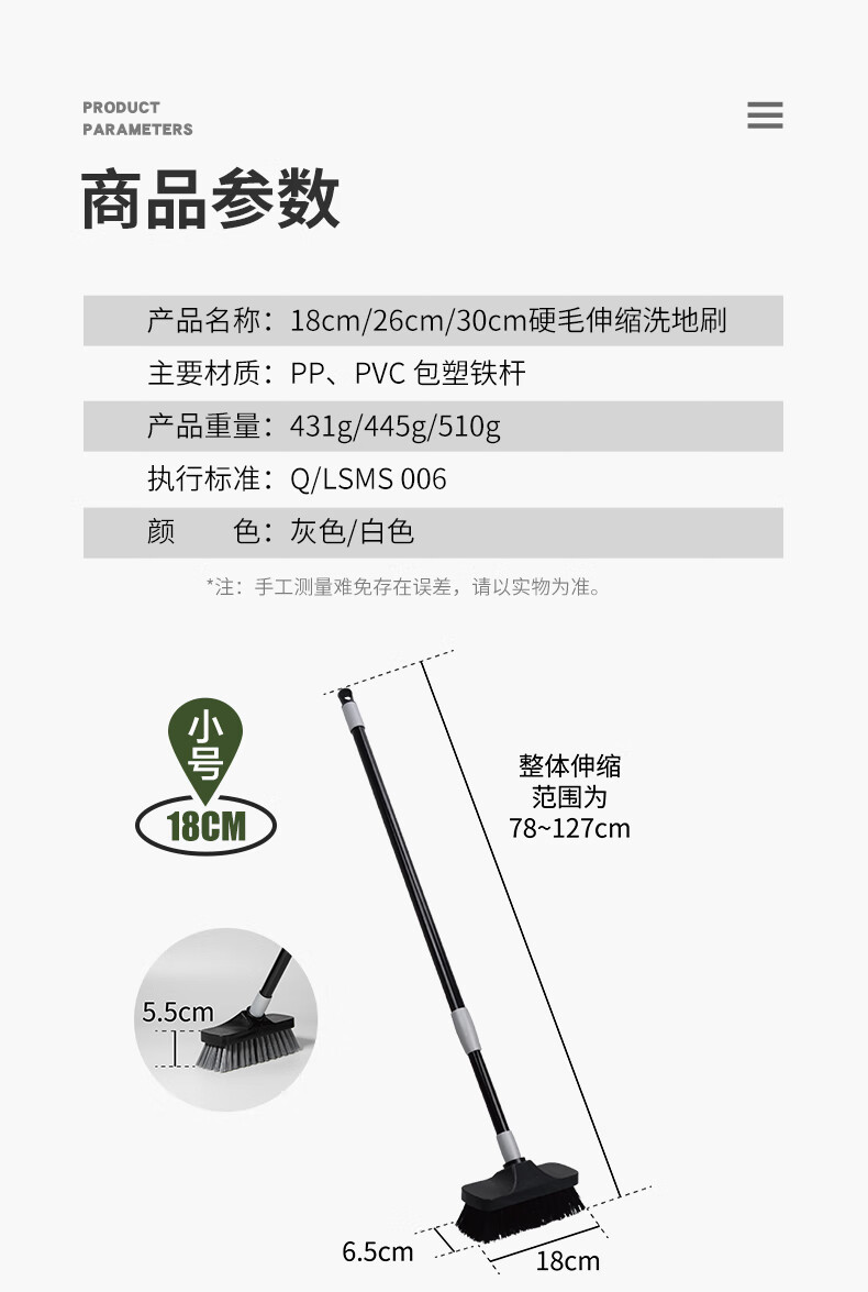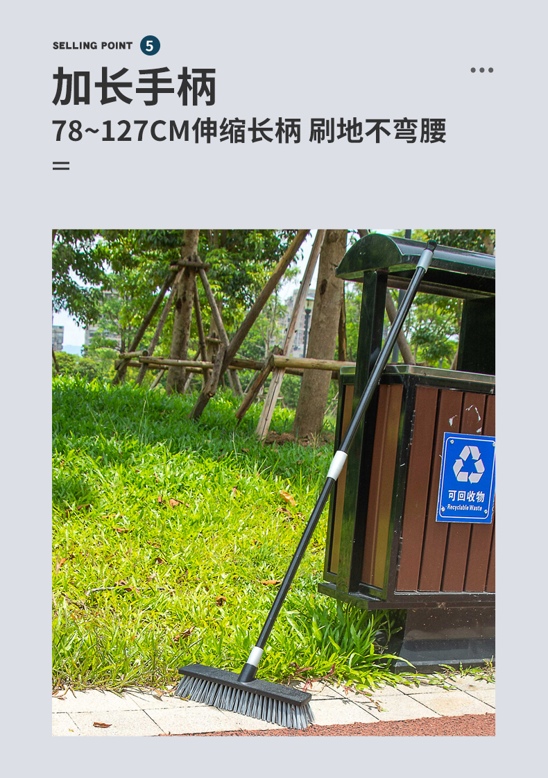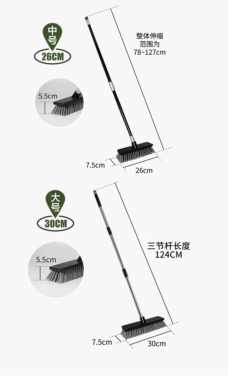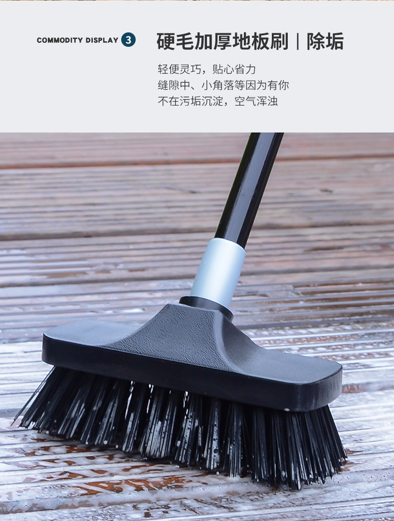 薇瑞格浴室地板刷长柄硬毛刷卫生间刷子洗地刷缝隙刷厕所地面瓷砖清洁刷 18CM地板刷