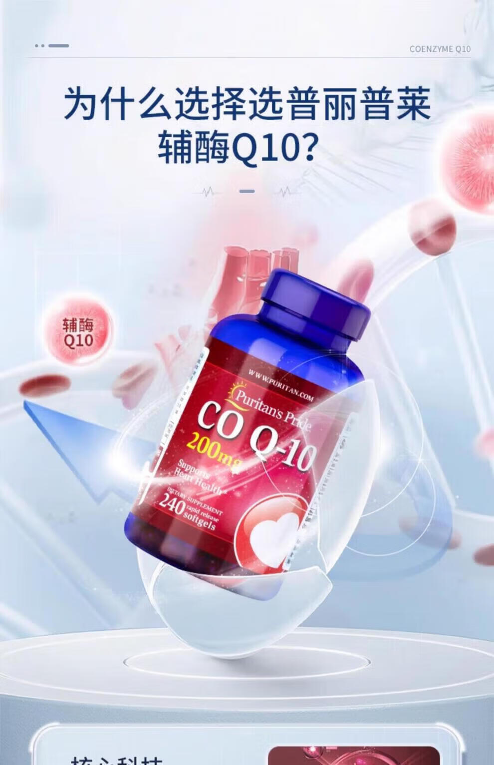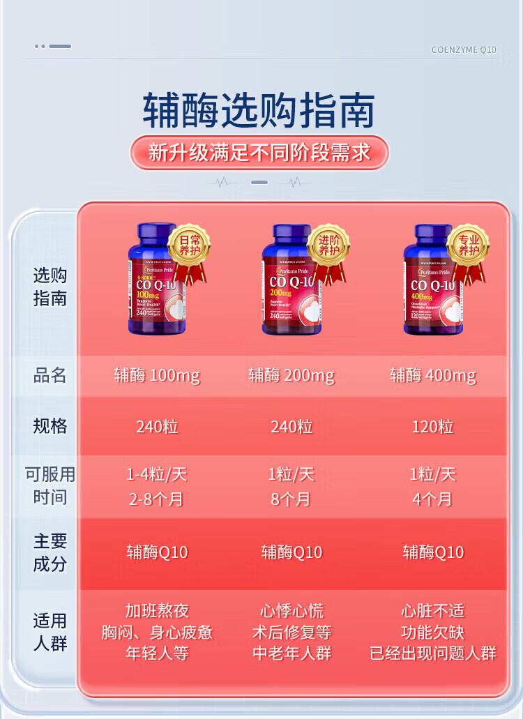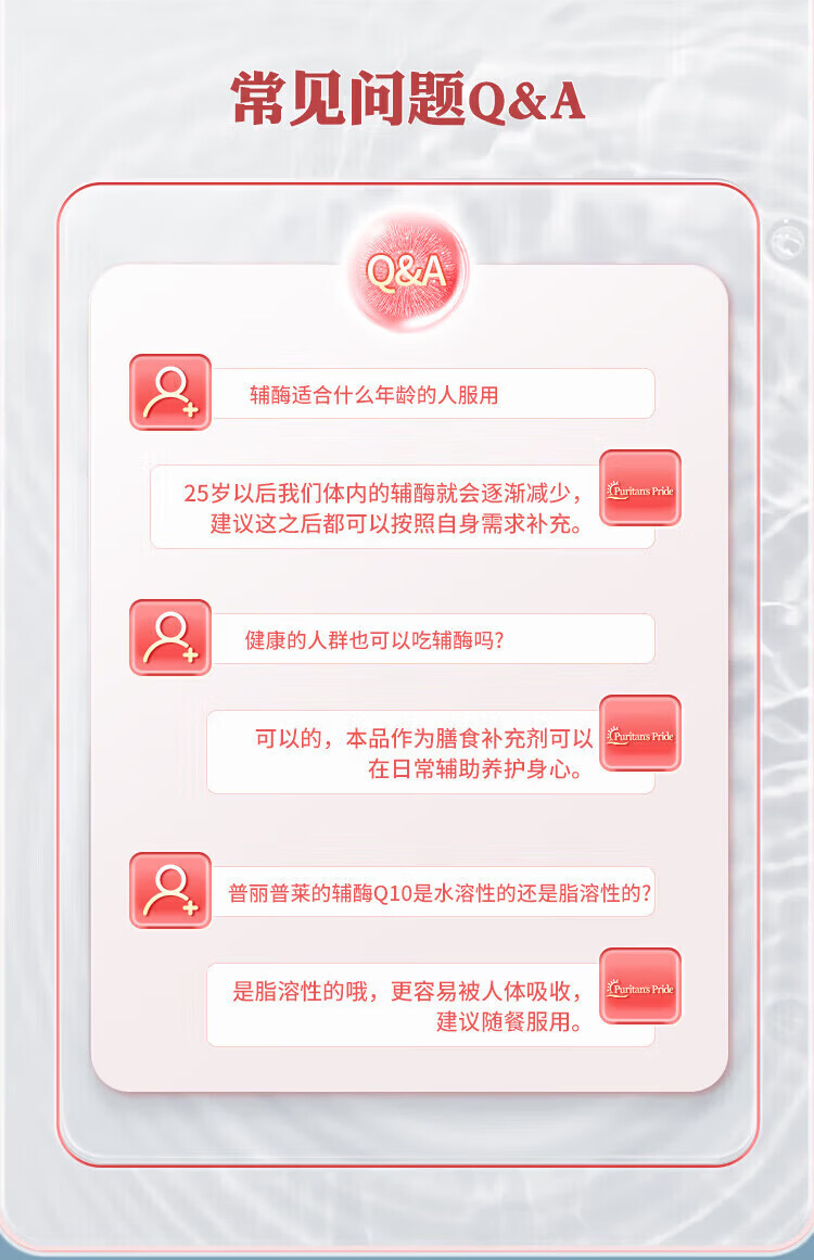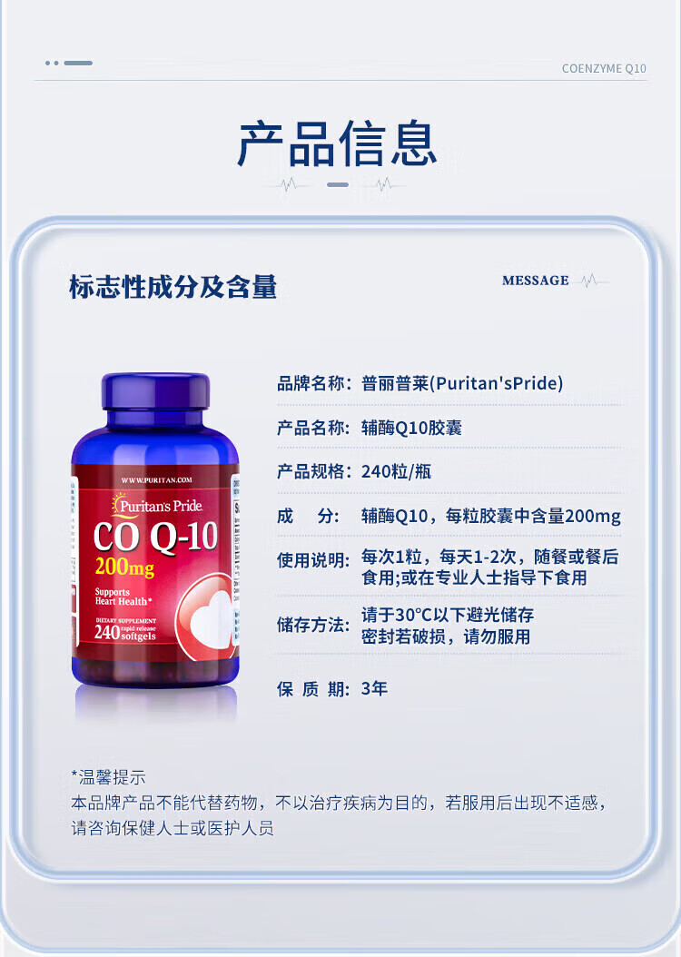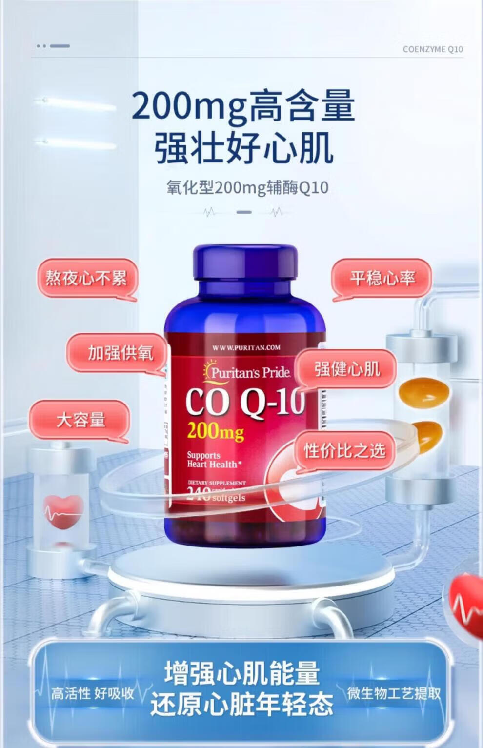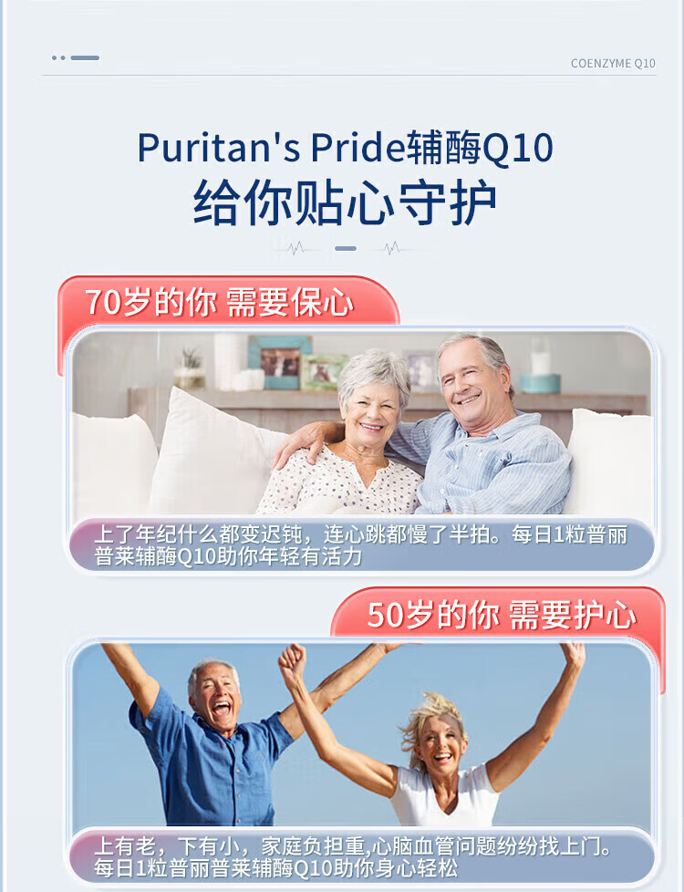 Puritan's Pride普丽普莱辅酶q10软胶囊美国原装进口中老年成年人心脏辅酶素200mg 原装正品 240粒*2瓶