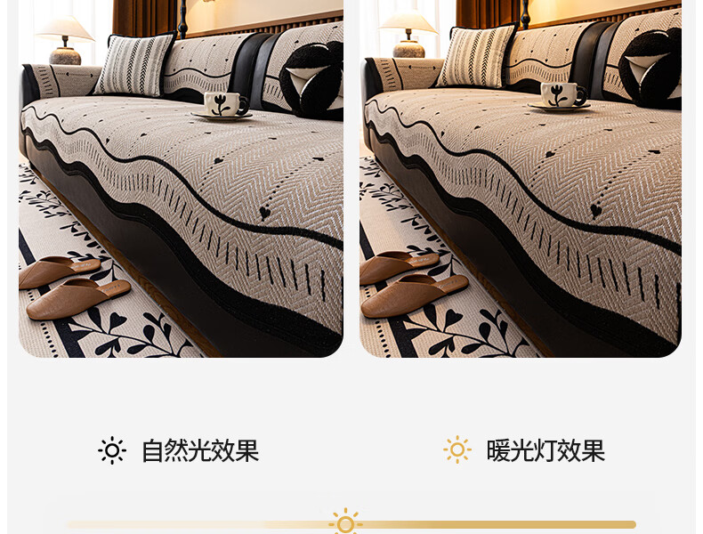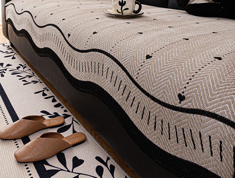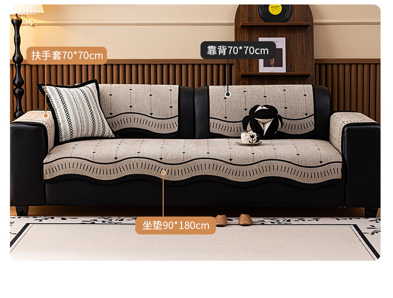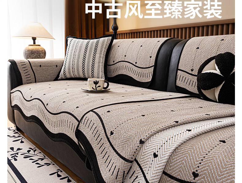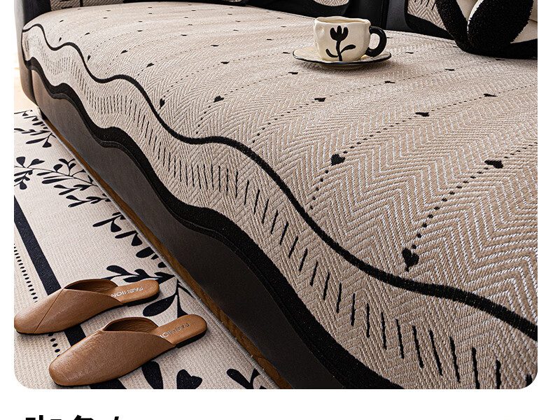 浪莎(LangSha)轻奢防滑防猫抓异形心轨沙发垫 异形心轨-绿色 110cm*180cm 开叉贵妃