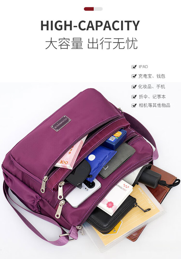 【优选好物】2025新款牛津布女包休闲多层单肩斜挎包透气大容量小 黑色