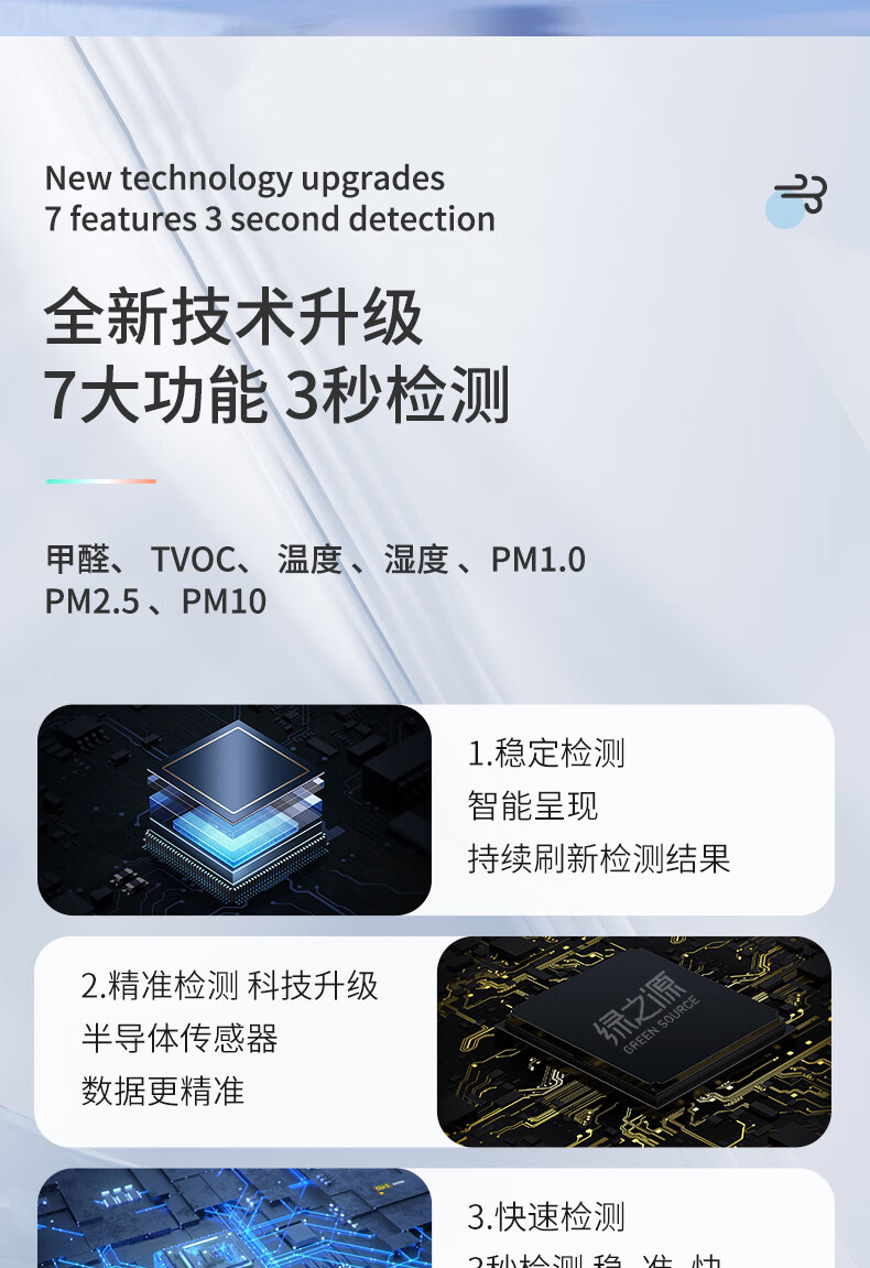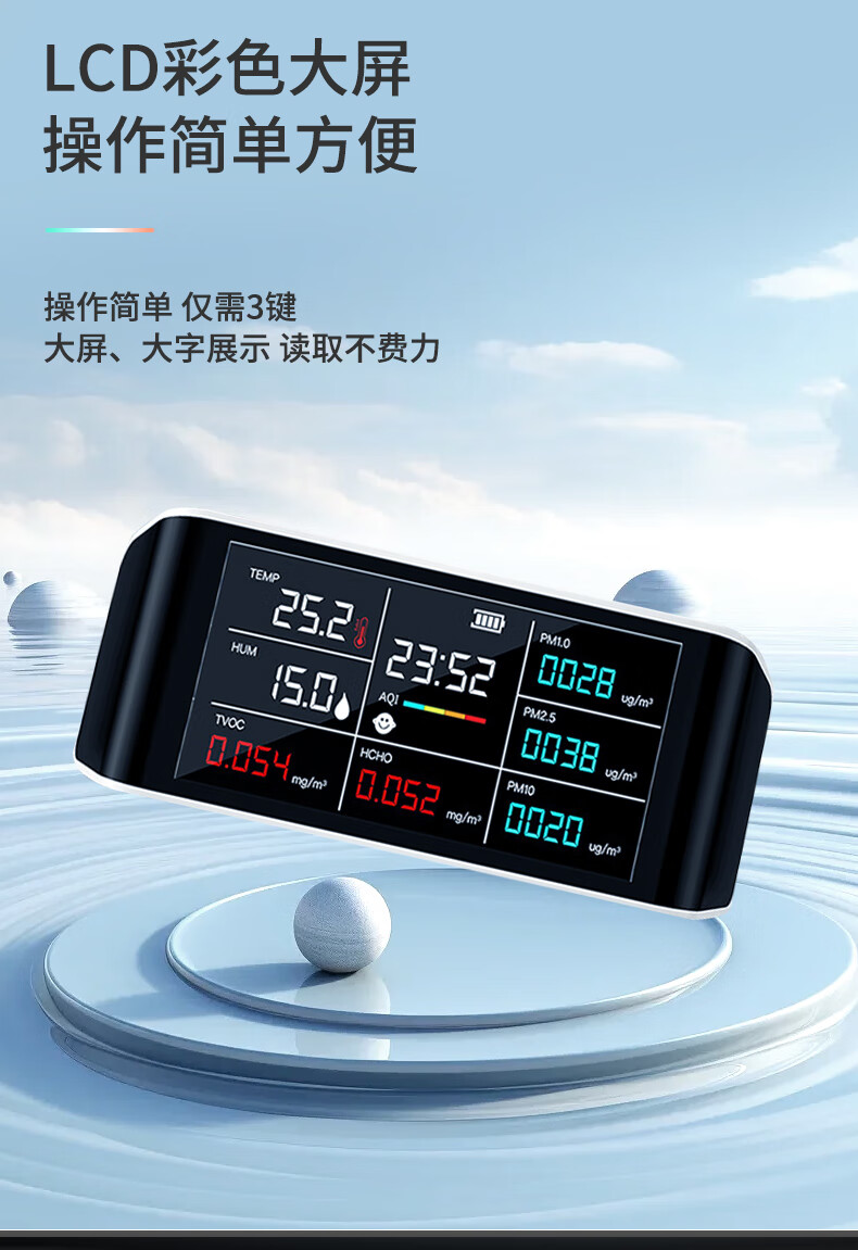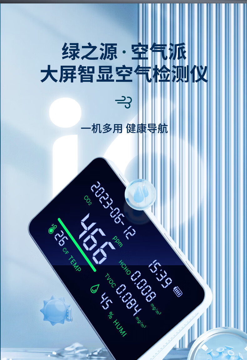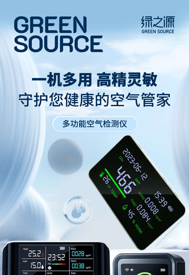 绿之源专业甲醛检测仪TVOC空气质量检测仪室内测甲醛家用pm2.5检测仪 【大屏更清晰】空气检测仪