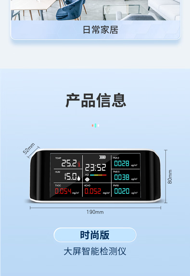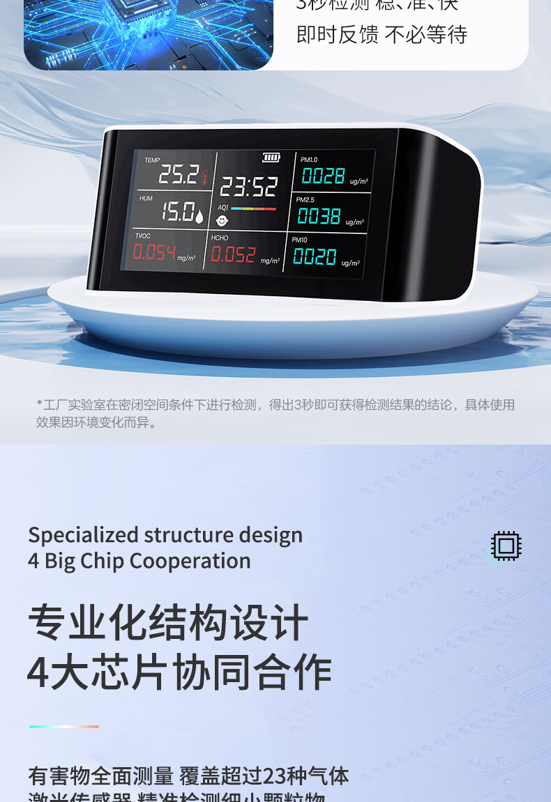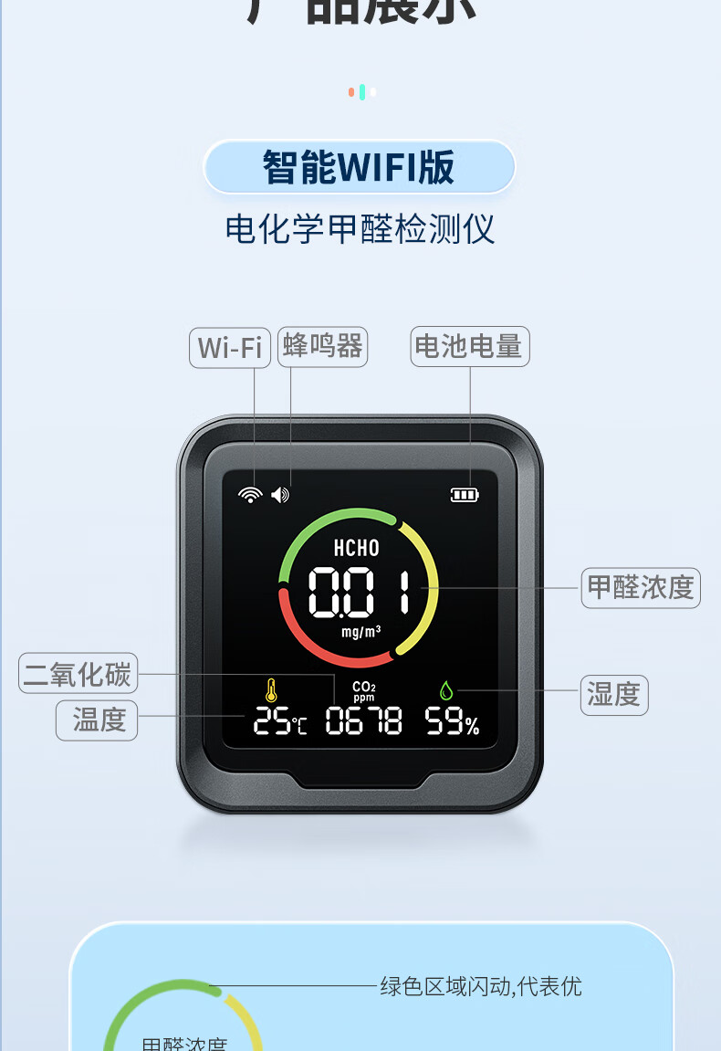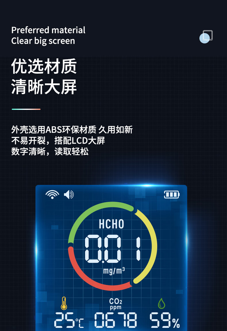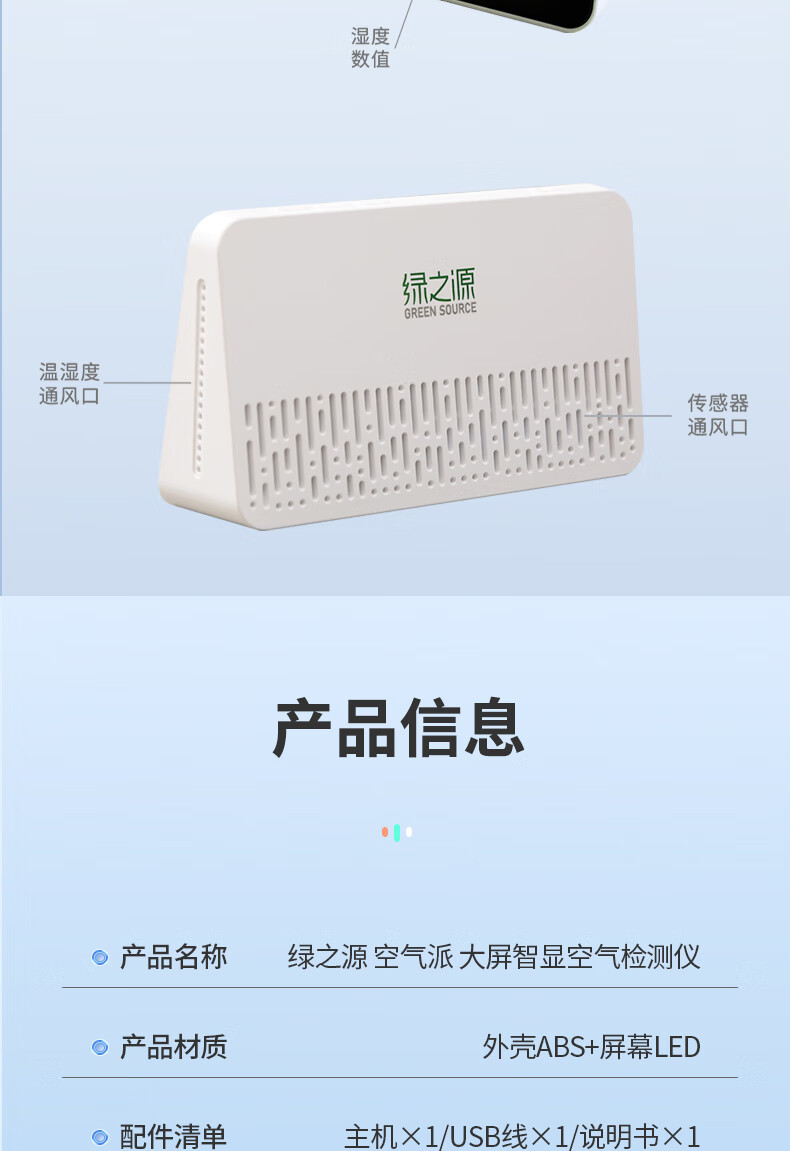 绿之源专业甲醛检测仪TVOC空气质量检测仪室内测甲醛家用pm2.5检测仪 【大屏更清晰】空气检测仪