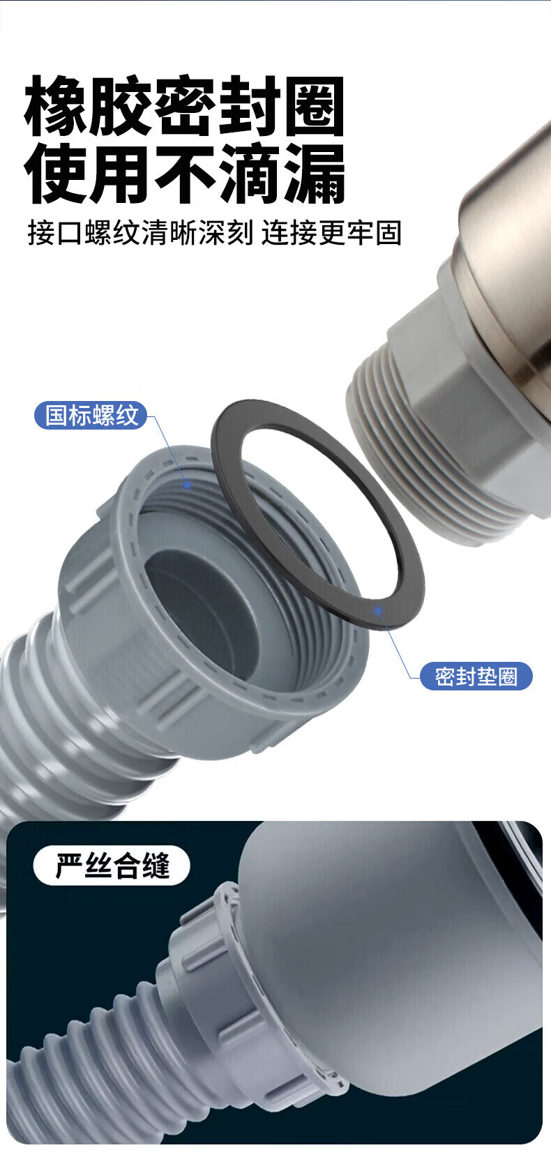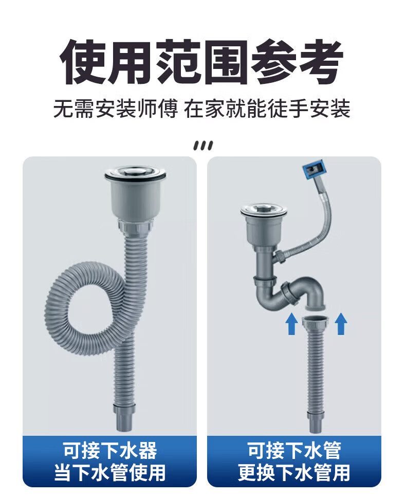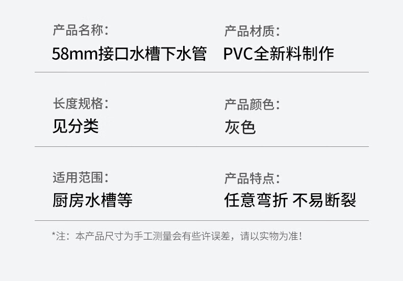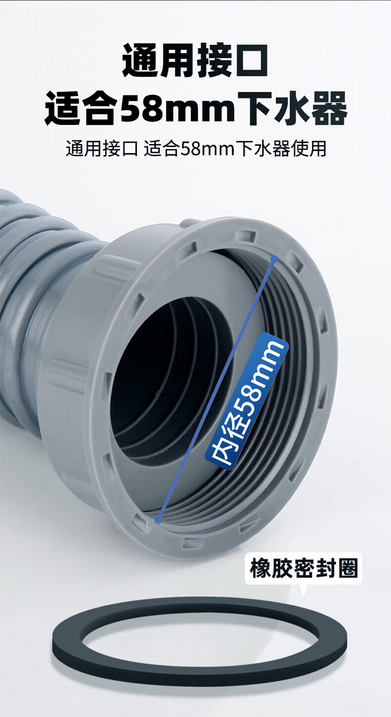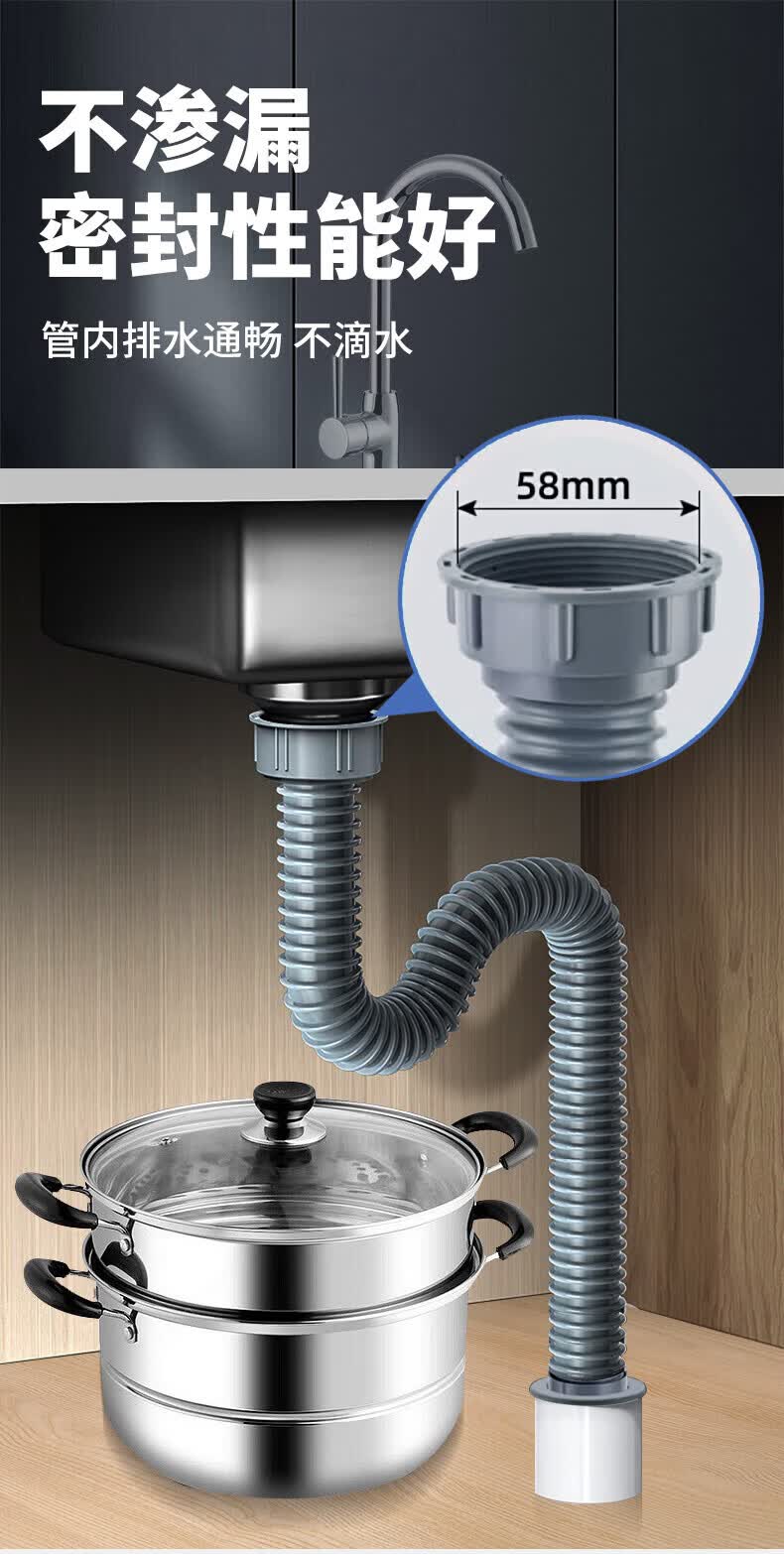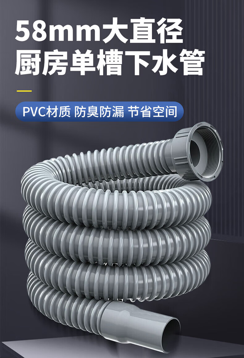 一靓厨房洗菜盆下水管防反臭单水槽配件56/58mm洗碗池拖把池排水管道 50厘米+单头内径58mm【防冻防烫】