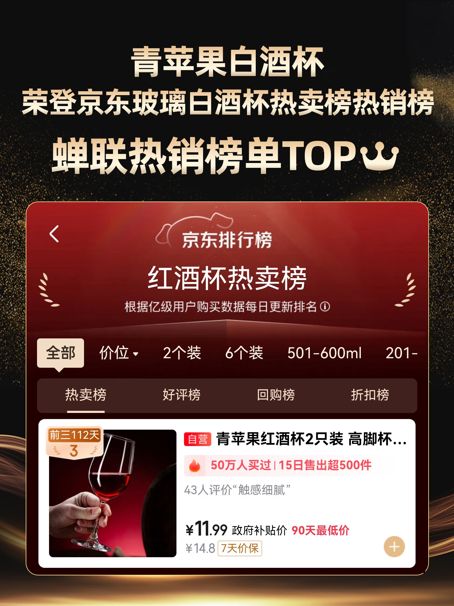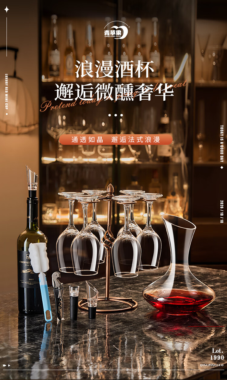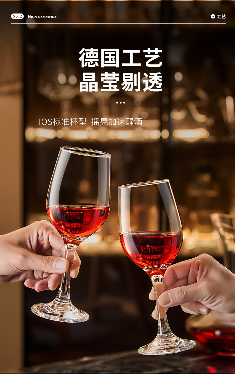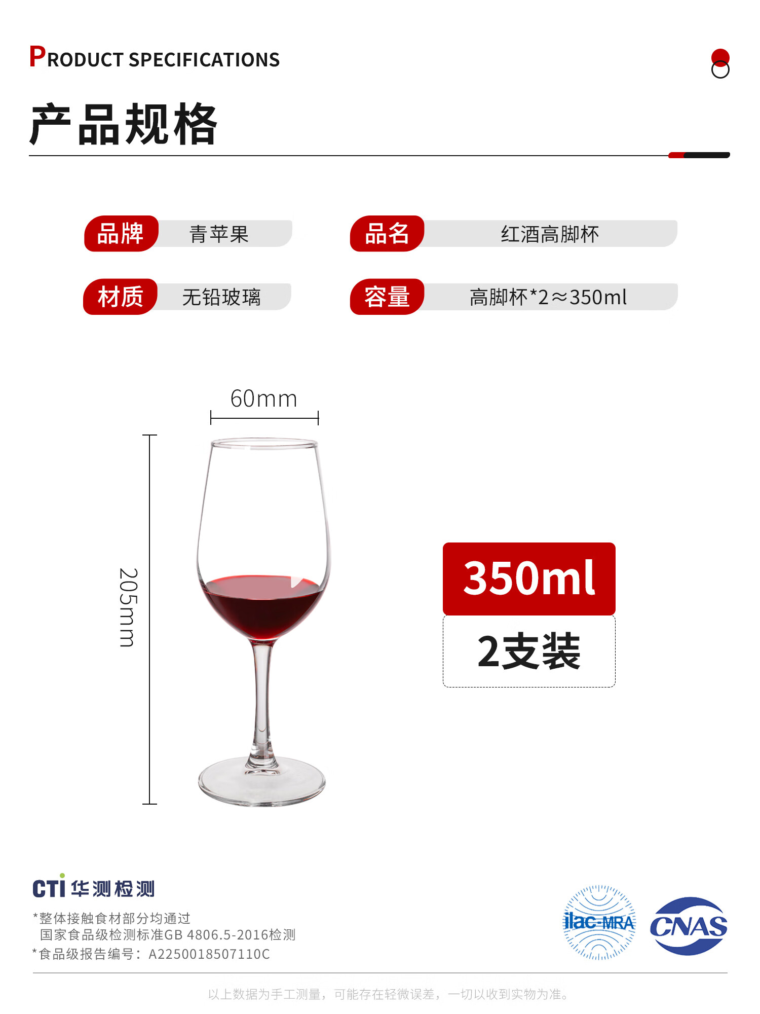 青苹果红酒杯350ml2只装 高脚杯葡波尔多萄酒杯 无铅玻璃杯洋酒杯