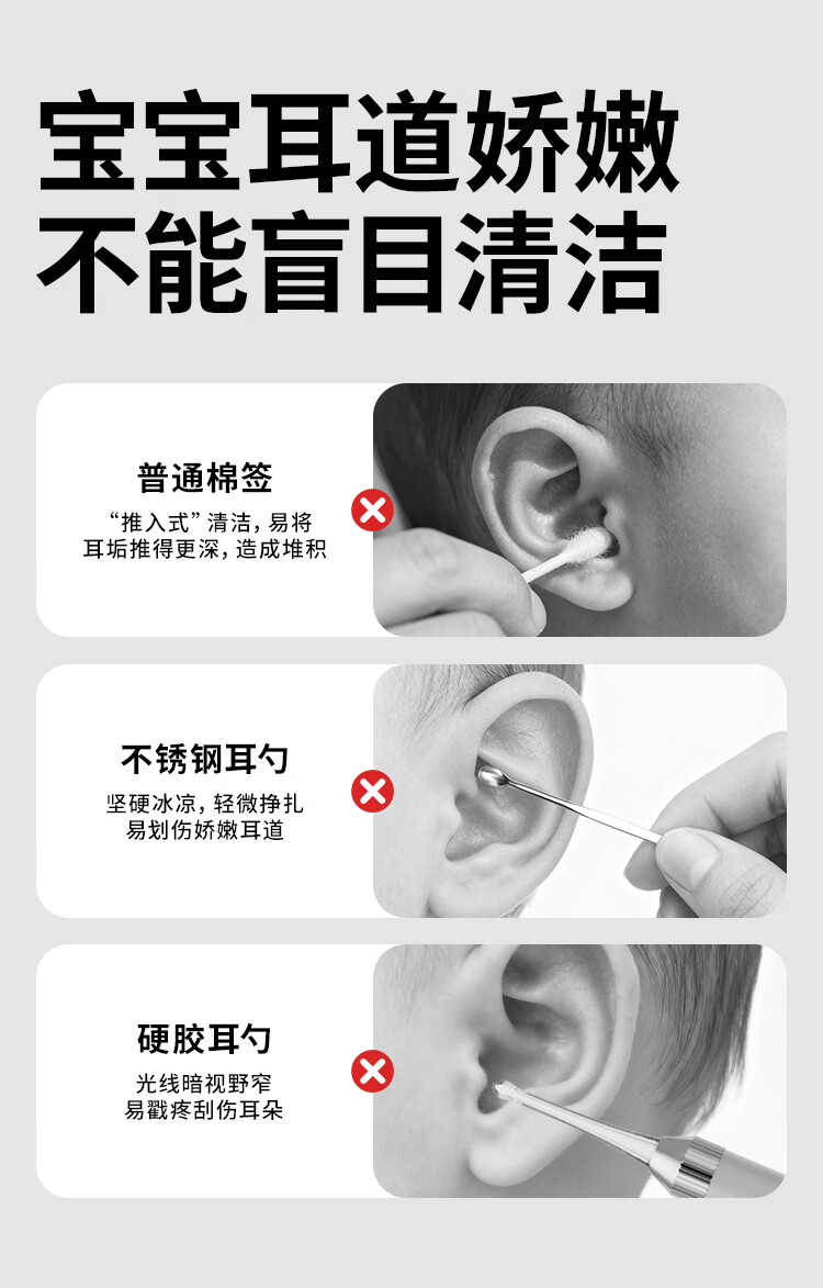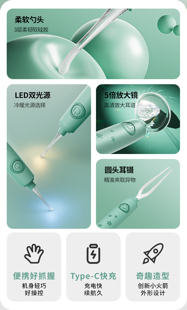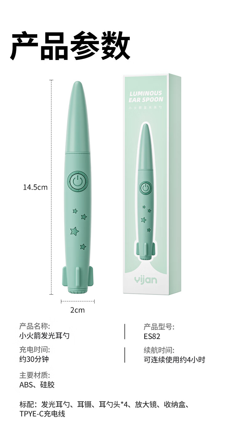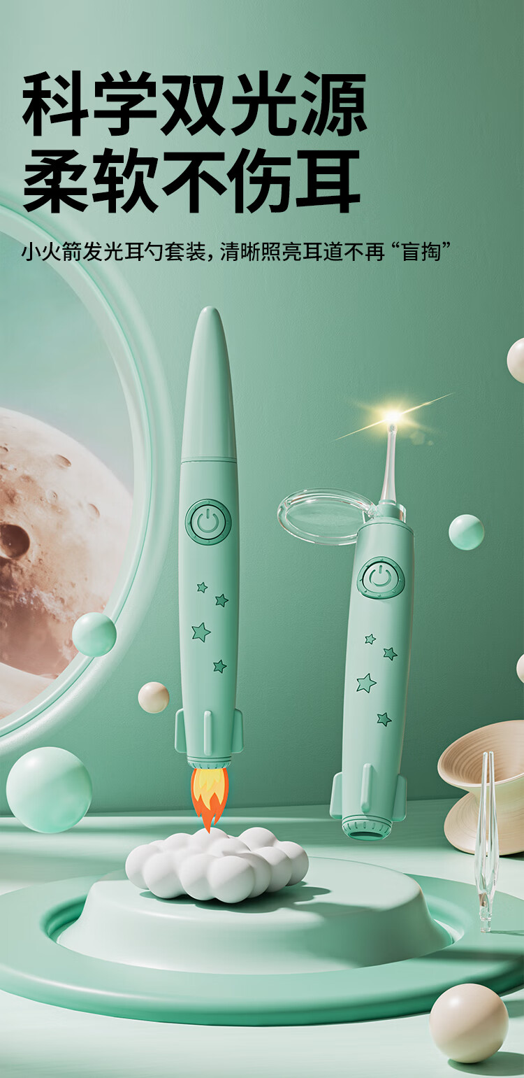 易简(yijan)发光挖耳勺儿童掏耳朵神器带灯新生儿婴儿掏耳勺采耳工具套装