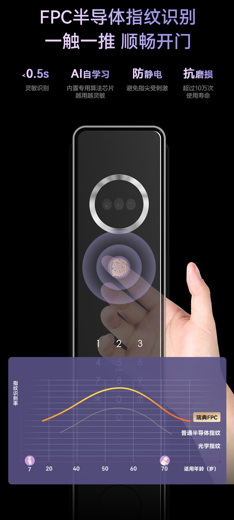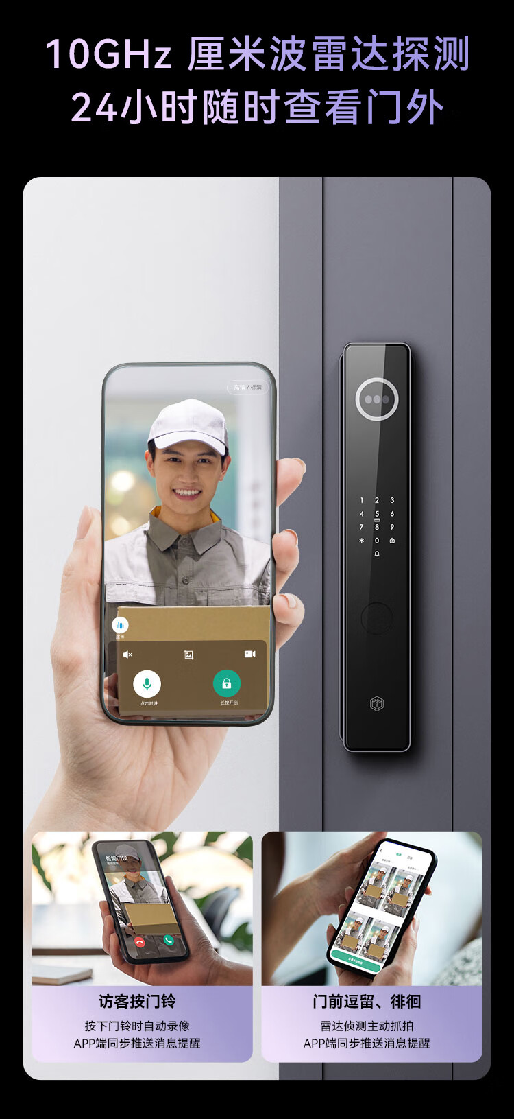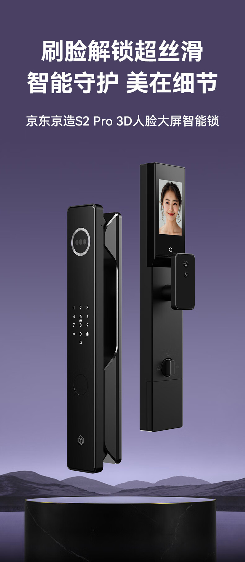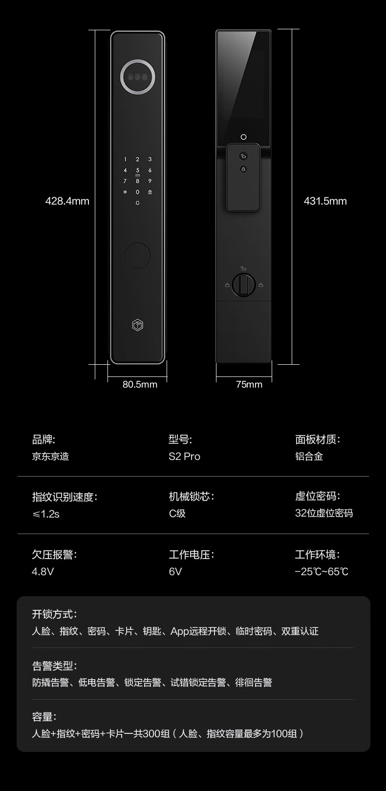 京东京造智能门锁双摄版Pro 人脸识别猫眼指纹密码电子锁全自动防盗门锁