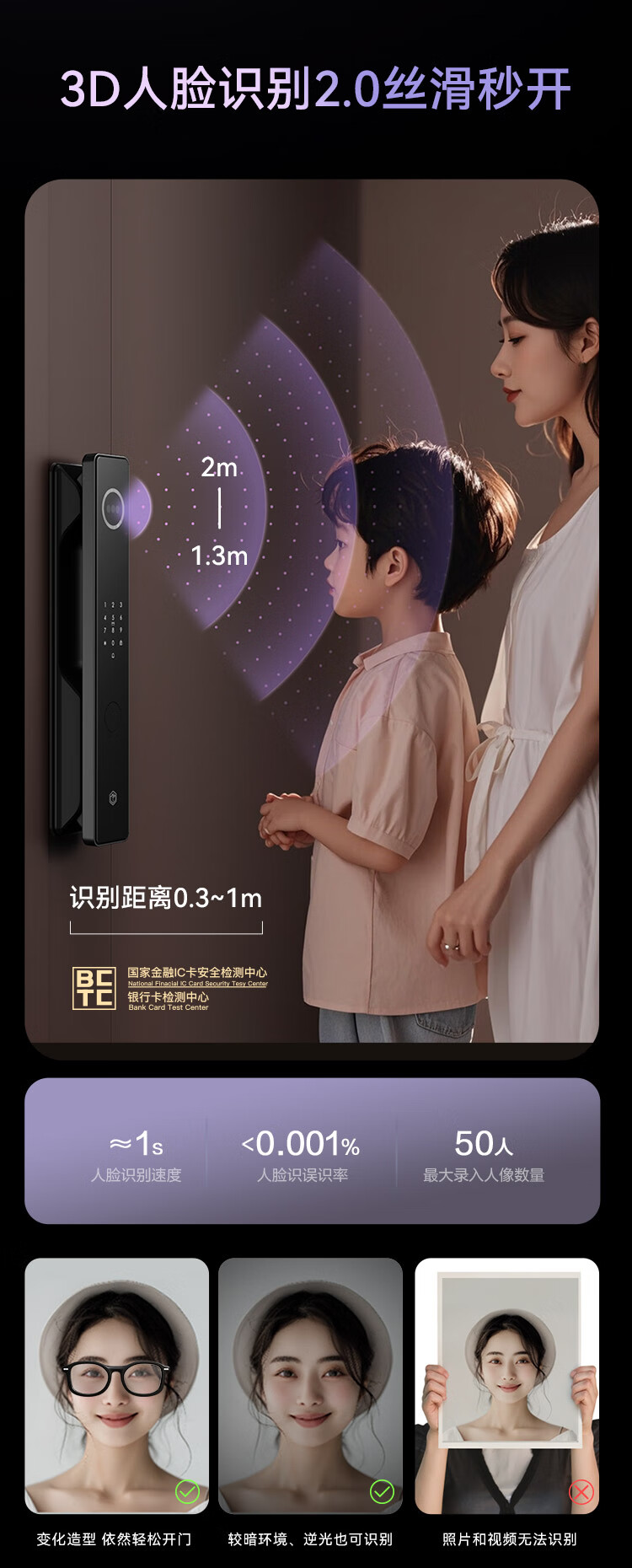 德施曼(DESMAN)智能门锁人脸掌静脉识别 哨兵可视猫眼大屏Q50FVMax