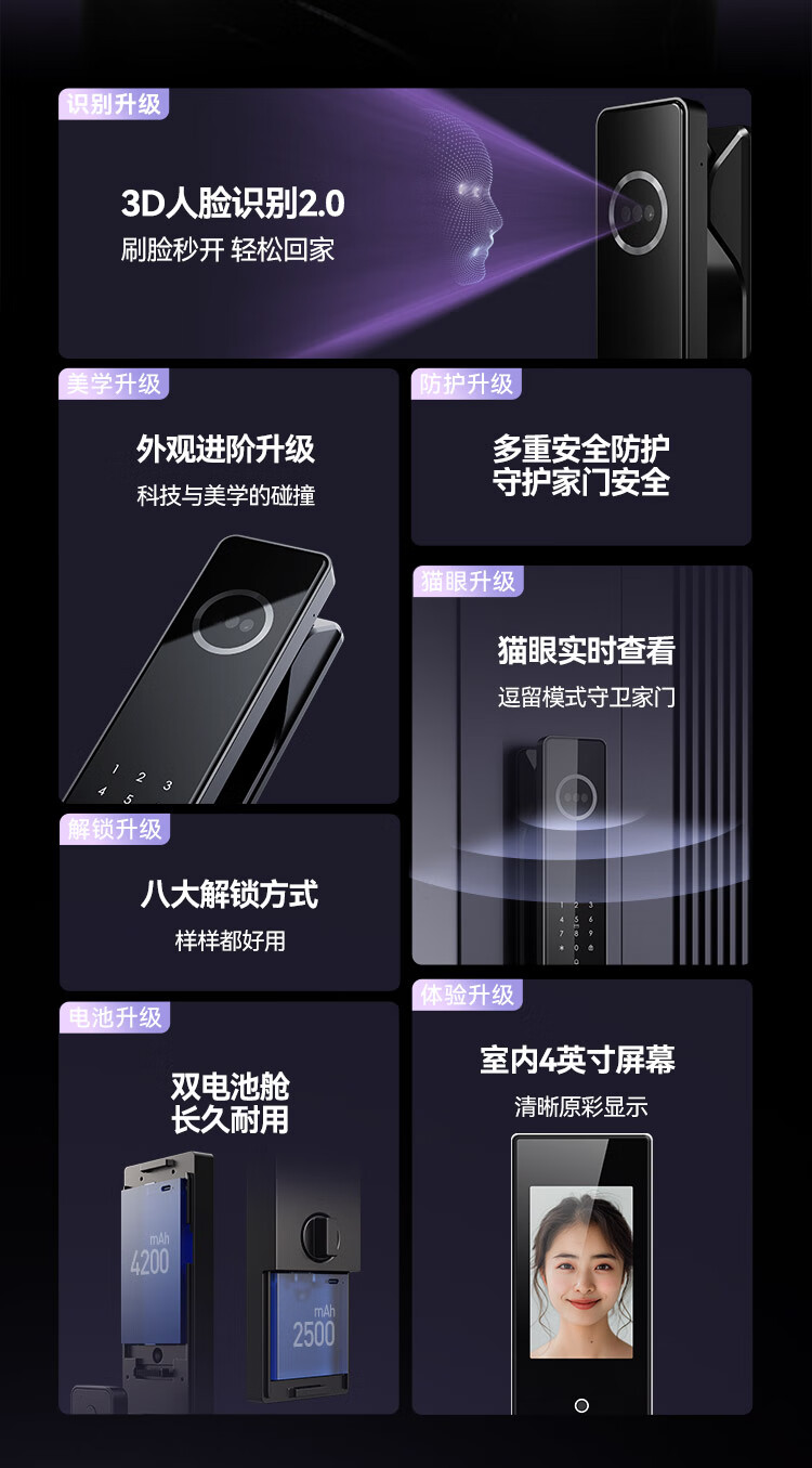 德施曼(DESMAN)智能门锁人脸双摄猫眼指纹密码全自动智能锁电子锁小嘀Q2F下摄版 Q2F下摄版
