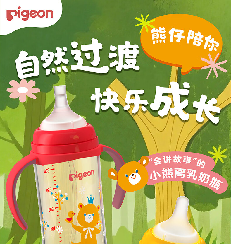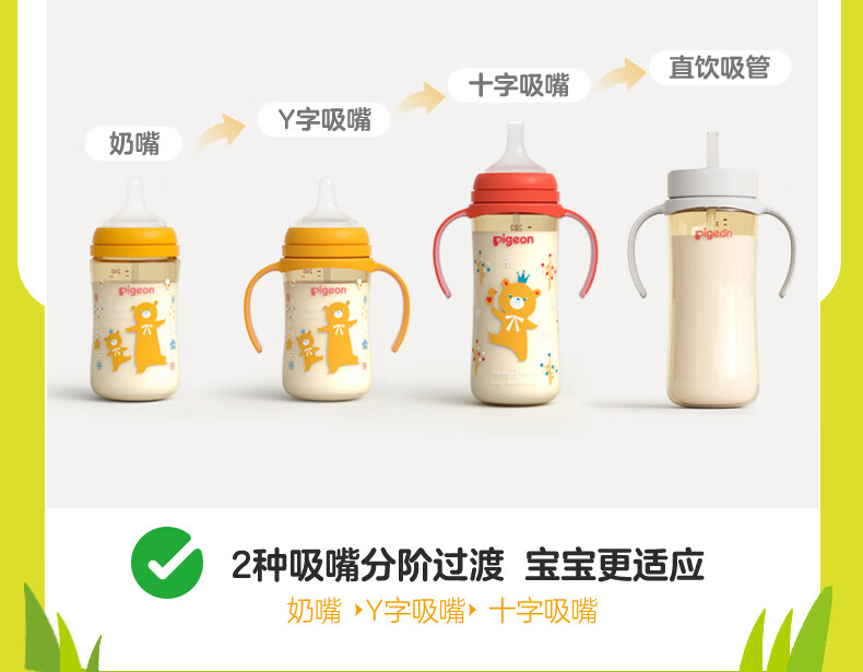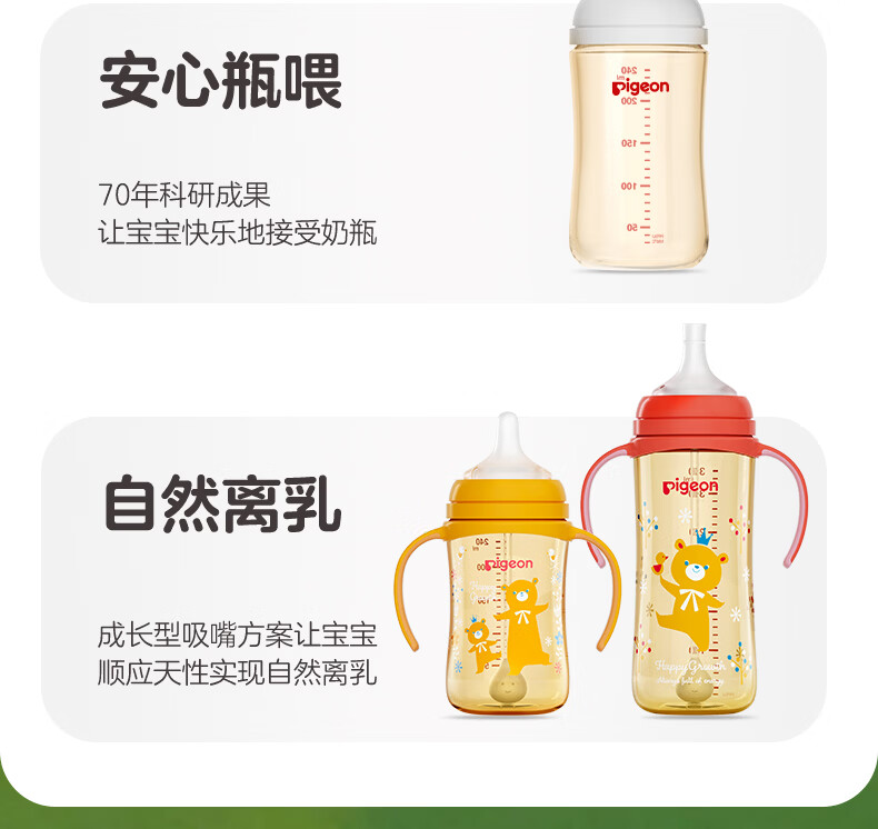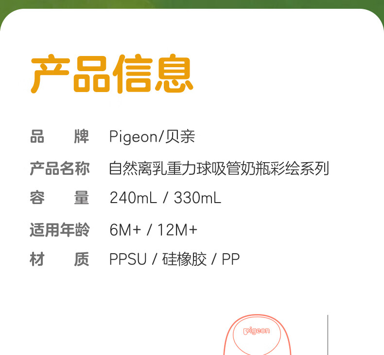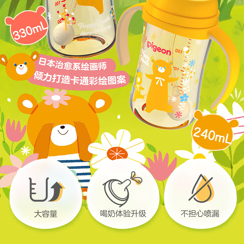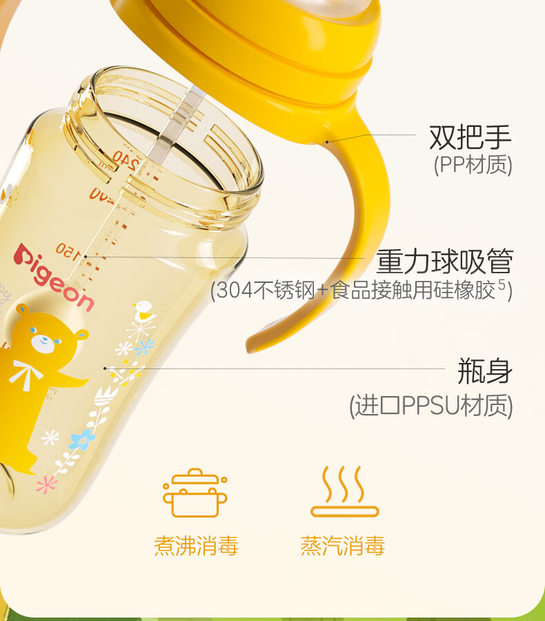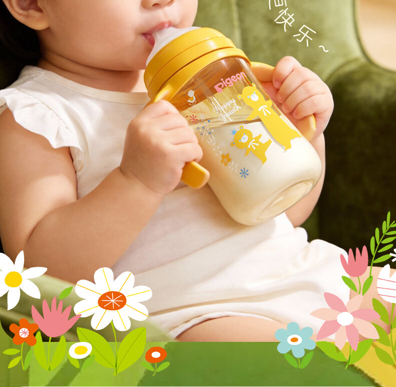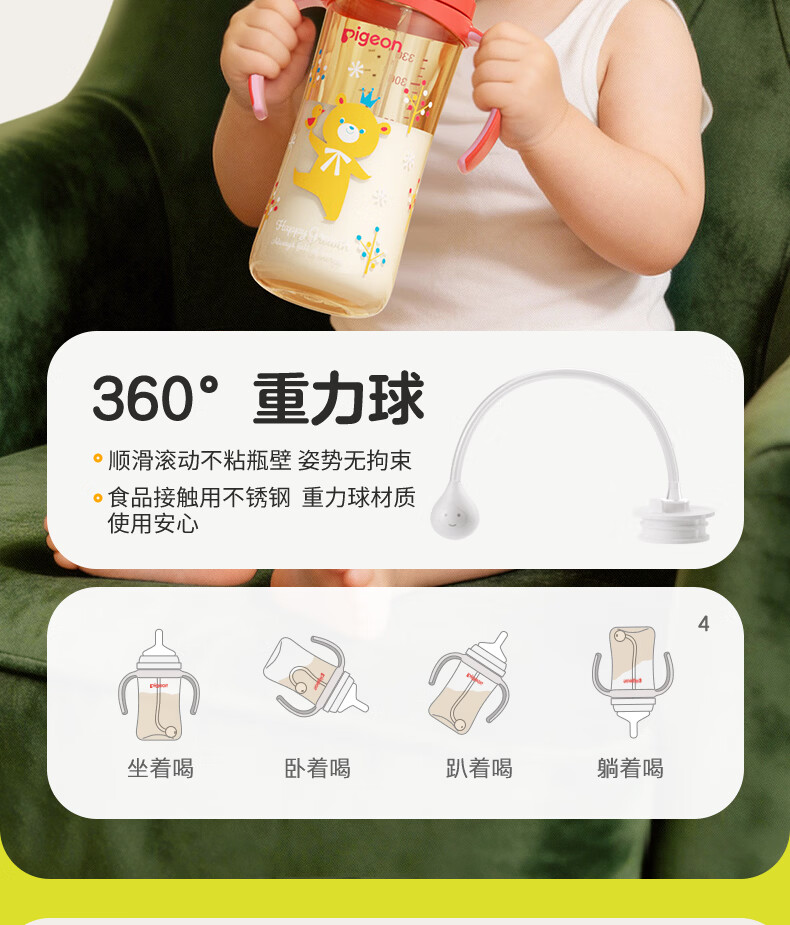 贝亲奶瓶ppsu 吸管奶瓶 重力球奶瓶一岁以上自然离乳奶瓶双把手大容量 330ml+翻盖吸管杯头