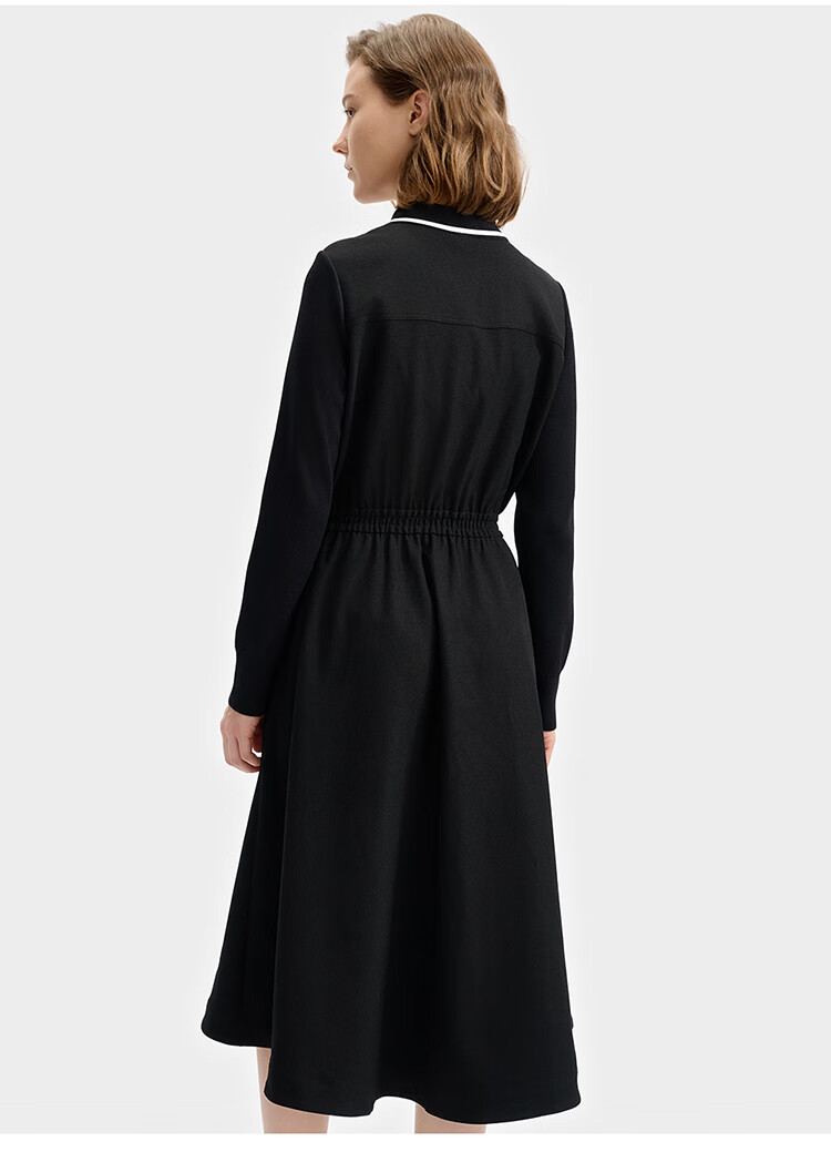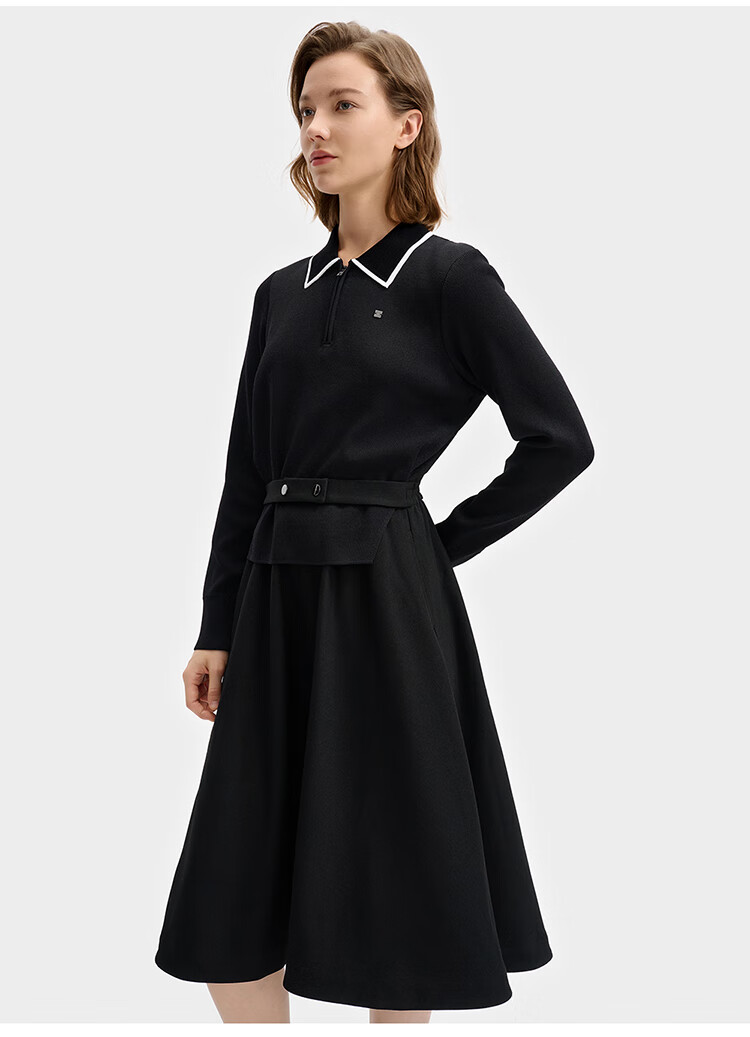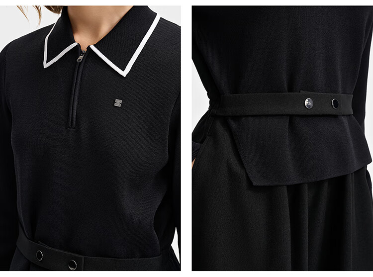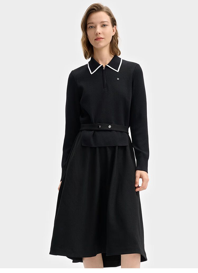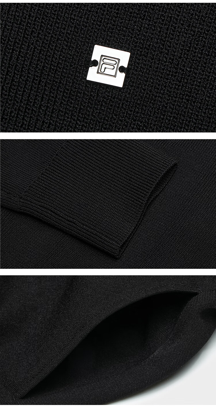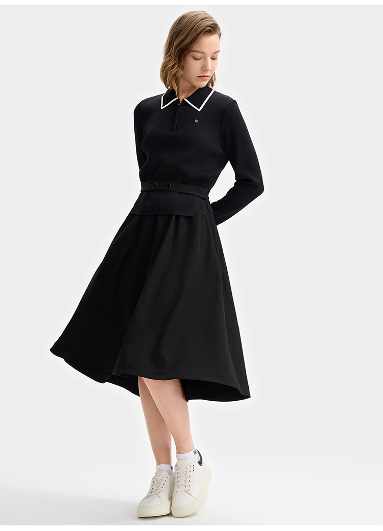 FILA 斐乐官方连衣裙女子杨幂同款裙子2025春新款潮流时尚翻领连身裙 正黑色-BK L 170/88A/L