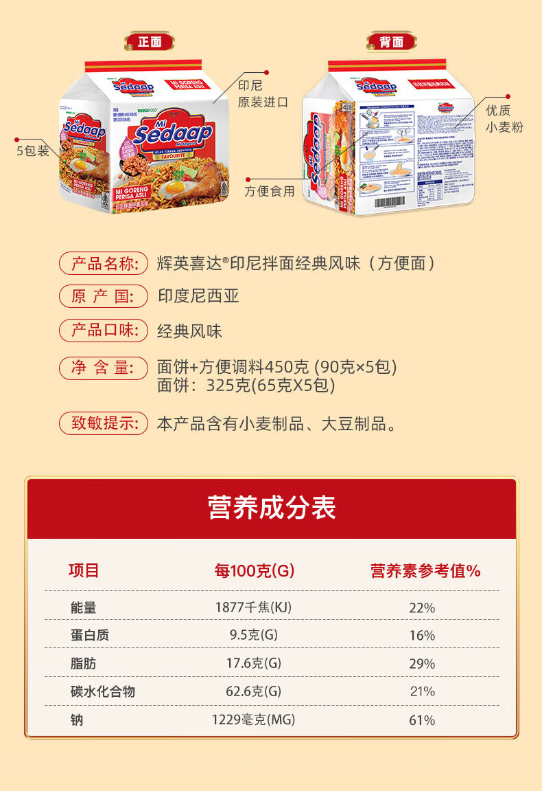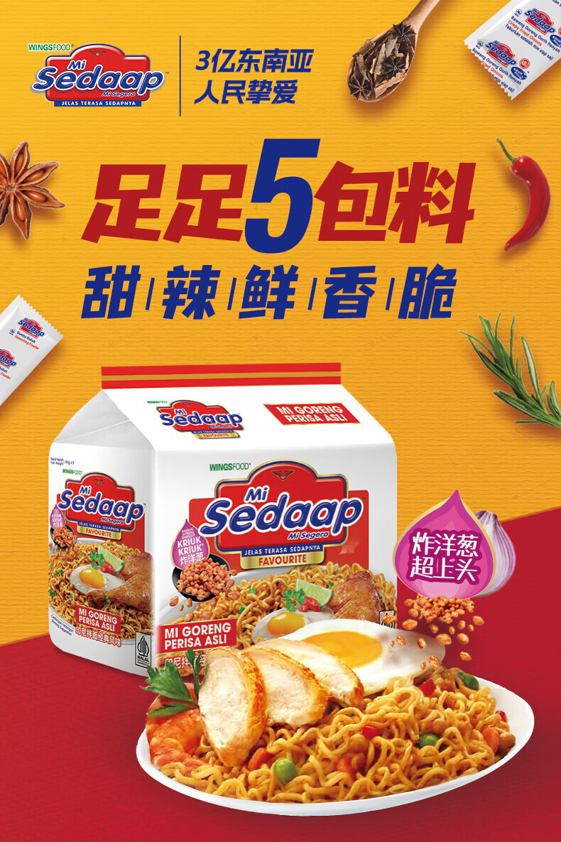 WINGSFOOD辉英喜达印尼经典风味干拌面夜宵进口方便面90g*15包 经典风味15包