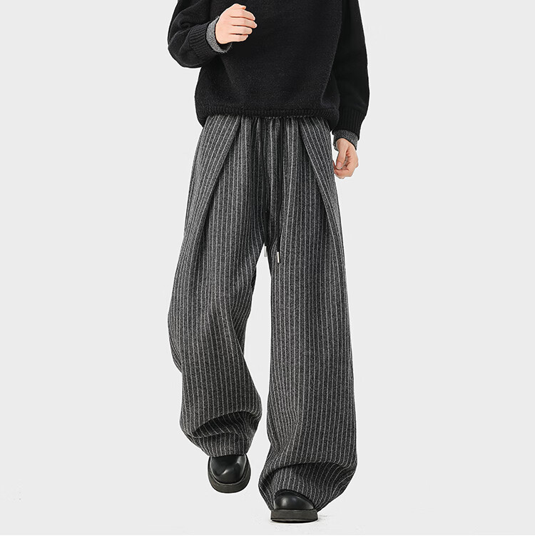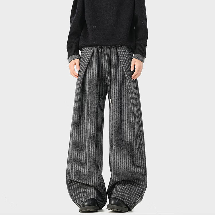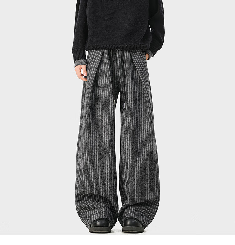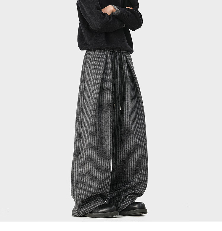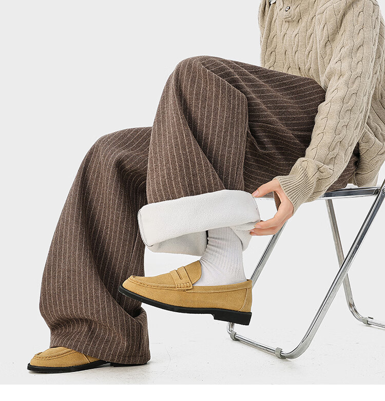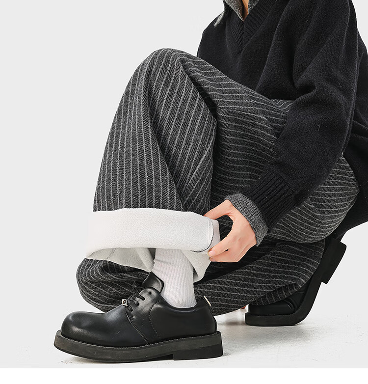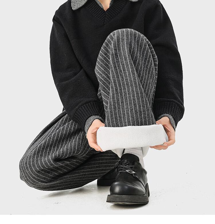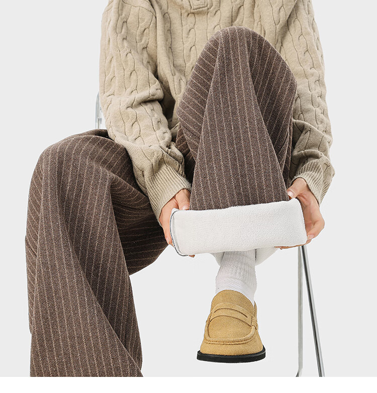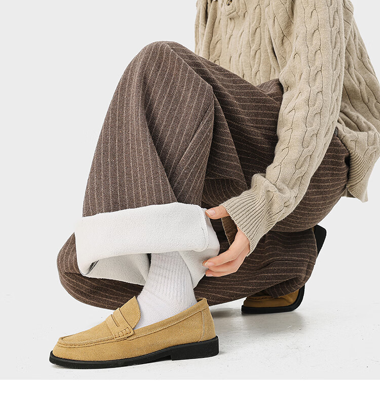NEW OR MODE复古加绒加厚休闲裤男士冬季新款保暖宽松高级感百搭美式直筒裤子 黑色 S 【建议80-95斤】