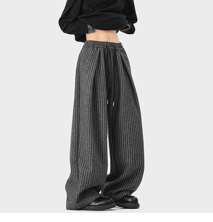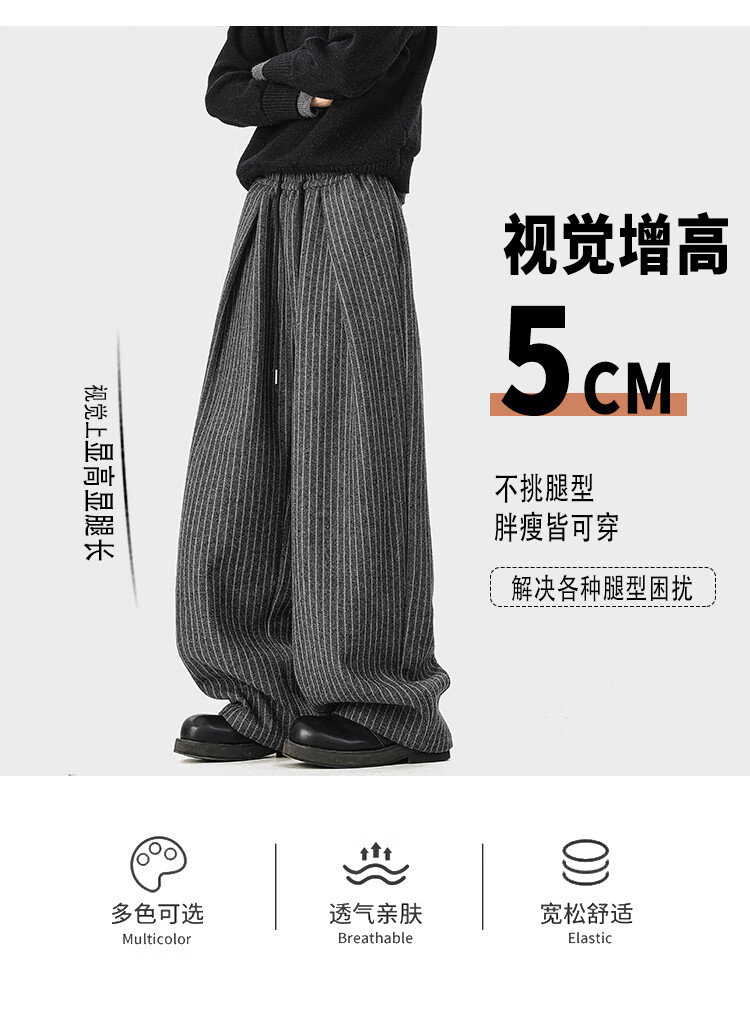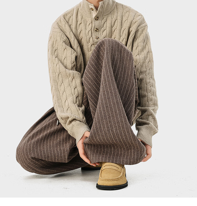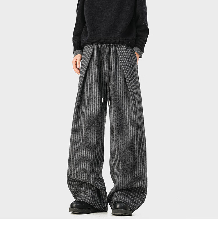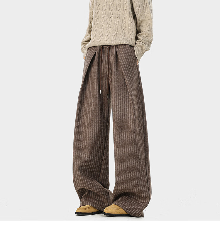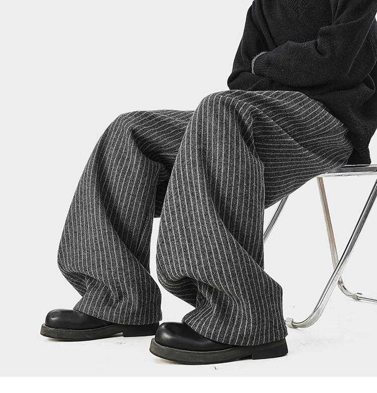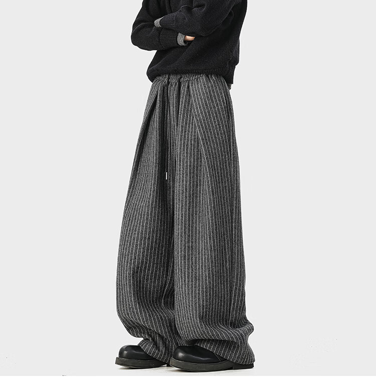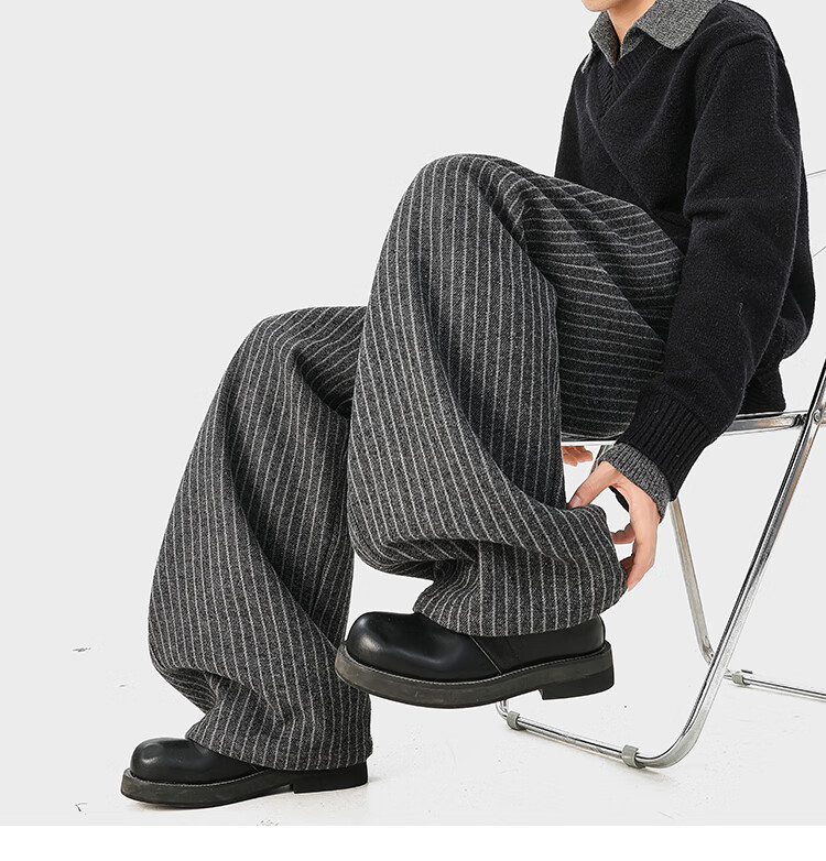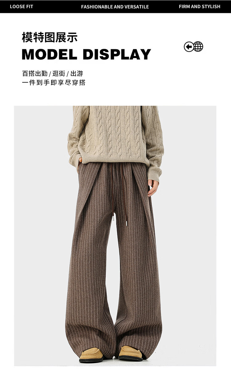 NEW OR MODE复古加绒加厚休闲裤男士冬季新款保暖宽松高级感百搭美式直筒裤子 黑色 S 【建议80-95斤】