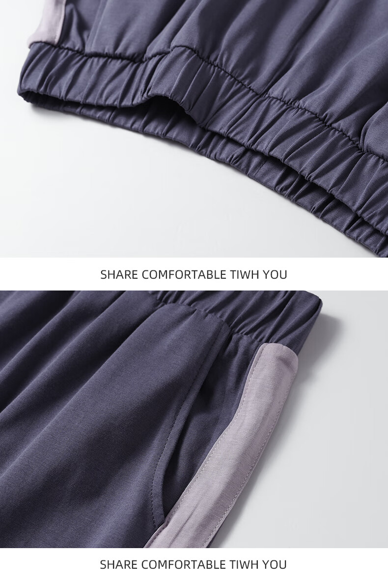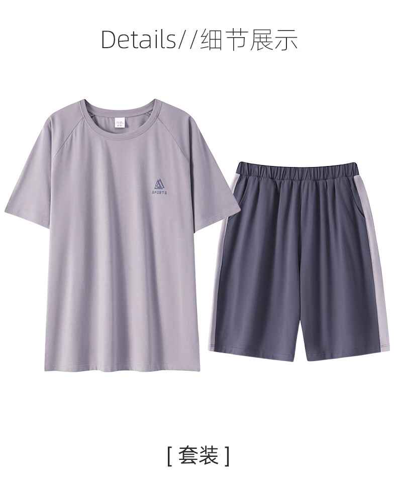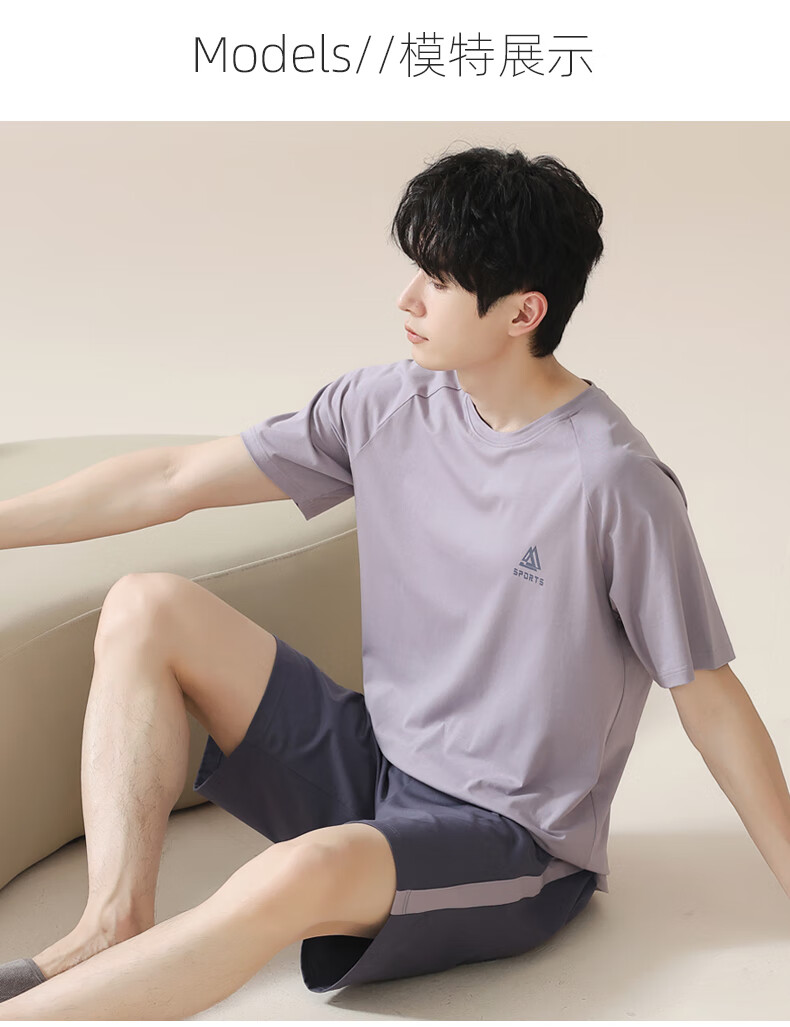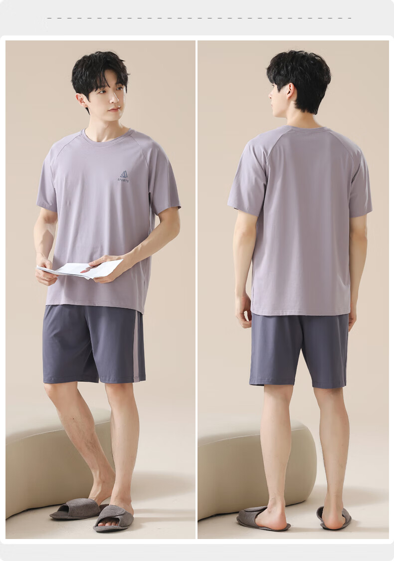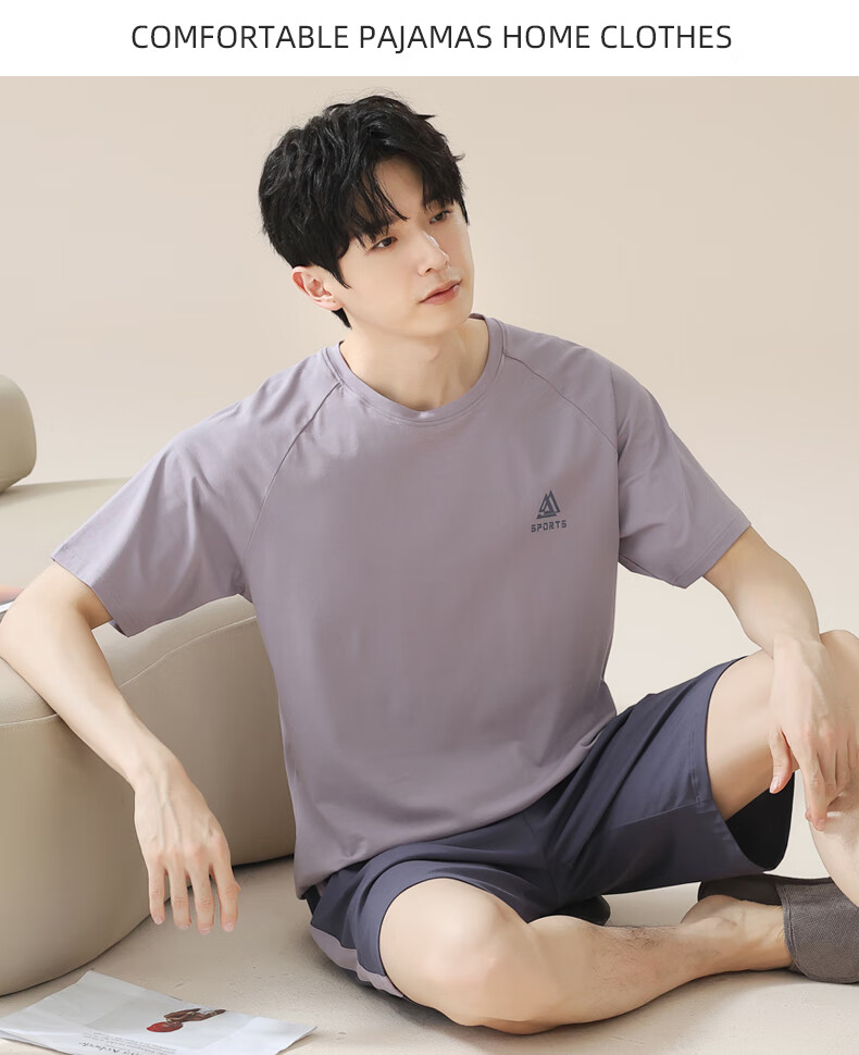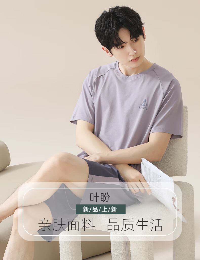 叶盼(yepan)男士睡衣男青少年纯棉2026新款春夏季短袖短裤套头休闲家居服套装 72101-紫灰 L (170) :建议100-120斤穿着
