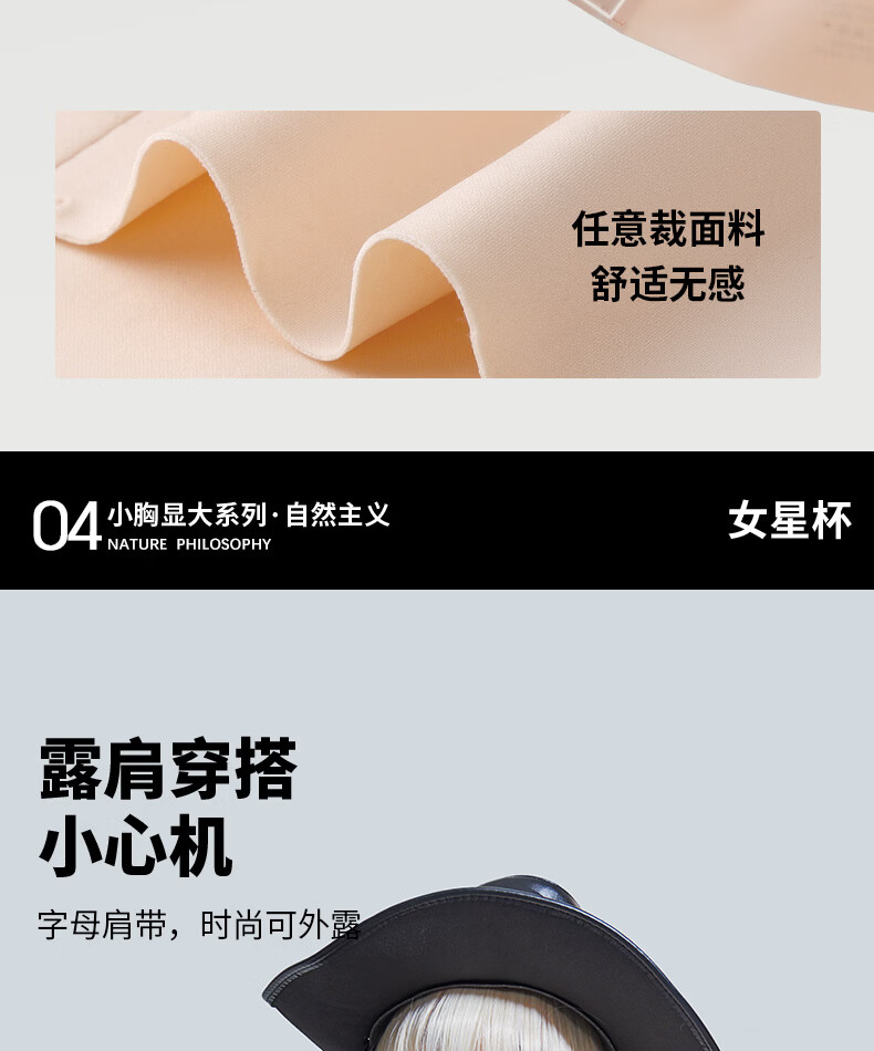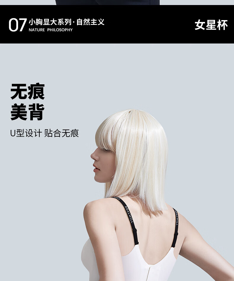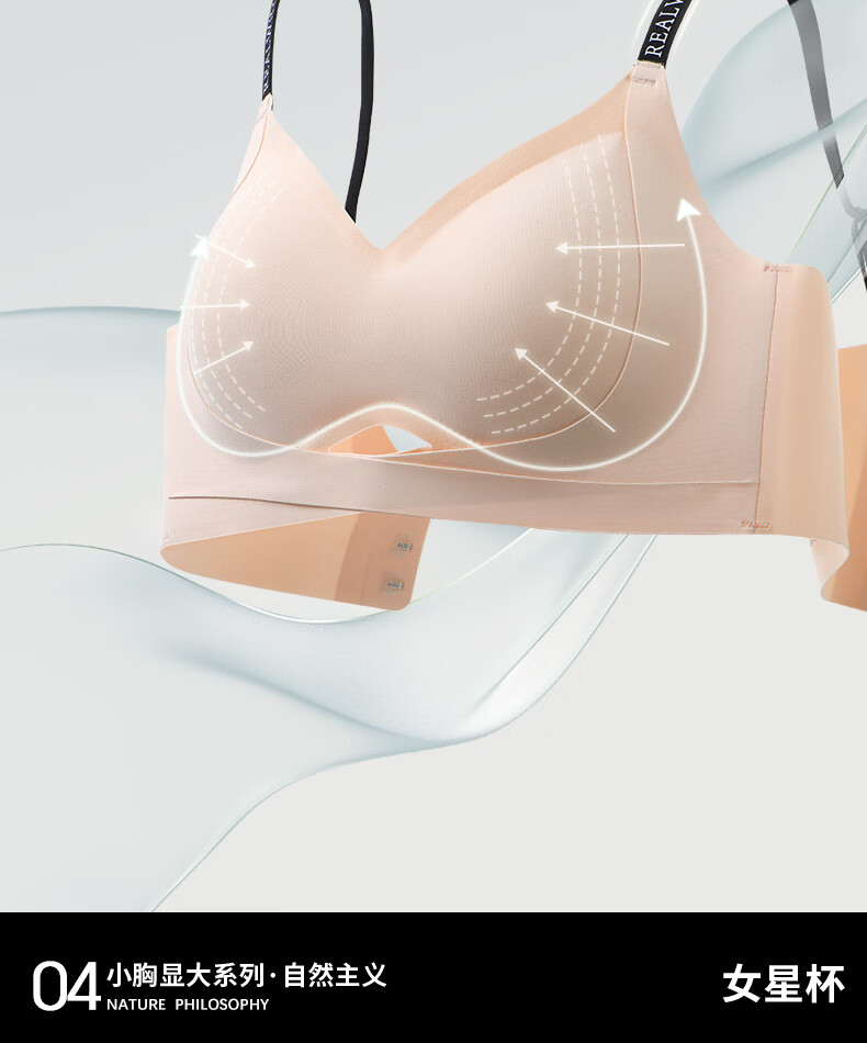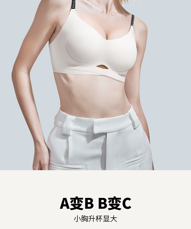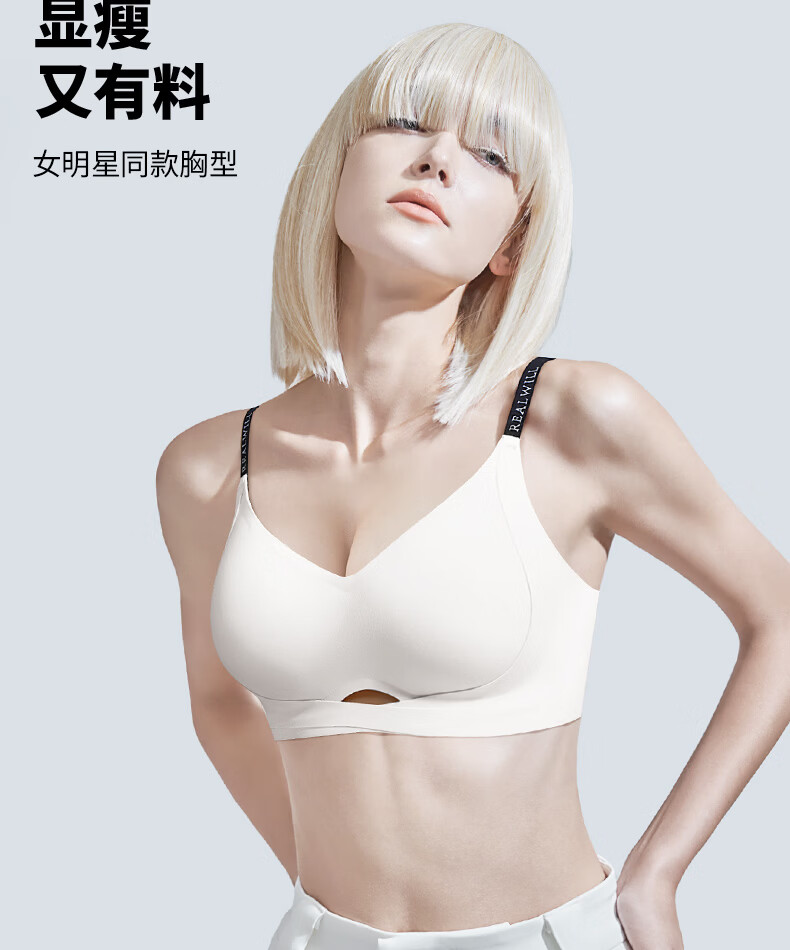 润微内衣女小胸聚拢显大字母肩带无痕收副乳防下垂文胸罩平胸专用 小蜜桃(字母肩带)质感白 XS (70ABC)
