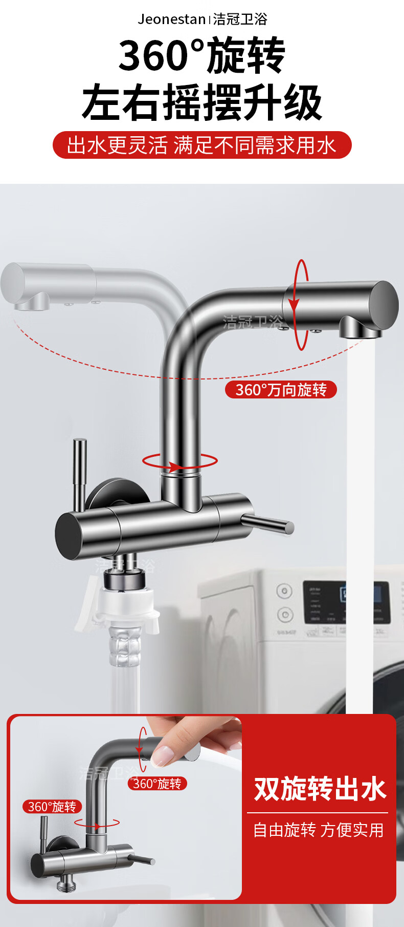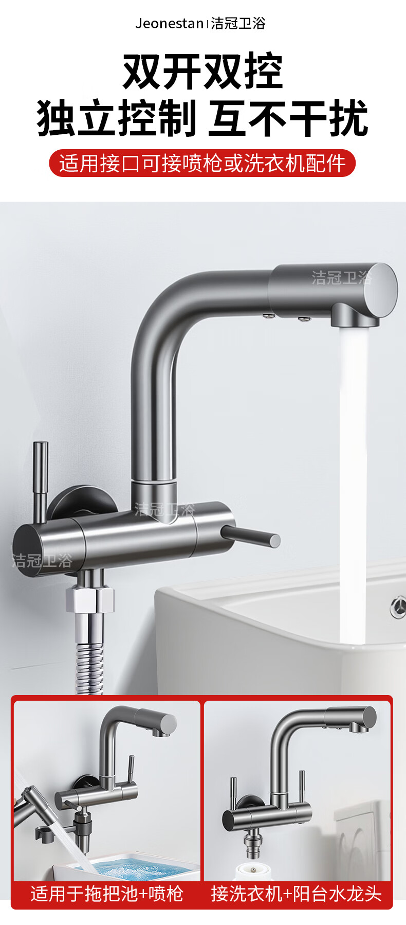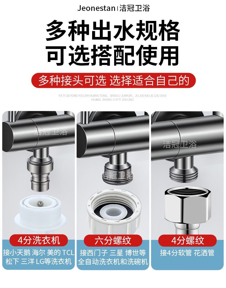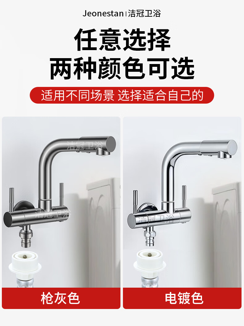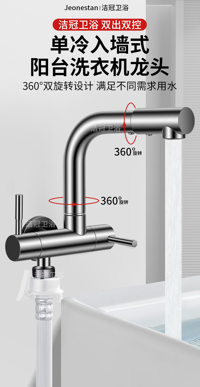 Jeonestan双出水一进二出水龙头家用洗衣机拖把池两用一分二接头加长入墙式 【电镀款】双旋转拖把池+4分螺纹