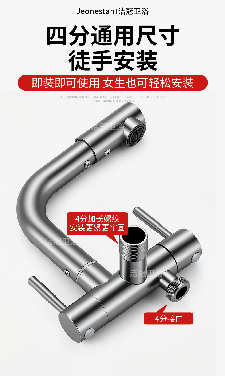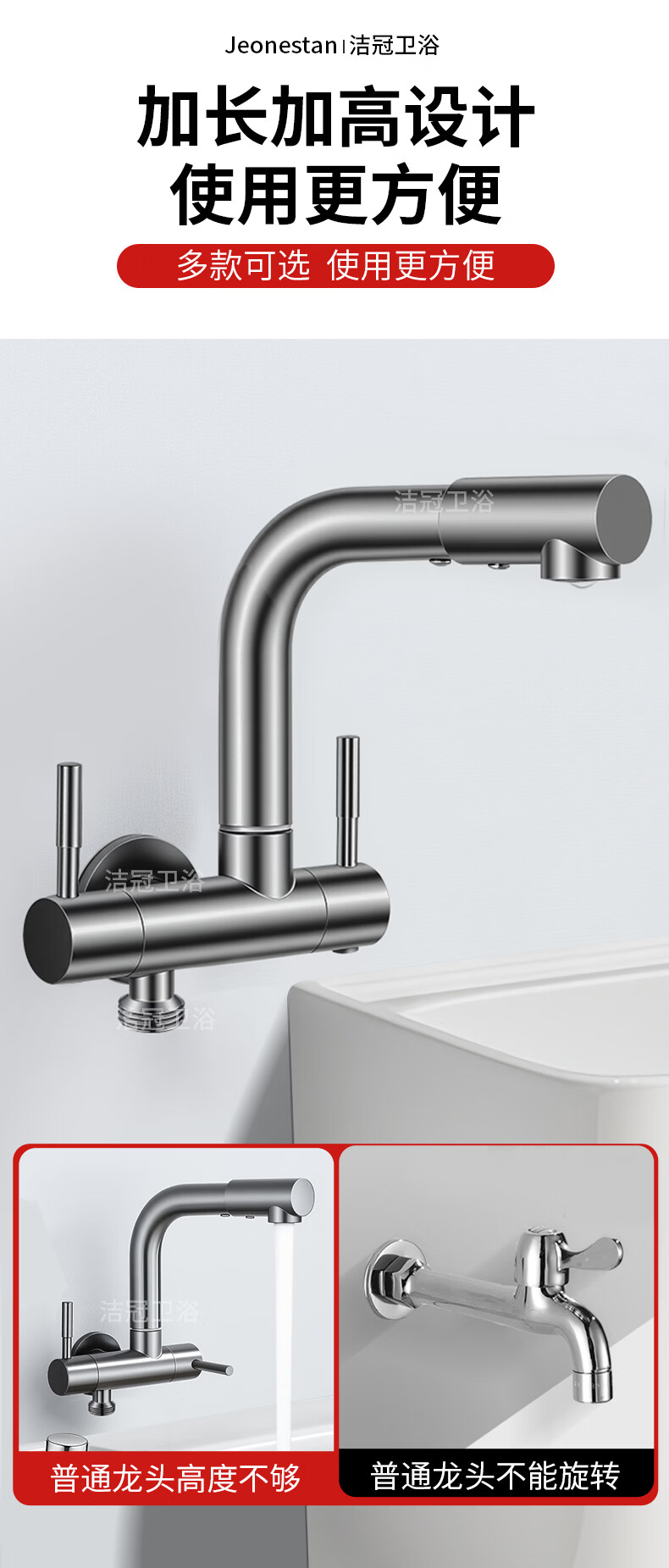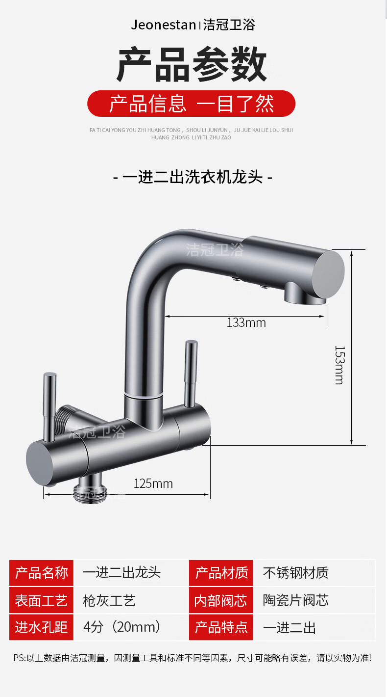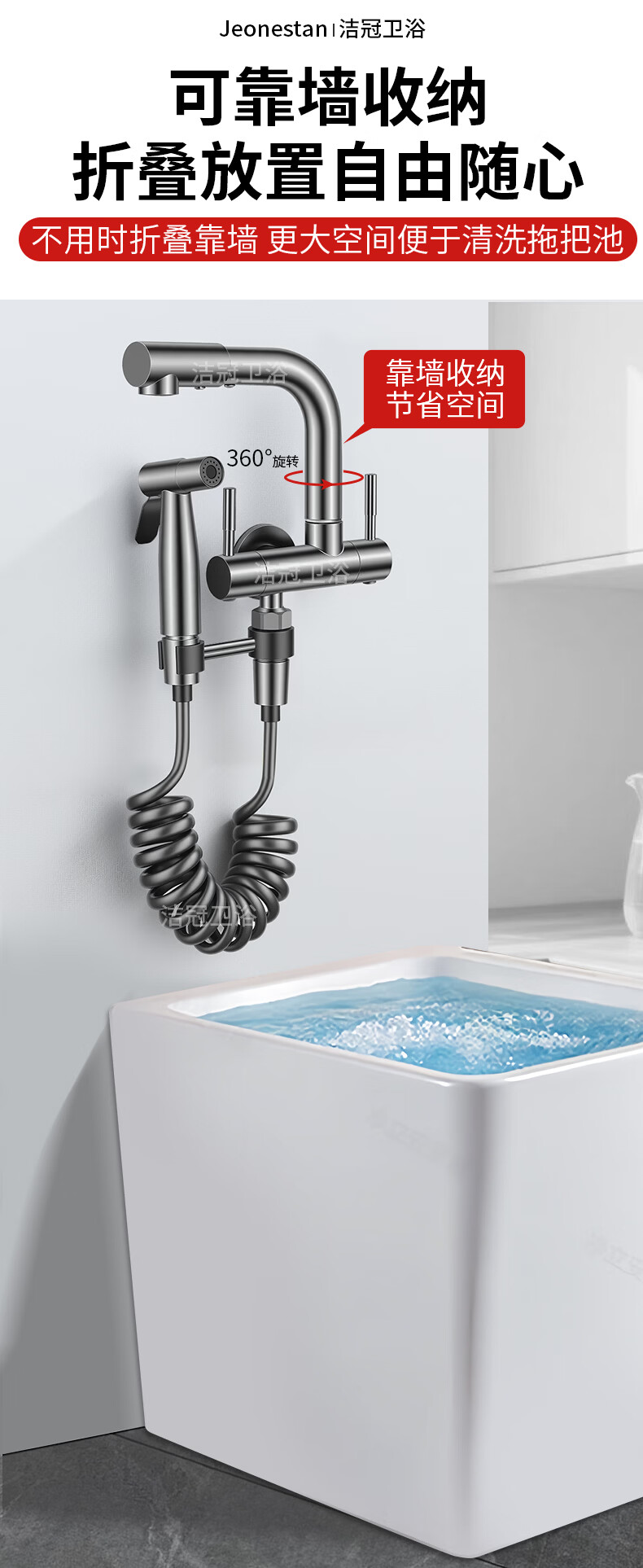 Jeonestan双出水一进二出水龙头家用洗衣机拖把池两用一分二接头加长入墙式 【电镀款】双旋转拖把池+4分螺纹