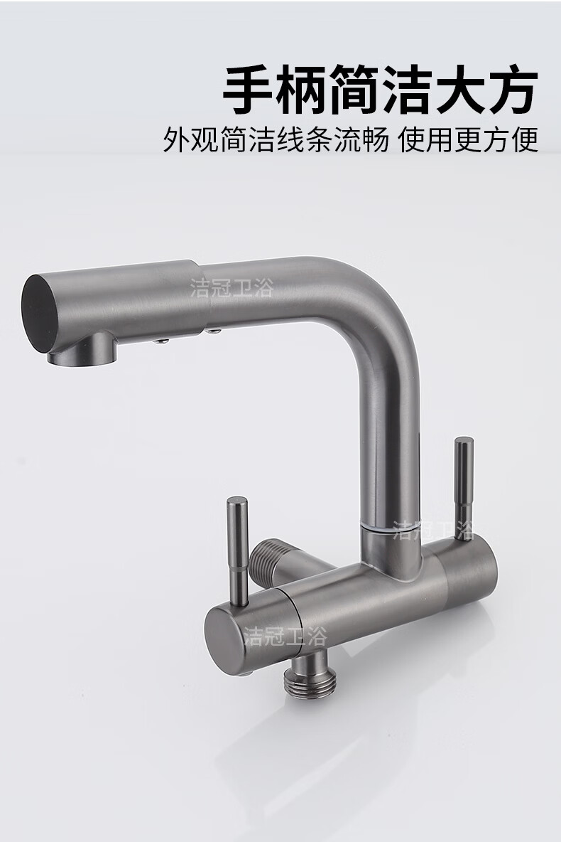 洛曲德国厨房冷热水龙头入墙式洗衣池阳台洗衣池全铜主体菜盆混水阀 双档出水龙头带机械臂
