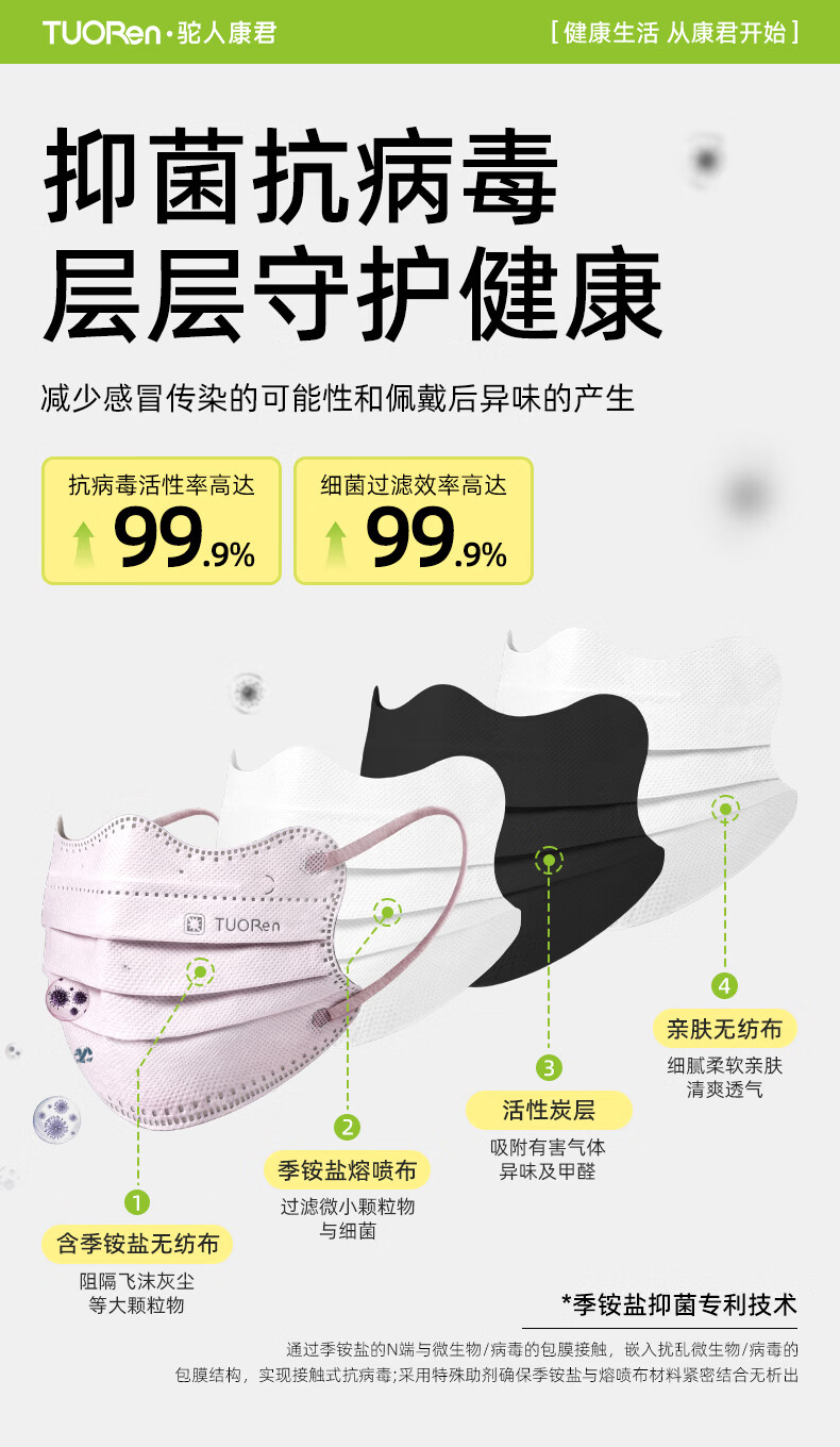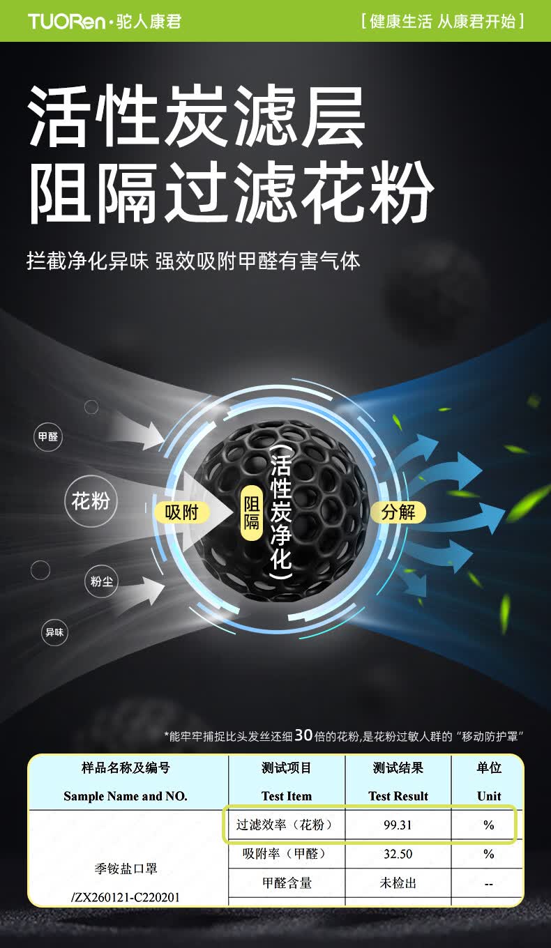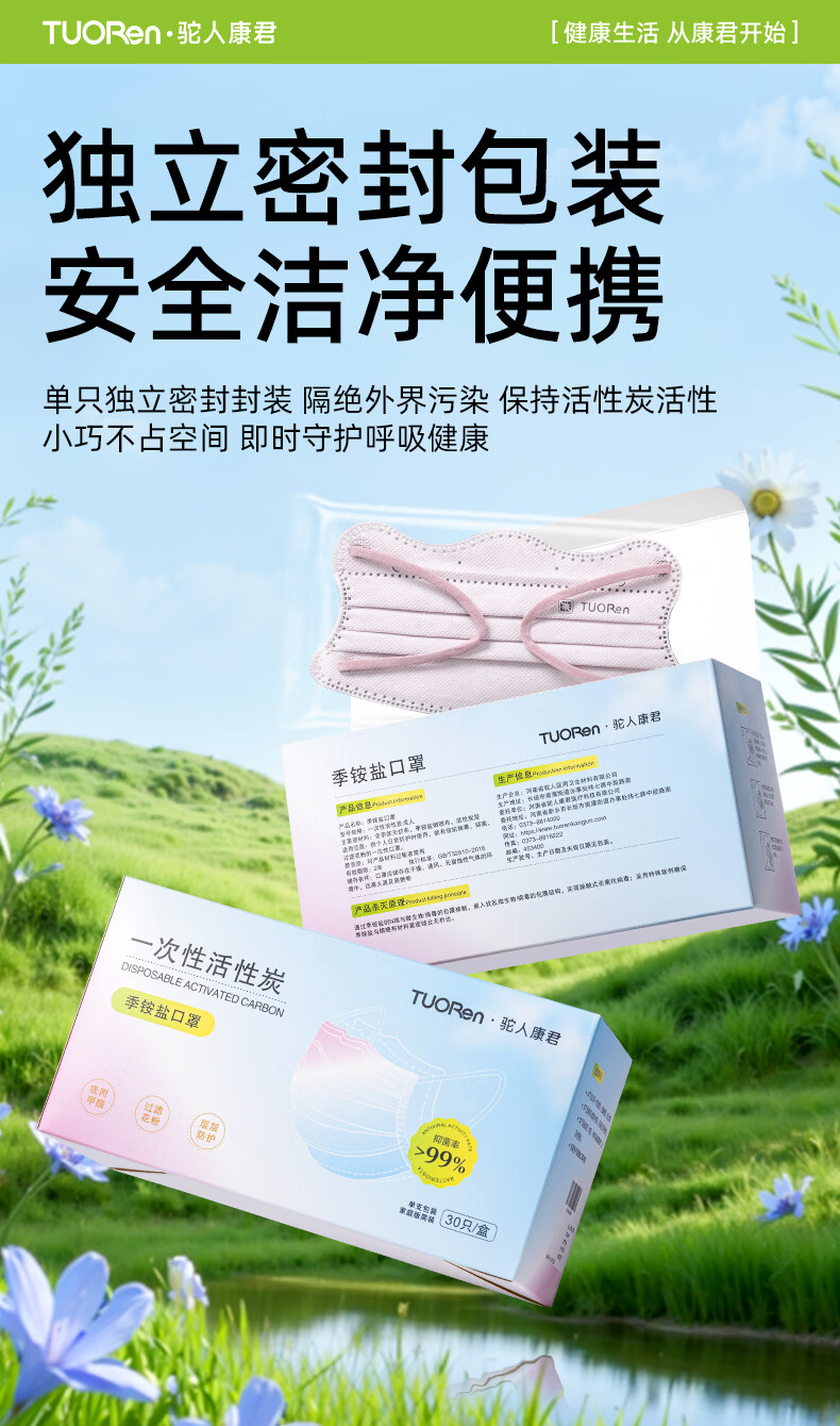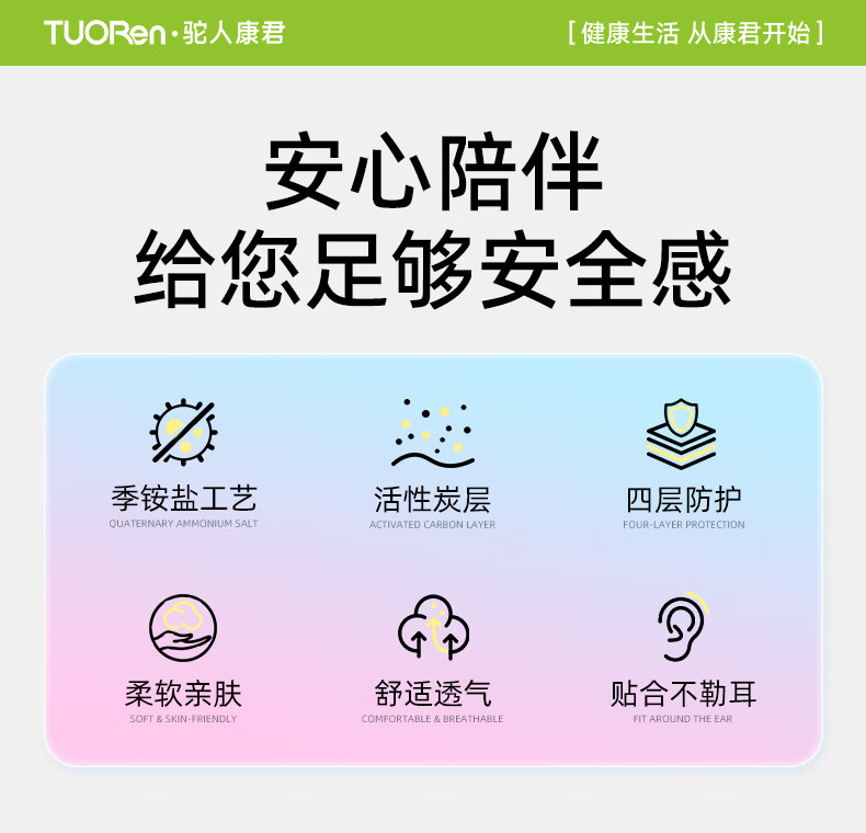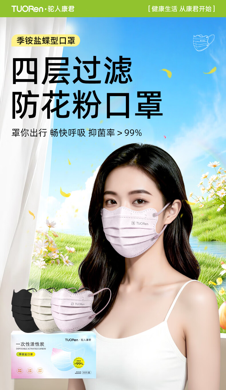 驼人康君驼人季铵盐活性炭口罩一次性2026新款春季防花粉尘甲醛孕妇可用 卡其色黄耳带【买1盒送1盒共60支】