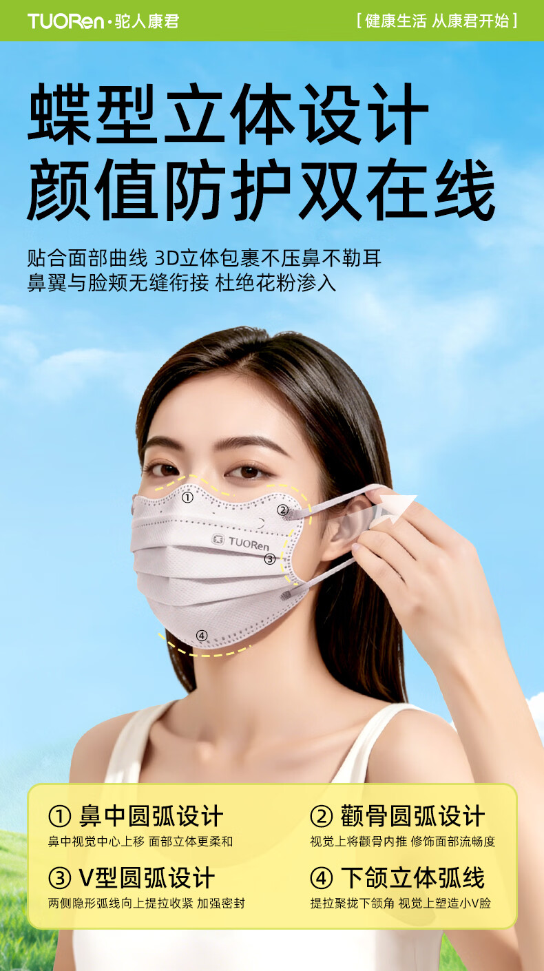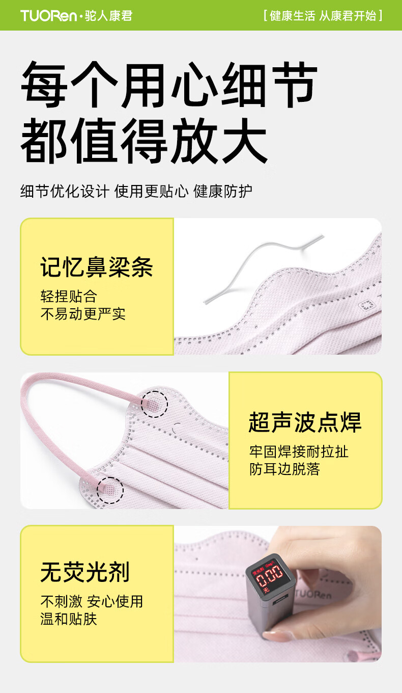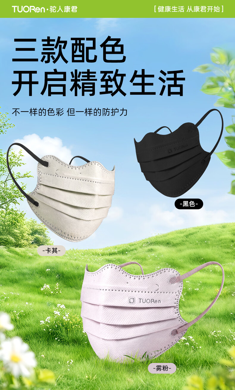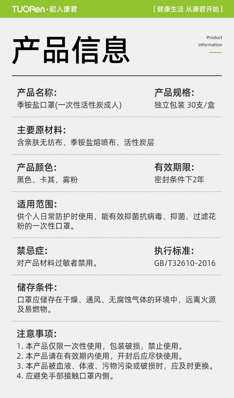 驼人康君驼人季铵盐活性炭口罩一次性2026新款春季防花粉尘甲醛孕妇可用 卡其色黄耳带【买1盒送1盒共60支】