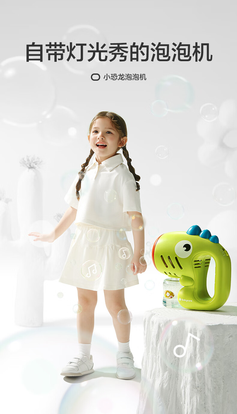 babycare小恐龙泡泡机儿童手持电动网红玩具婴儿吹泡泡水男女孩-光电青