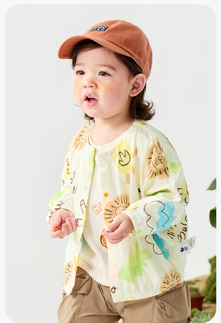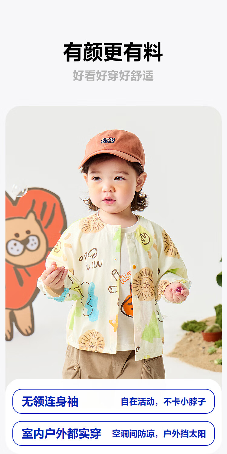 迷你巴拉男女童外套夏季婴儿轻薄透气防晒轻薄衬衫 奶白 130