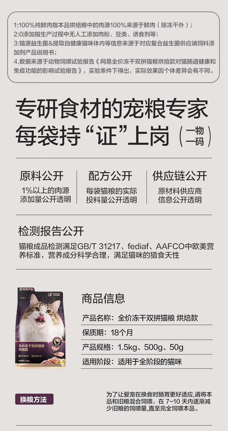 网易严选【梓渝好物】全价冻干双拼烘焙猫粮 成幼猫高鲜肉无谷护肠胃 【烘焙升级款】 1.5kg*1袋