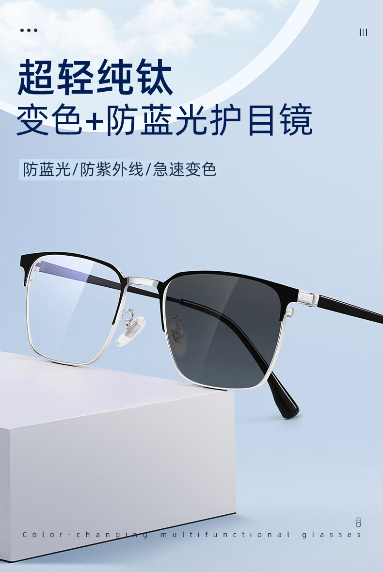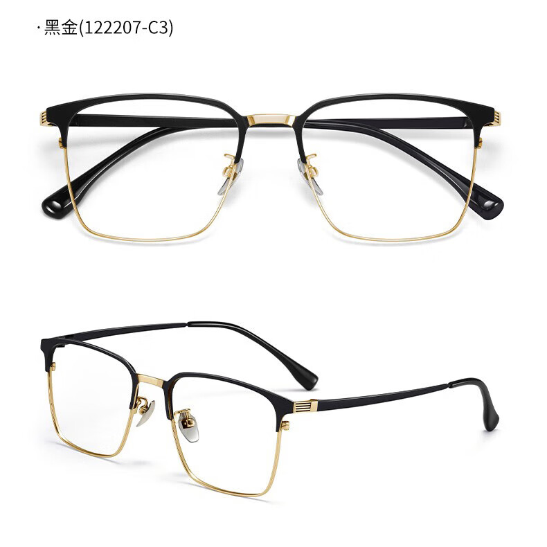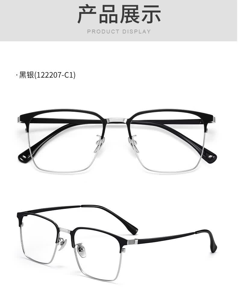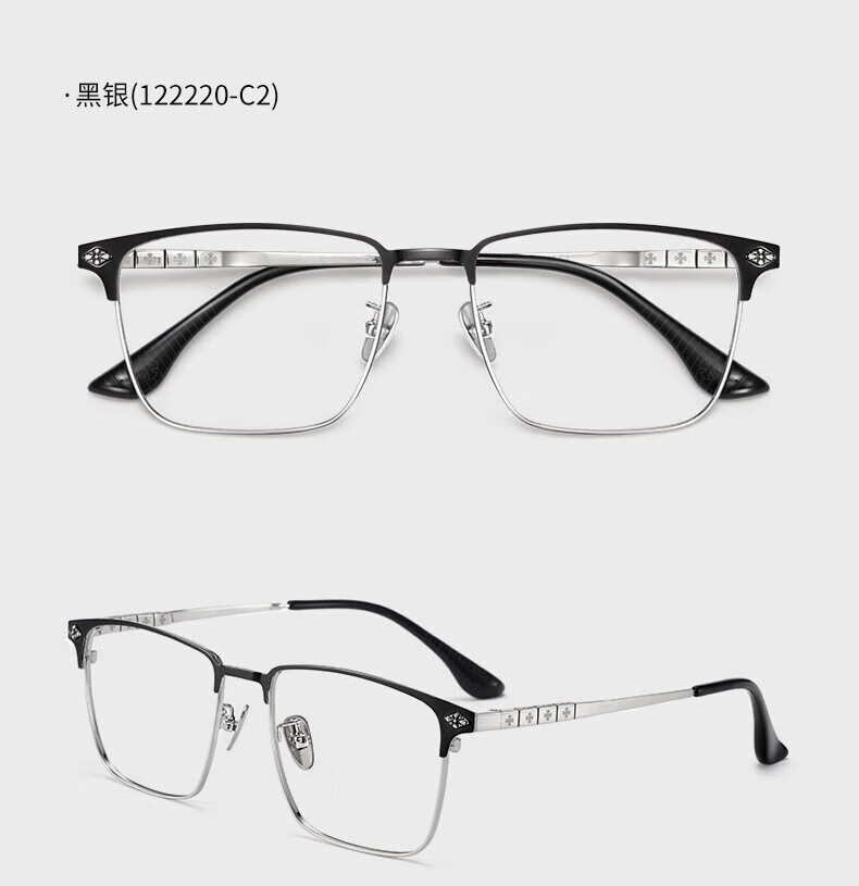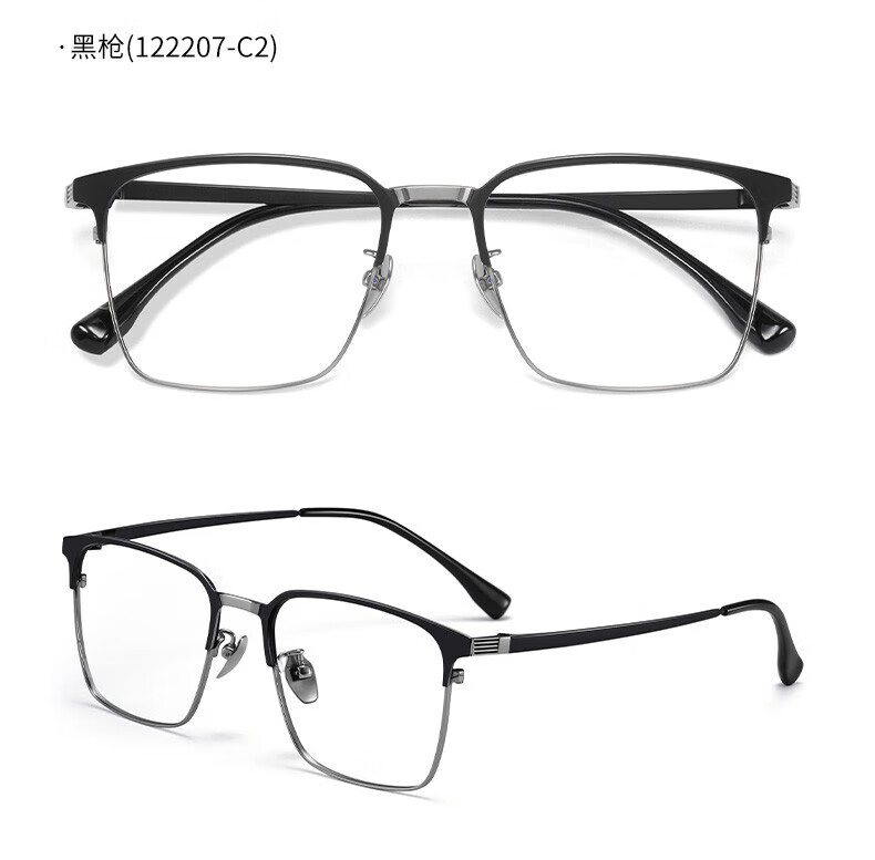 蔡司(ZEISS)镜片感光变色纯钛近视眼镜男款防蓝光辐射可配度数斯文半框眼镜架 122207 黑银(进口钛材) 配1.56变灰色镜片(0-400度)