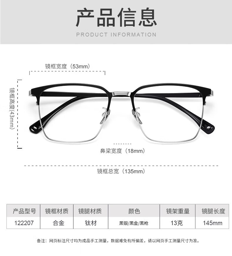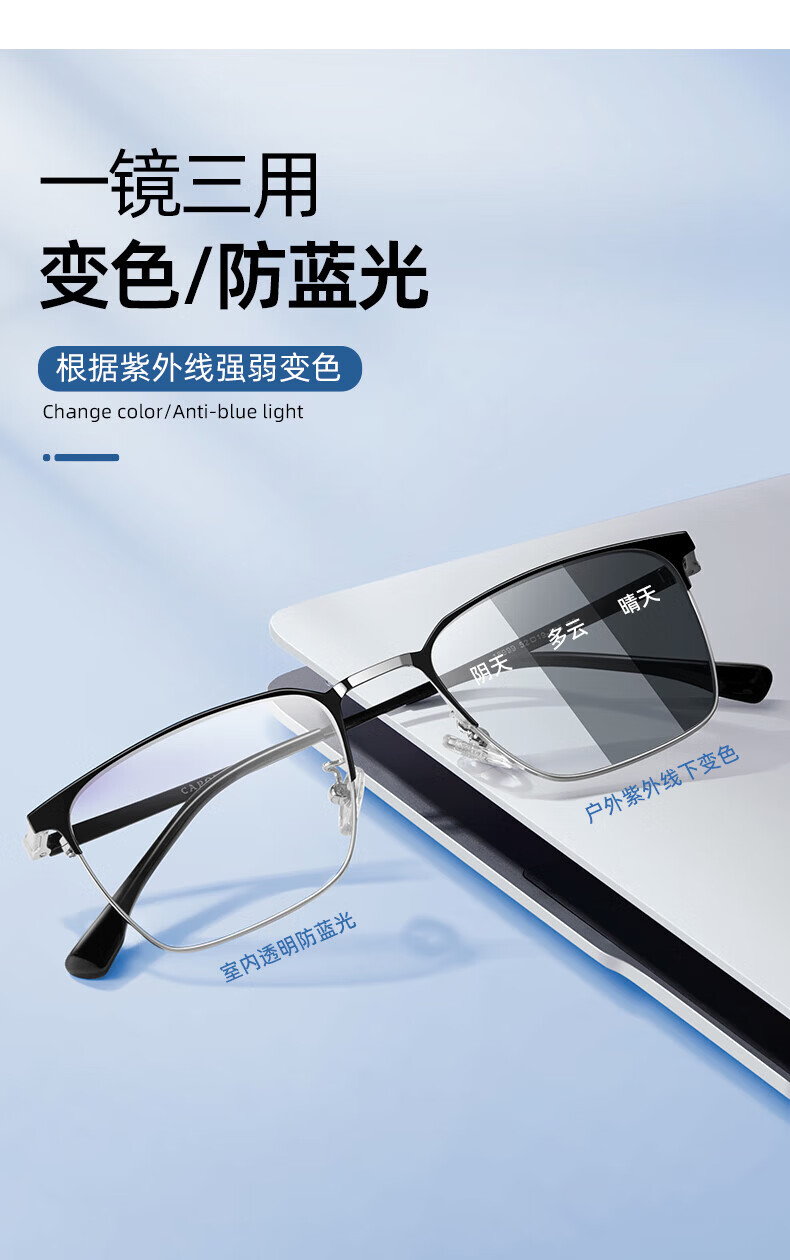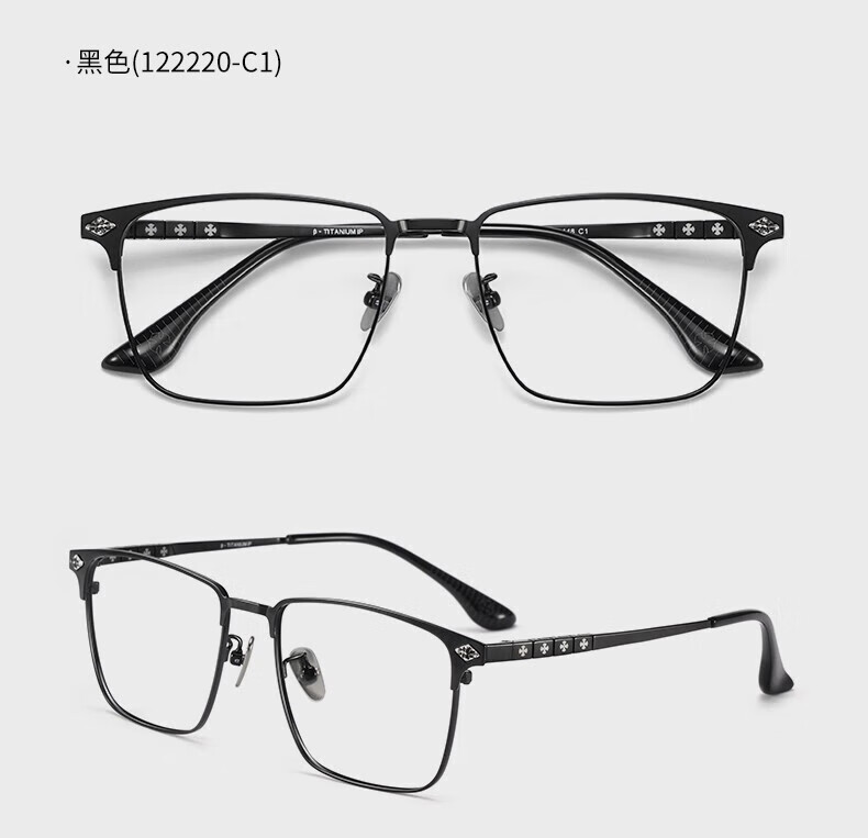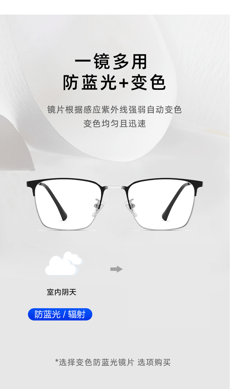 蔡司(ZEISS)镜片感光变色纯钛近视眼镜男款防蓝光辐射可配度数斯文半框眼镜架 122207 黑银(进口钛材) 配1.56变灰色镜片(0-400度)
