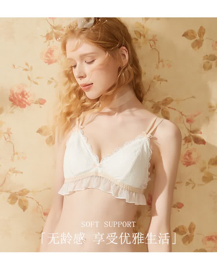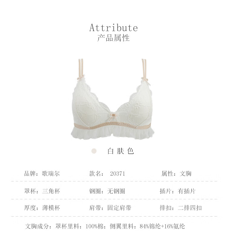 Gainreel歌瑞尔舒适透气性感蕾丝内衣女无钢圈法式三角杯柔软支撑上托减龄文胸罩 雨林绿 200193A 70A