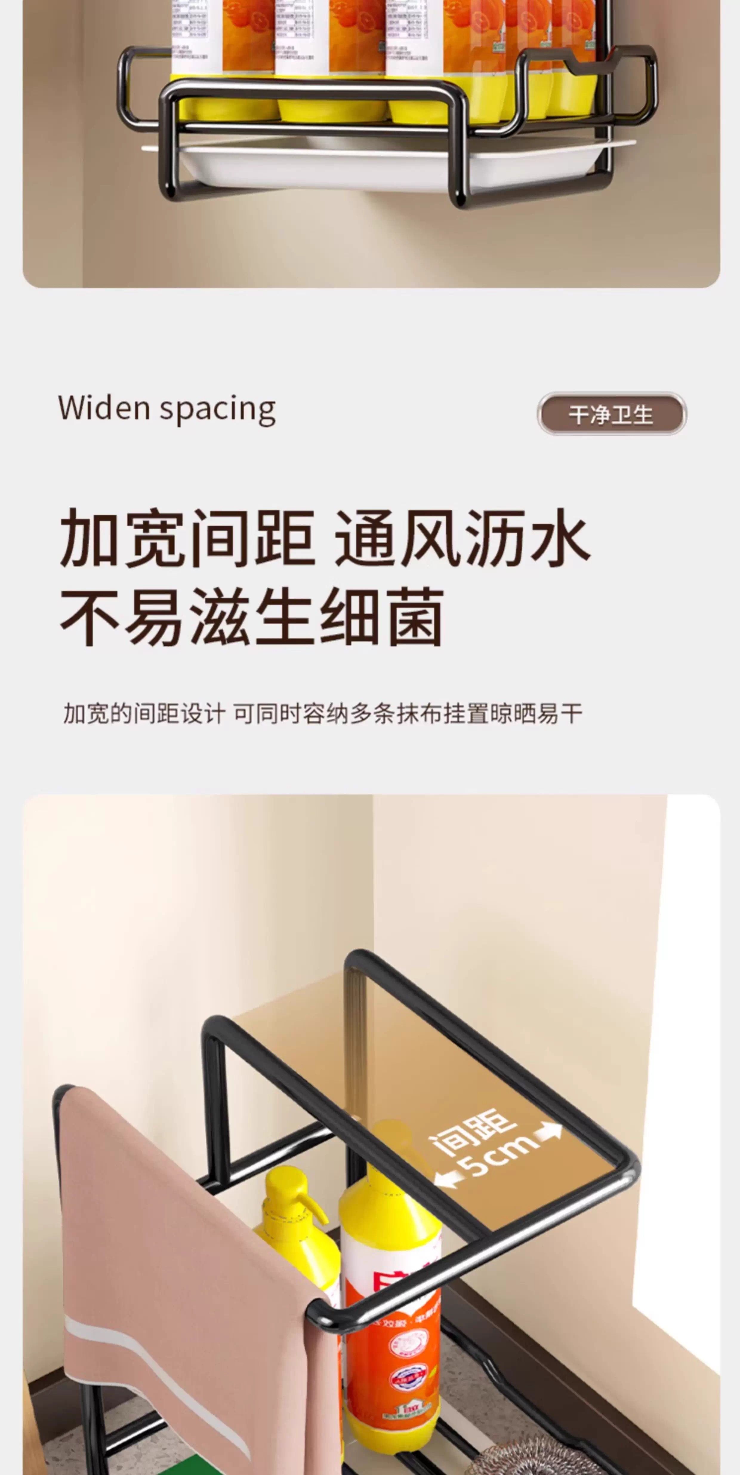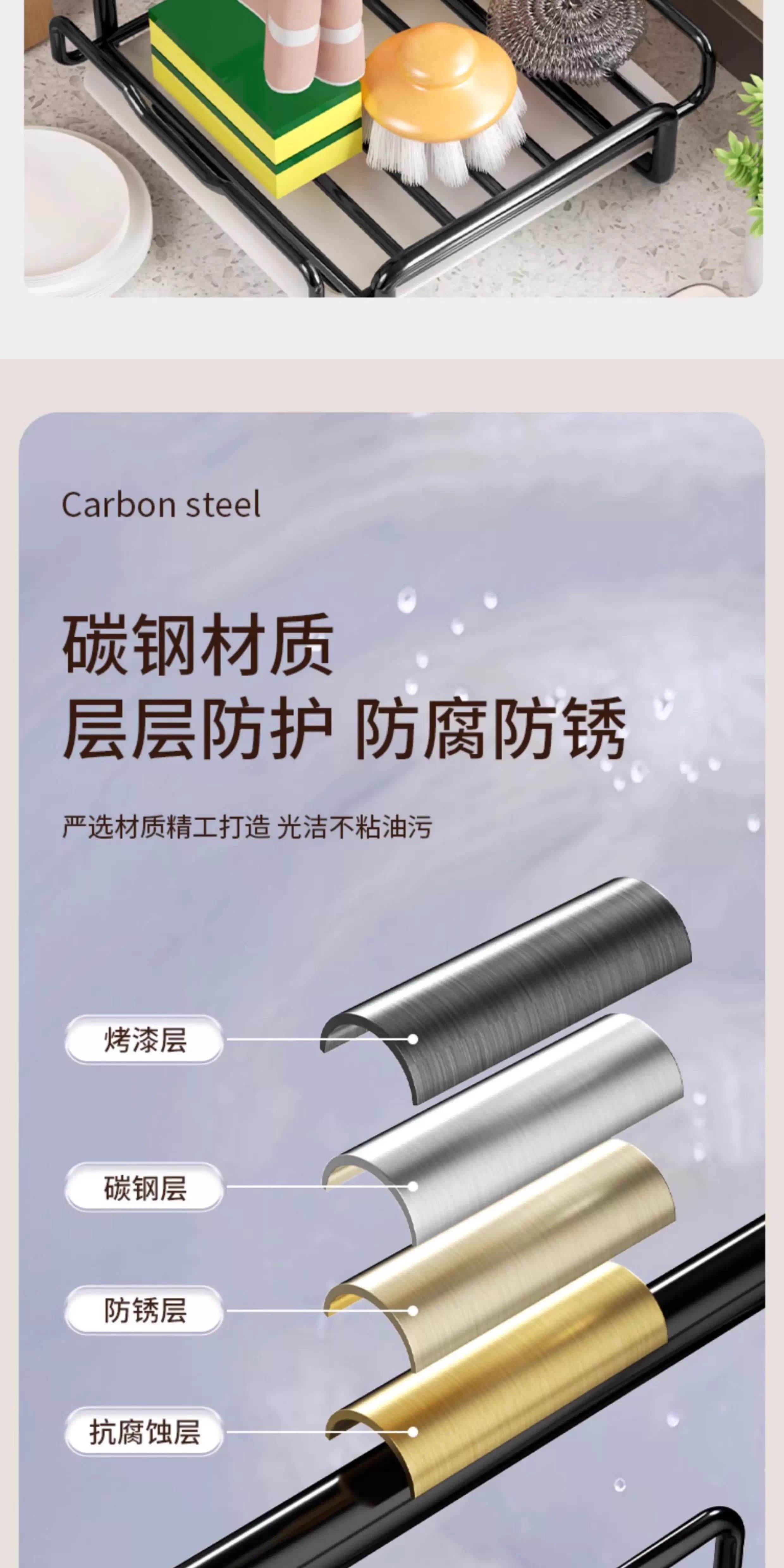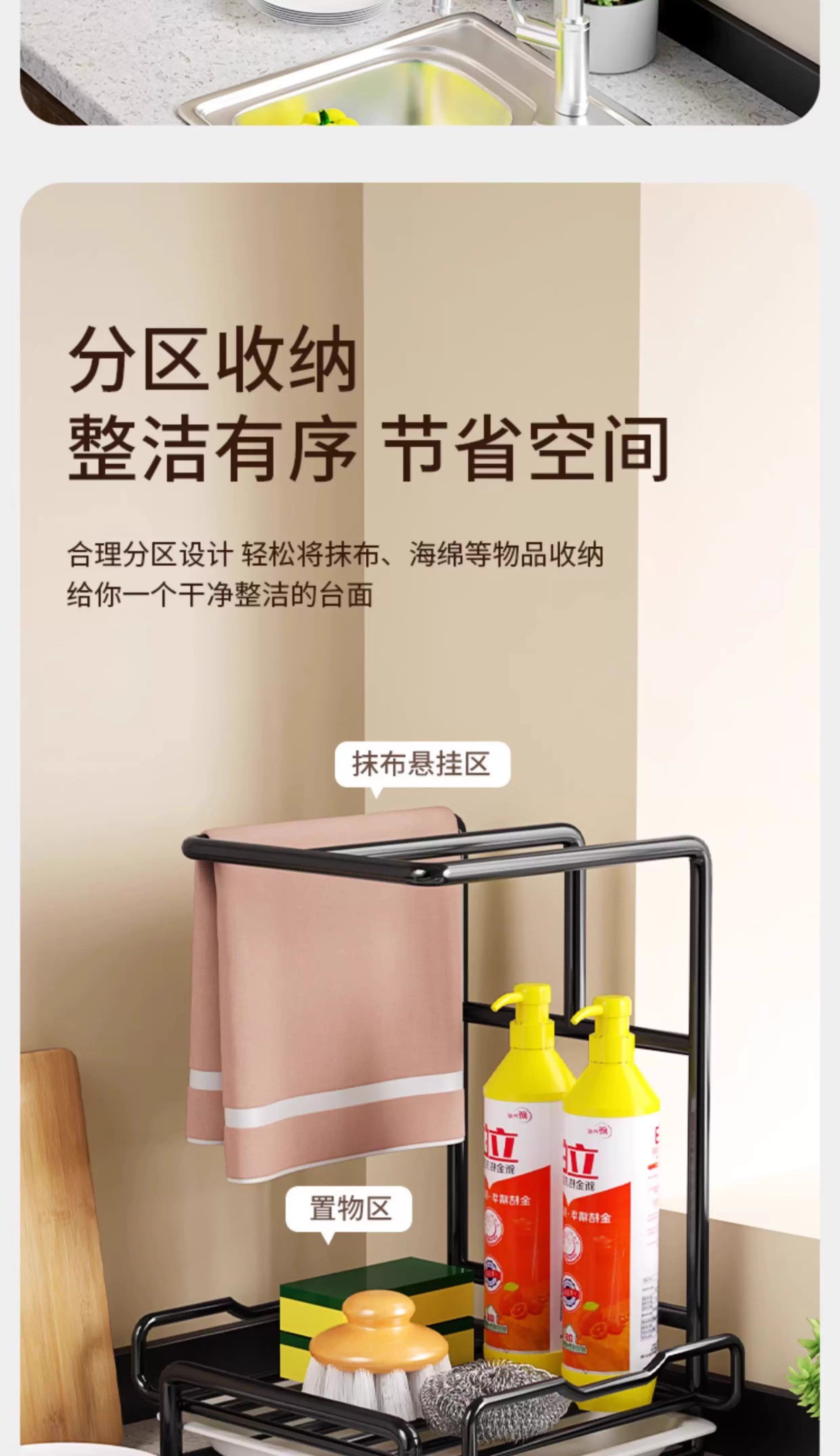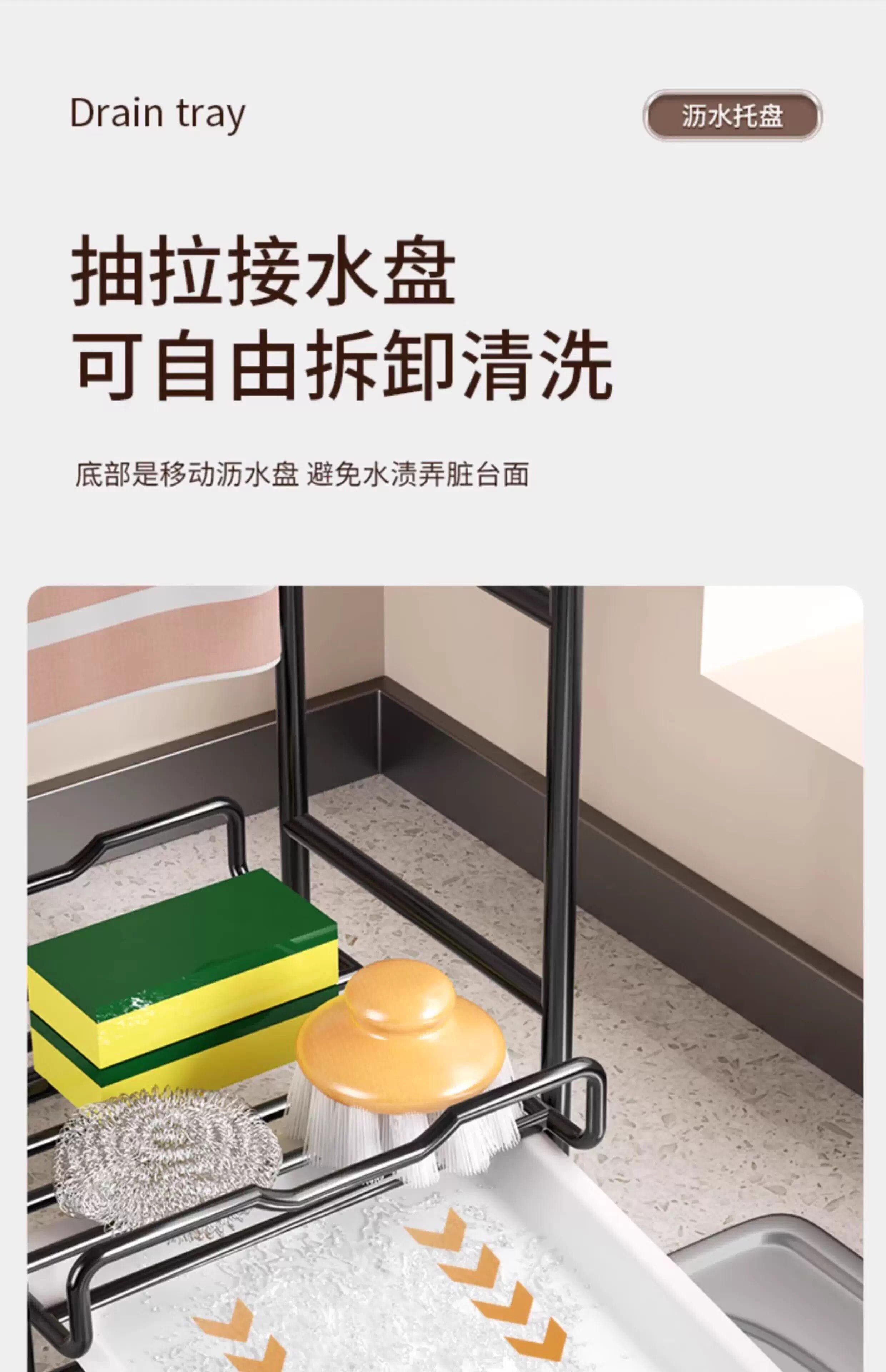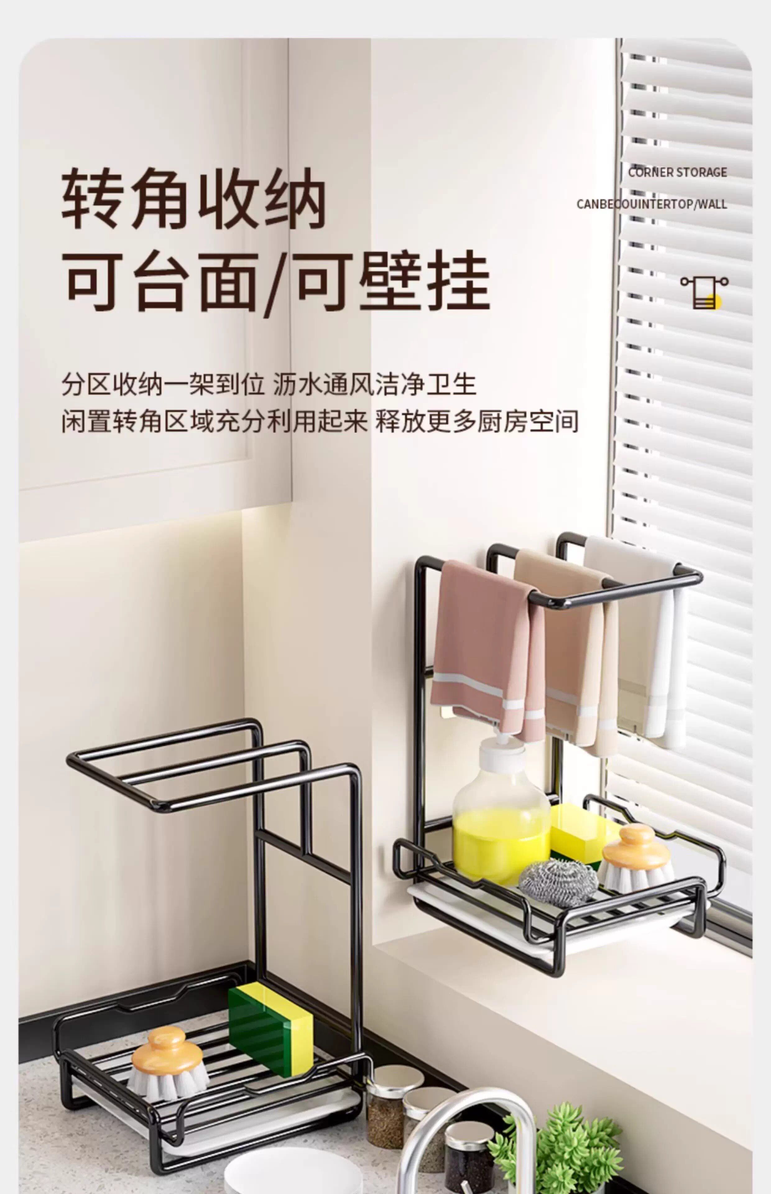 微利厨房置物架抹布收纳沥水架免打孔家用调料架子水龙头水槽台面 升级款深邃黑[沥水盘+免钉贴]加