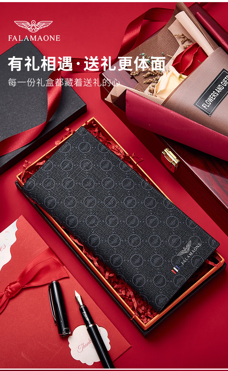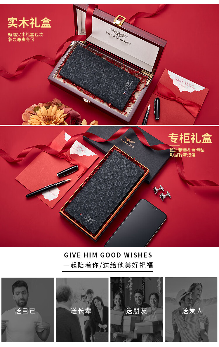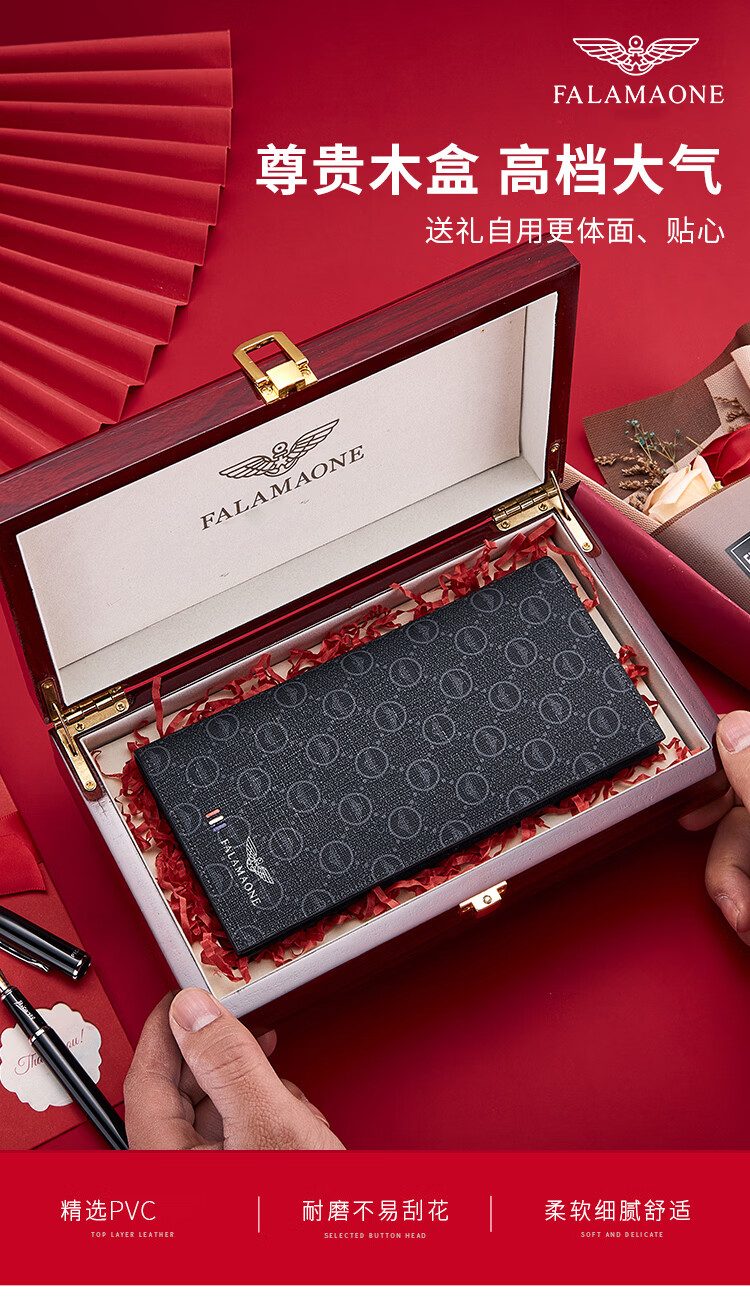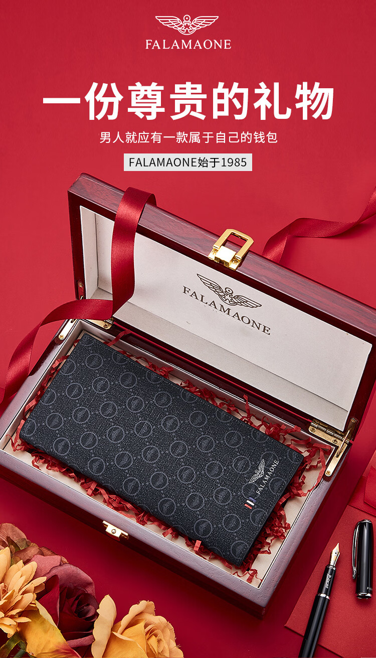 FALAMAONE轻奢男士钱包长款礼盒父亲节礼物送爸爸送男友老公 长款【高档实木礼盒】