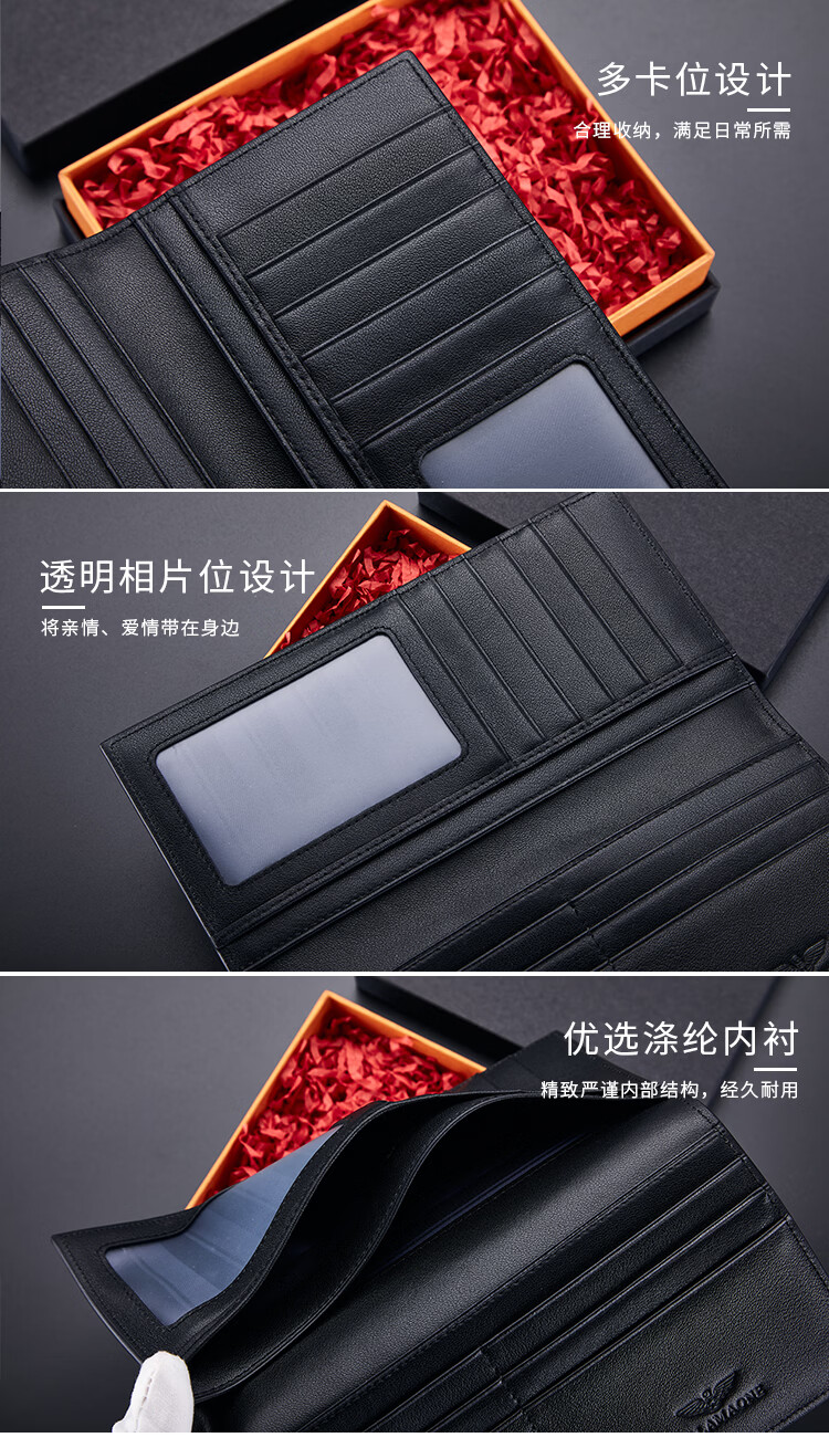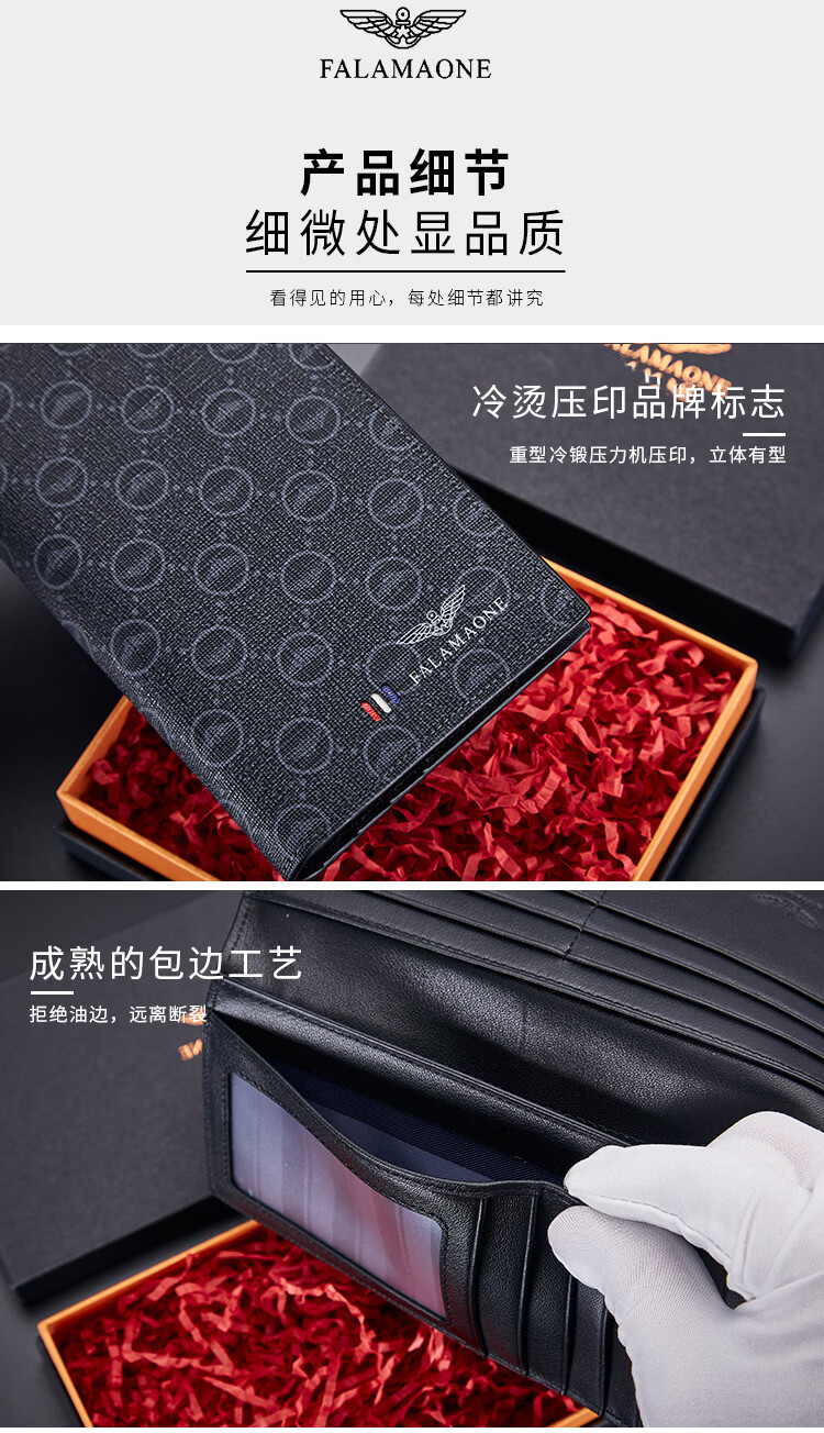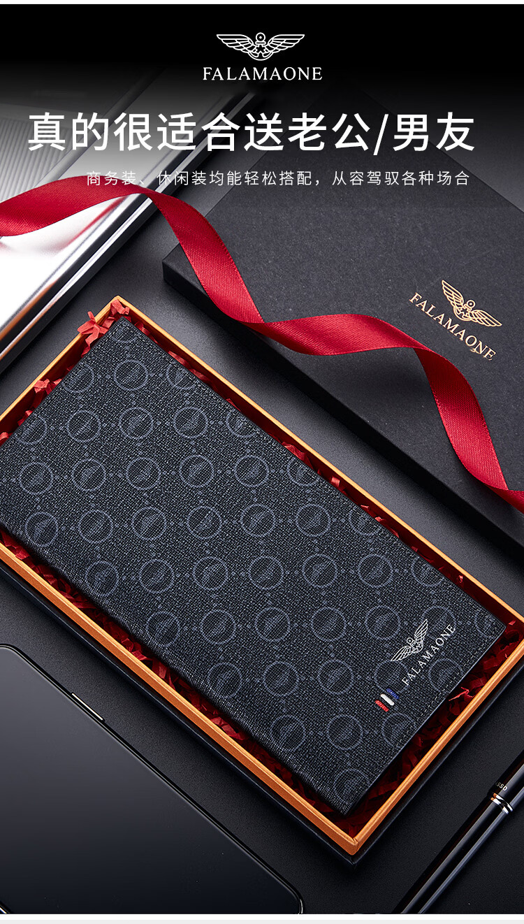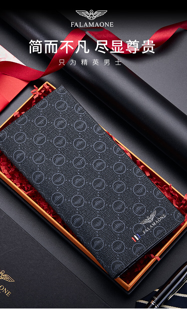 FALAMAONE轻奢男士钱包长款礼盒父亲节礼物送爸爸送男友老公 长款【高档实木礼盒】
