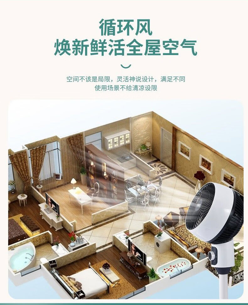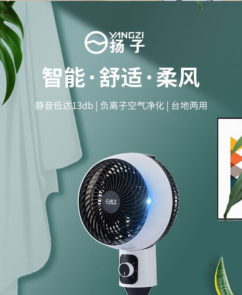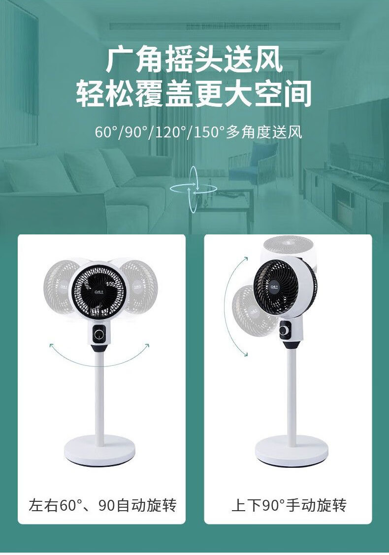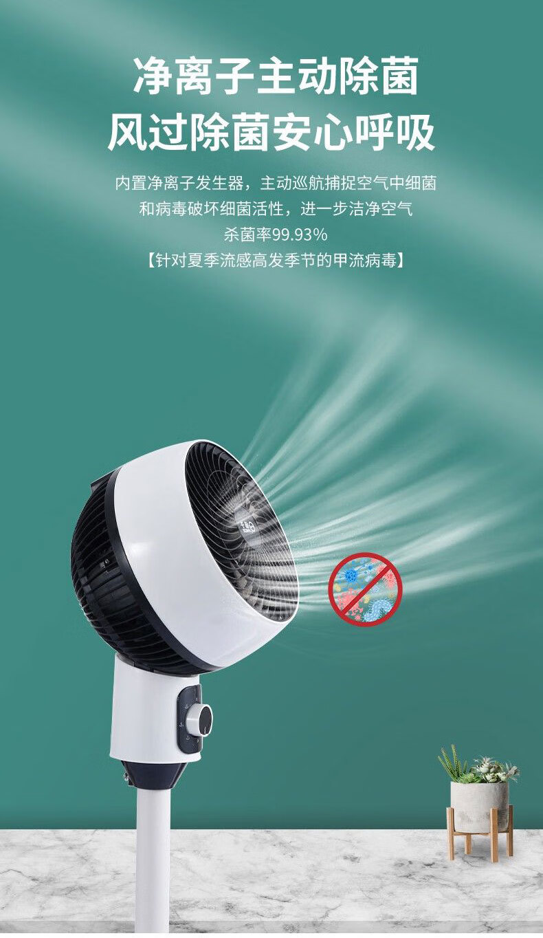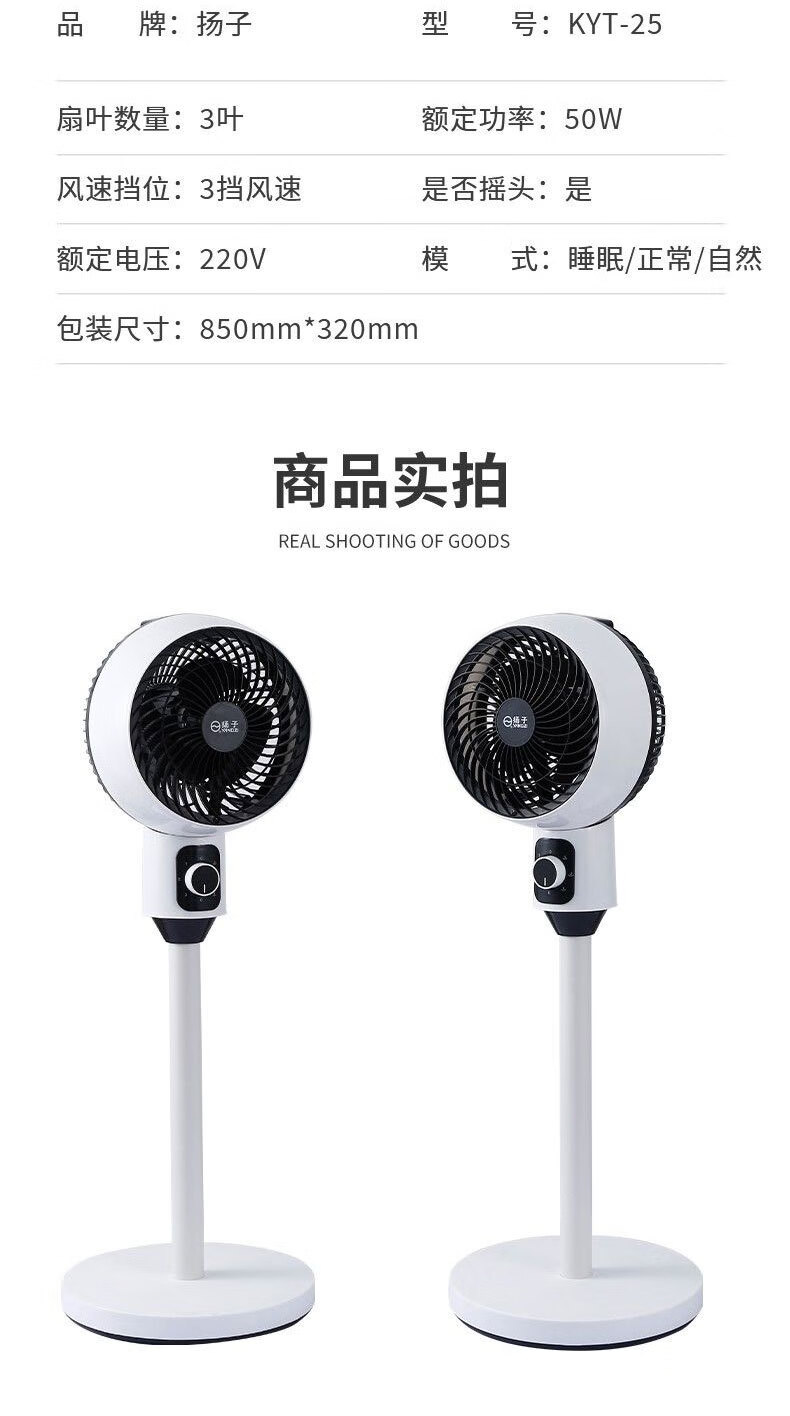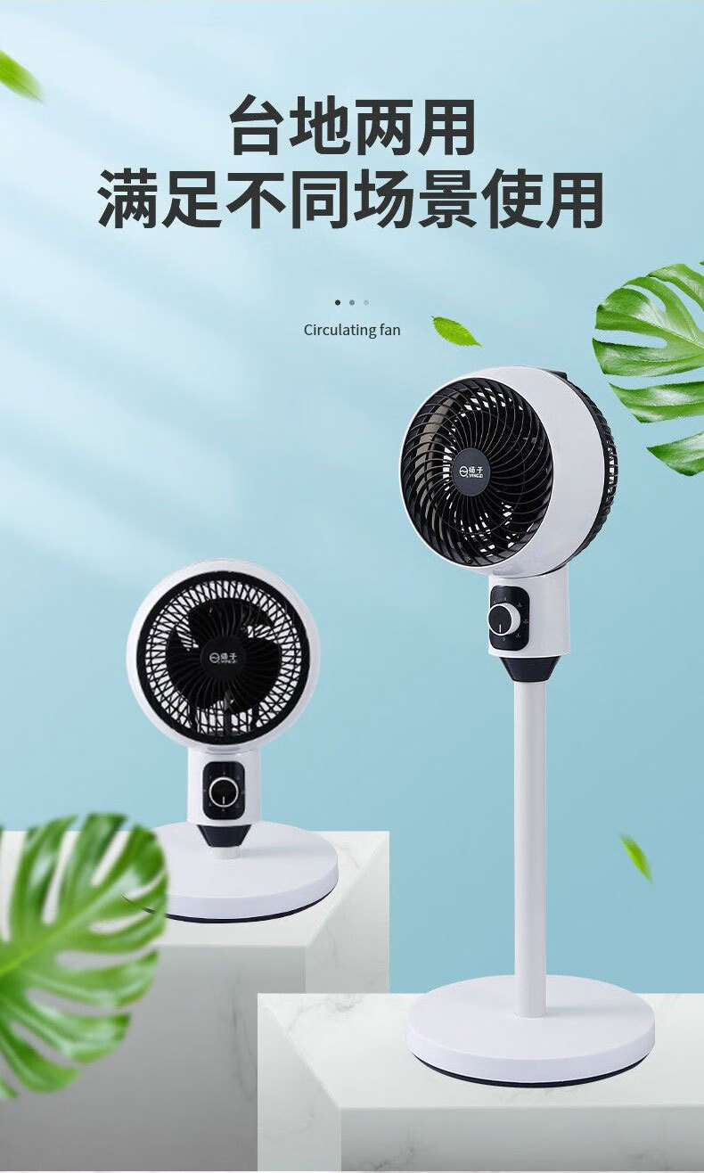 诗美辰新款电风扇家用大风力风扇落地式立式静音节能遥控卧室摇头风扇 扬子空气循环扇【三档风力+左右摇头+台立两用】圆头