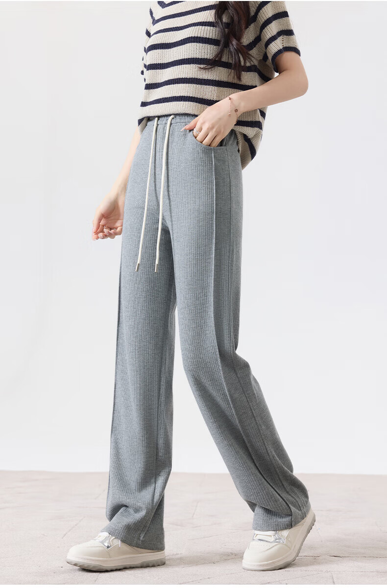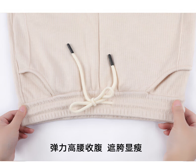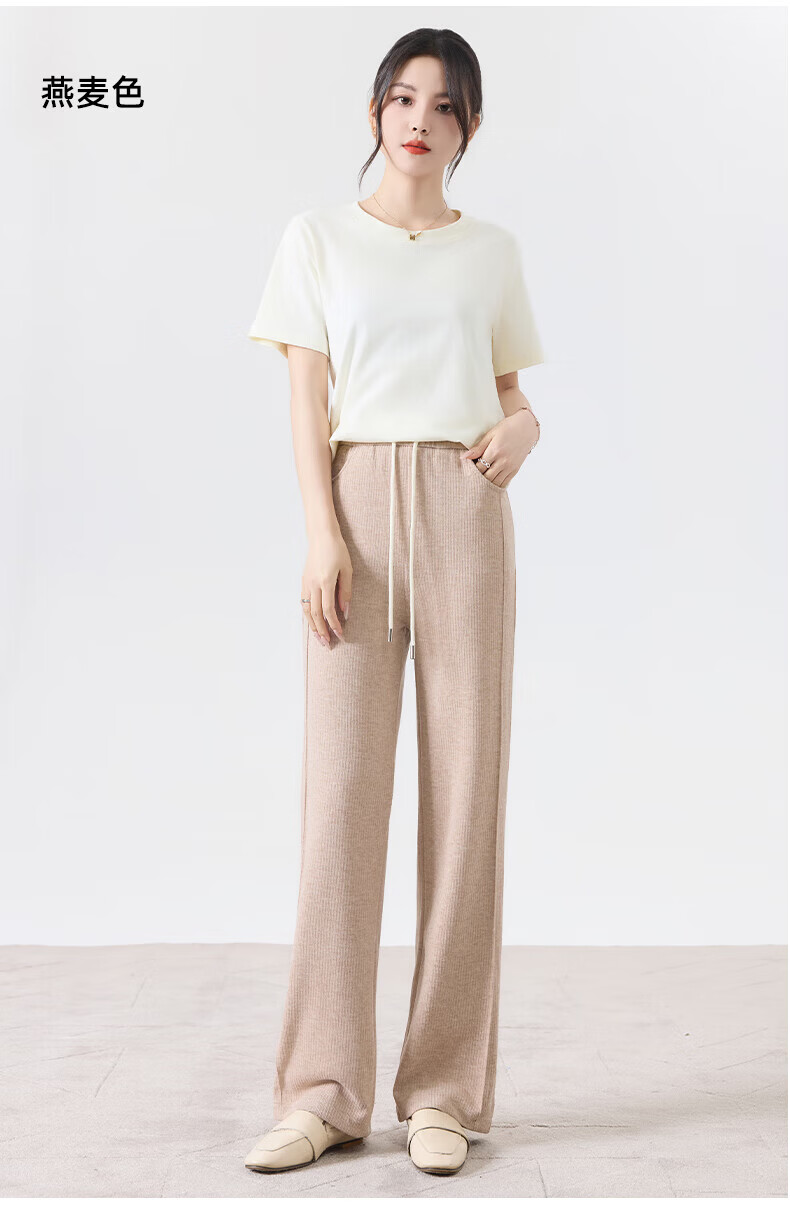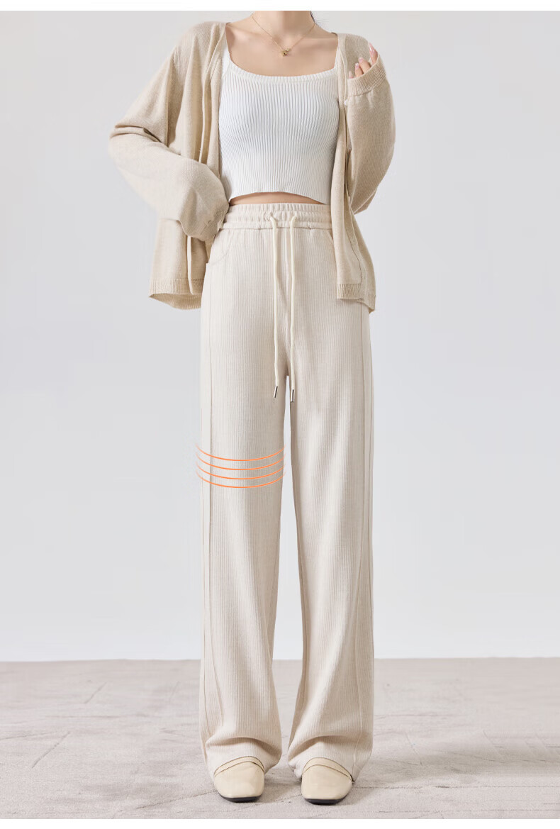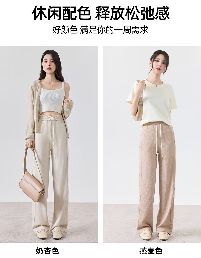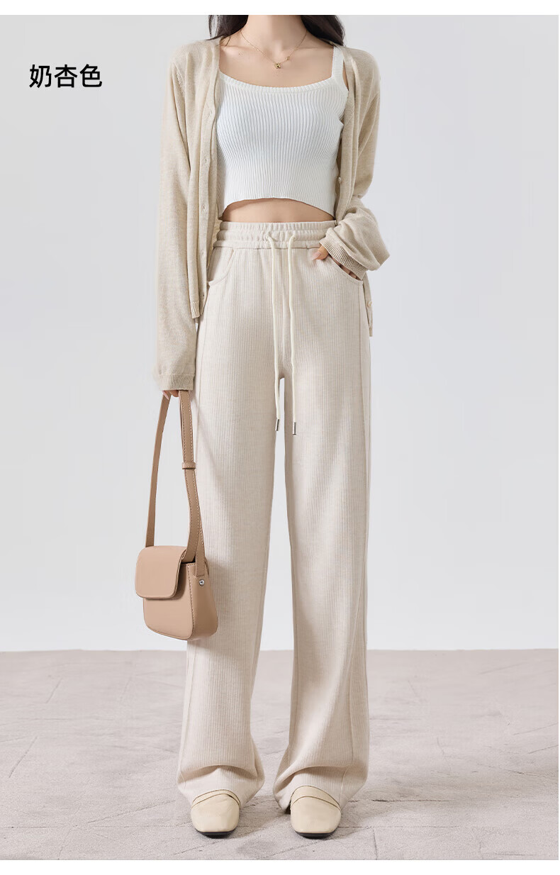 浪莎窄版直筒裤女春秋季2026新款高腰显瘦垂感小个子休闲运动阔腿裤子 奶杏色 【春秋款】 L 【适合116-130斤】