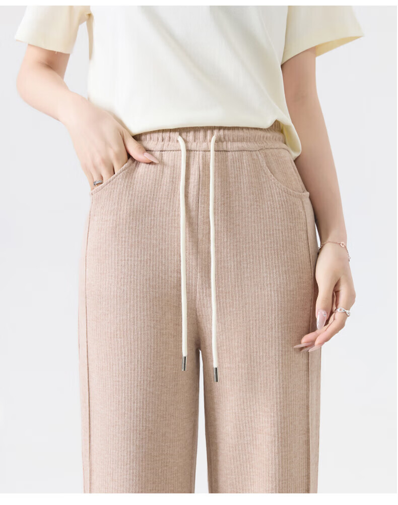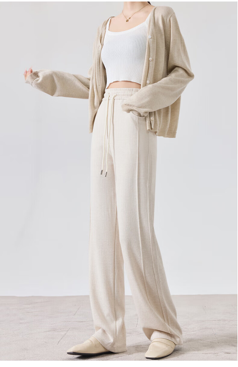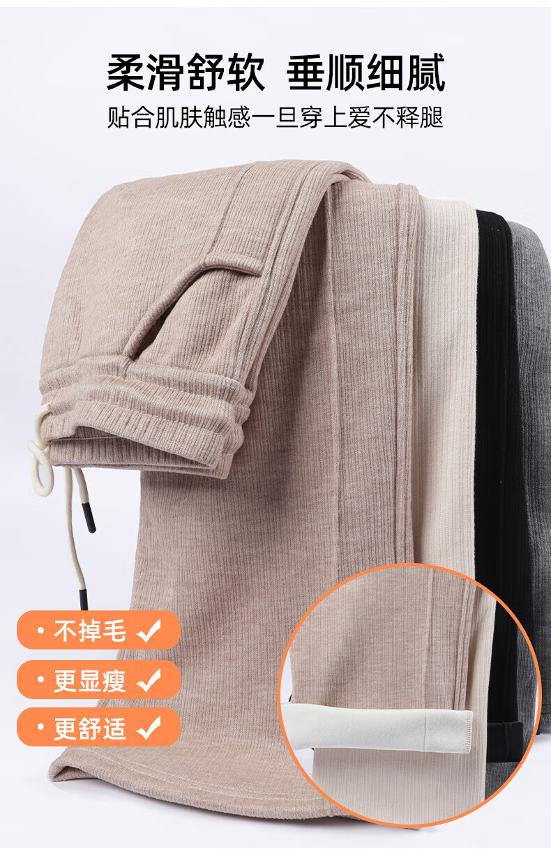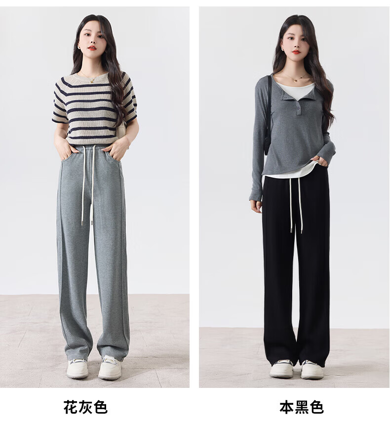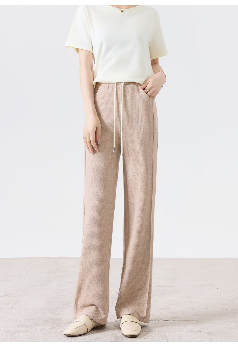 浪莎窄版直筒裤女春秋季2026新款高腰显瘦垂感小个子休闲运动阔腿裤子 奶杏色 【春秋款】 L 【适合116-130斤】